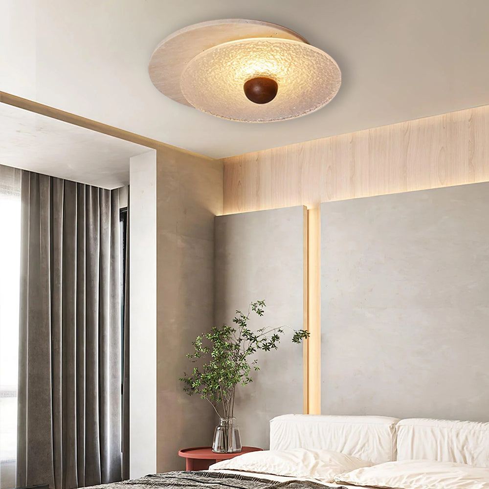 High-Quality Material: The main materials of this ceiling lamp include travertine, solid wood and glass. Travertine, as a natural stone, has a unique texture and feel, making each lamp unique. The use of solid wood makes the lamp more textured and more environmentally friendly. The glass ceiling design ensures the uniform distribution of light sources and makes the entire lamp more transparent and beautiful.