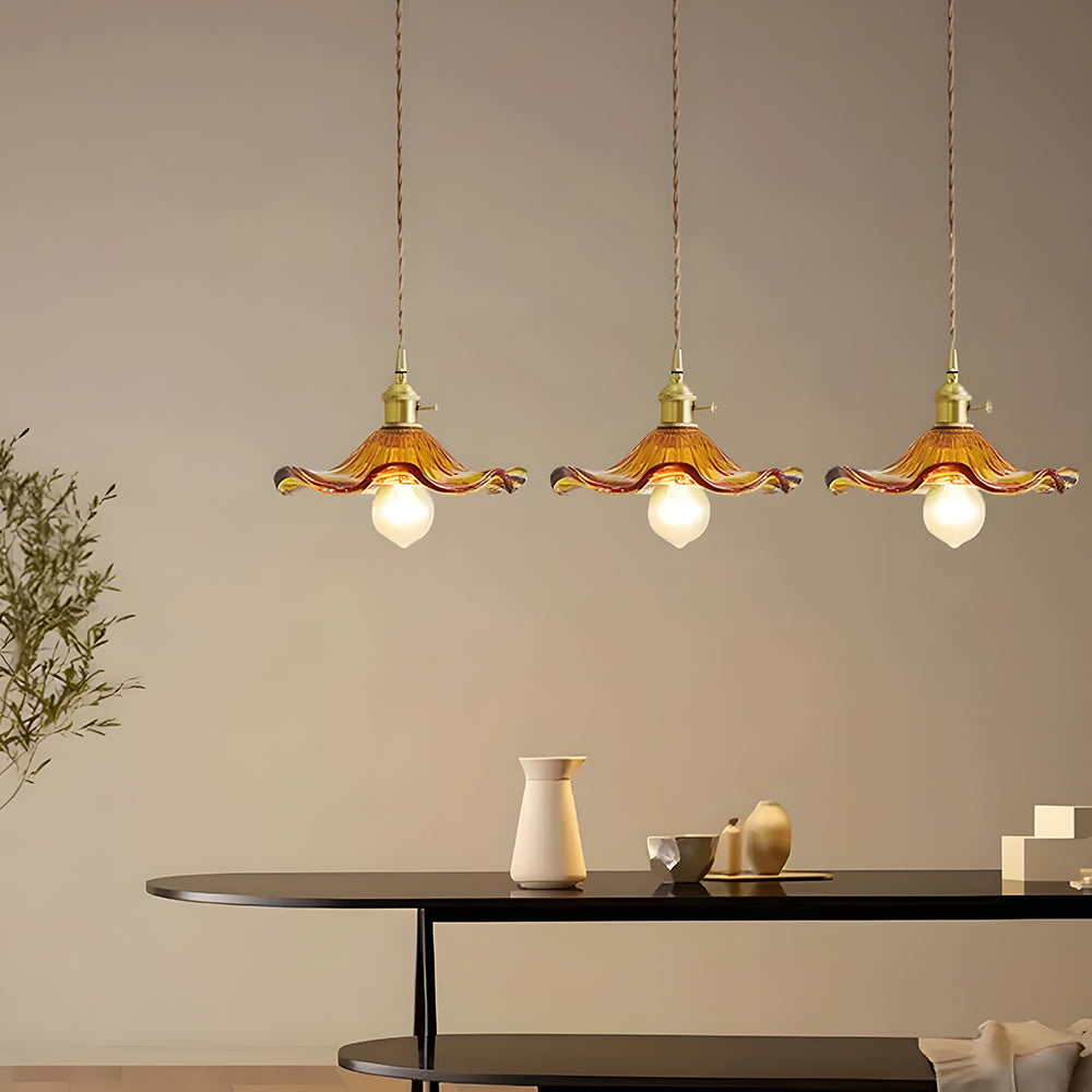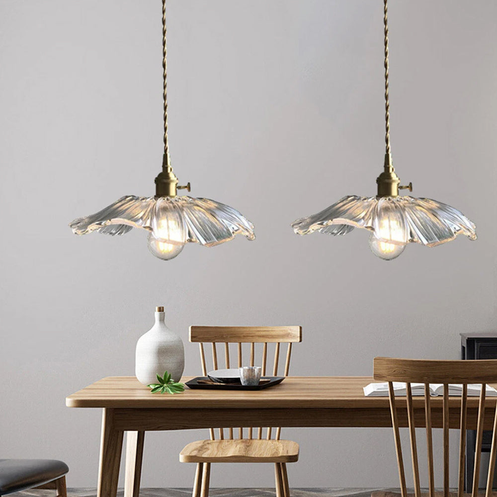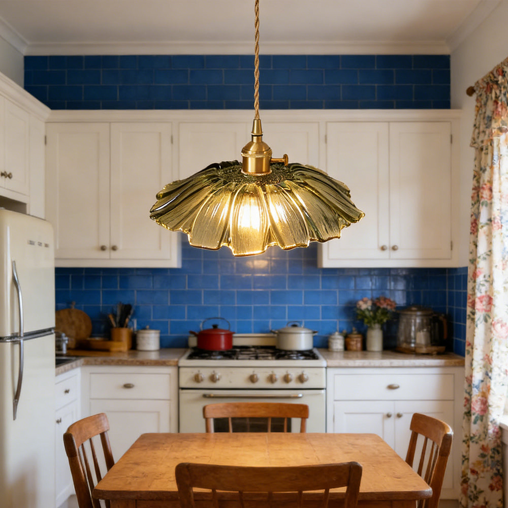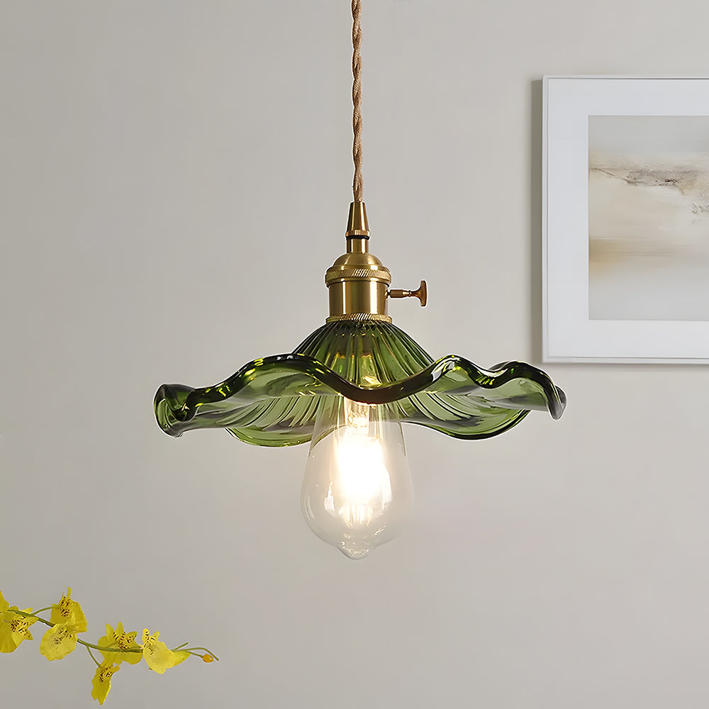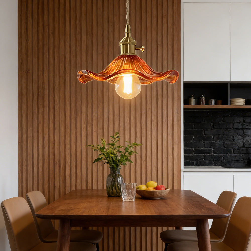This small pendant light blends classic and modern style with its elegant flower-shaped brass design. The finely crafted details and vintage charm add a touch of retro elegance to any space.