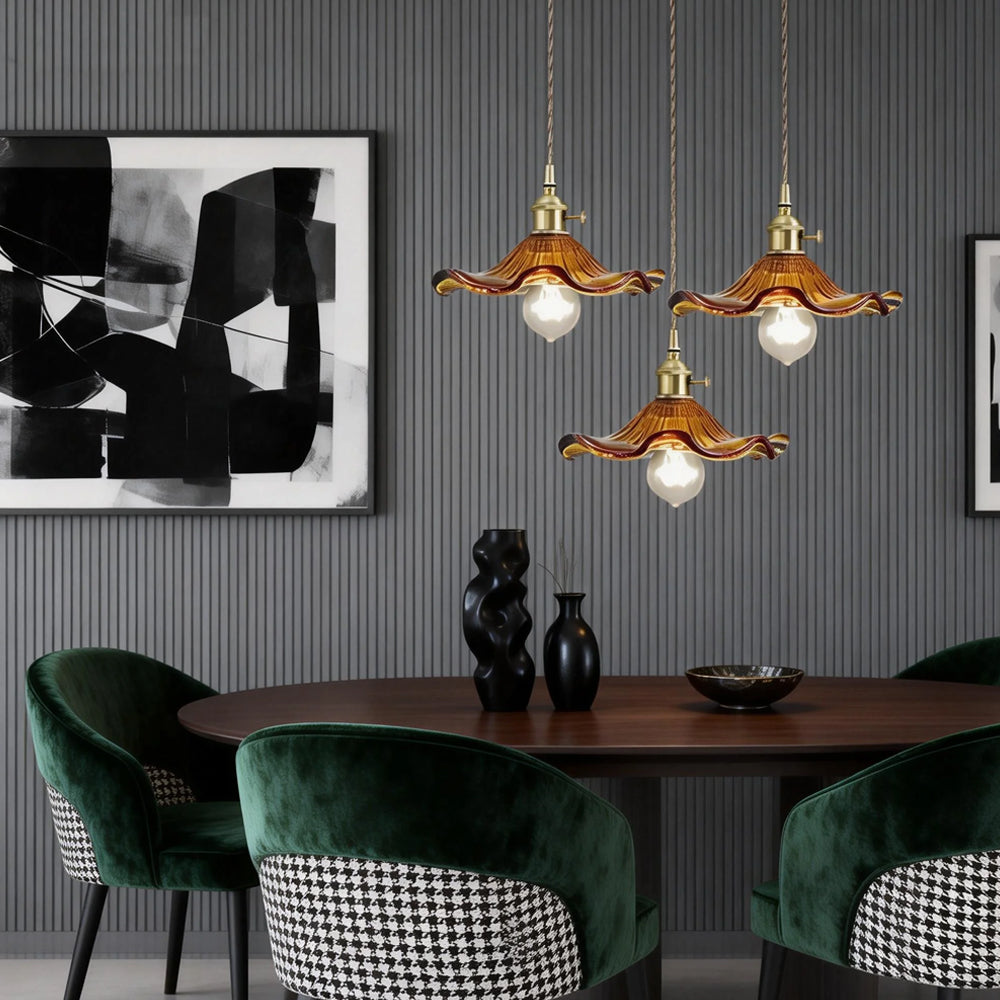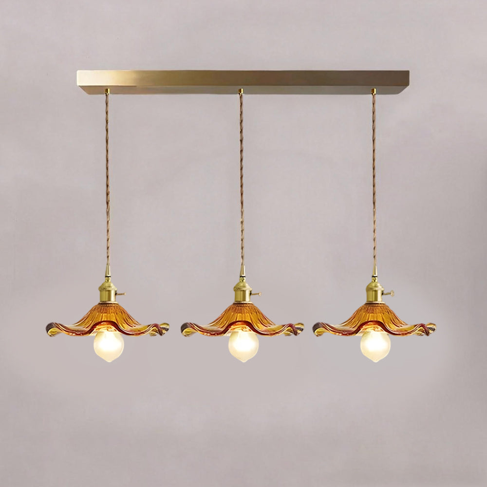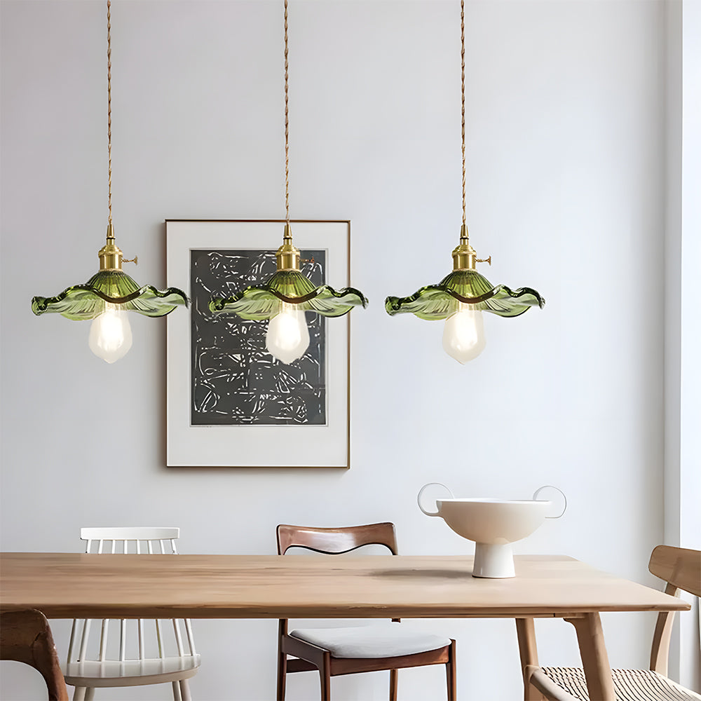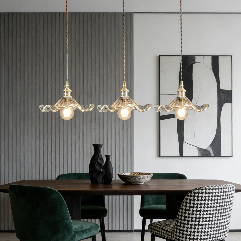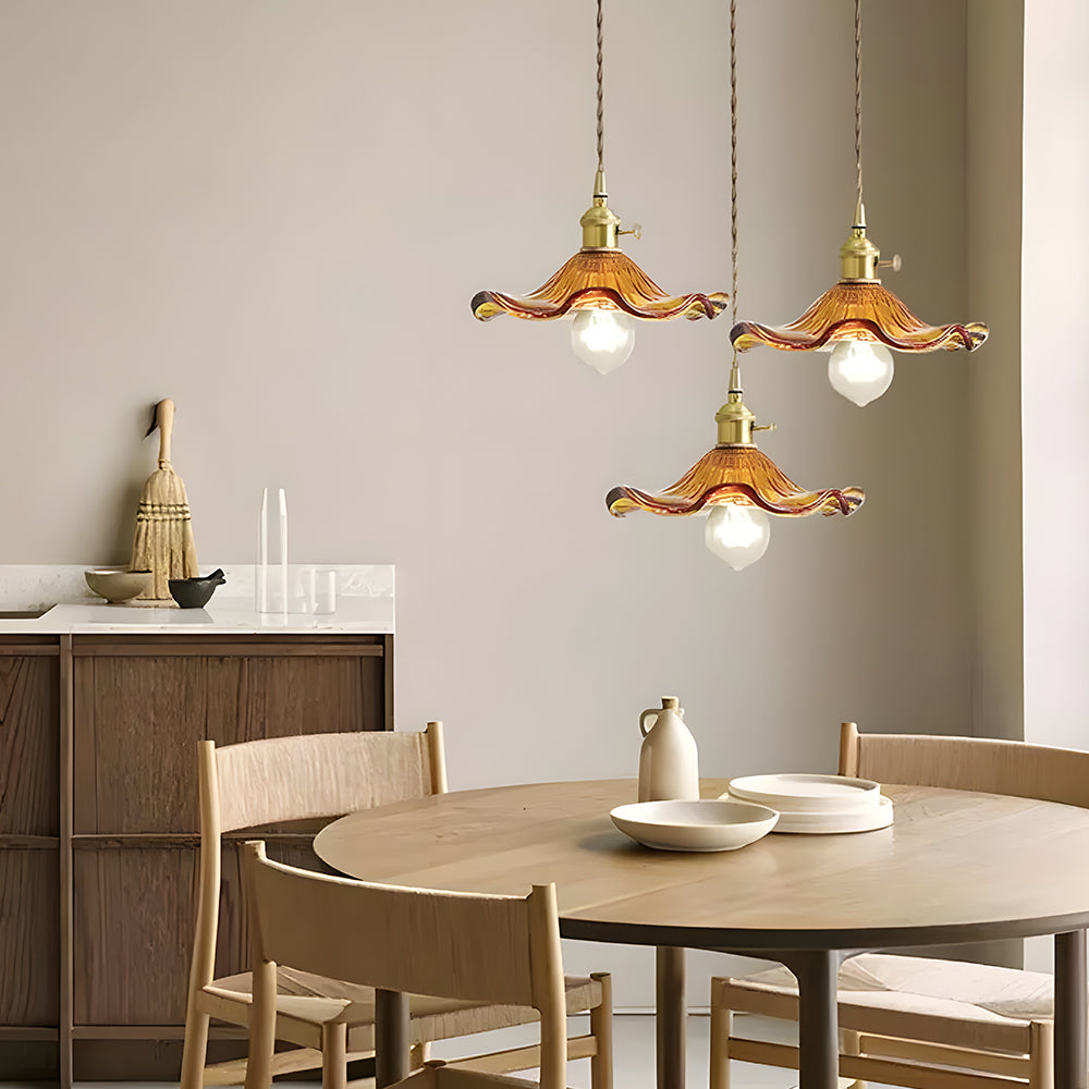This small pendant light blends classic and modern style with its elegant flower-shaped brass design. The finely crafted details and vintage charm add a touch of retro elegance to any space.