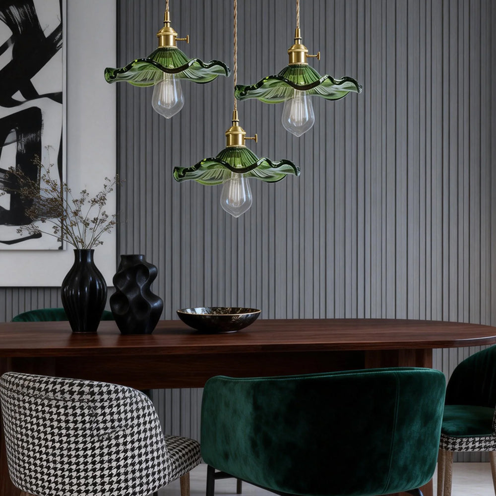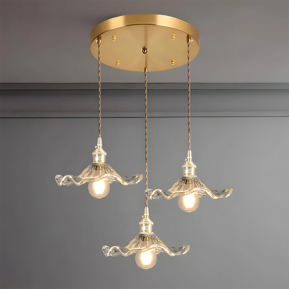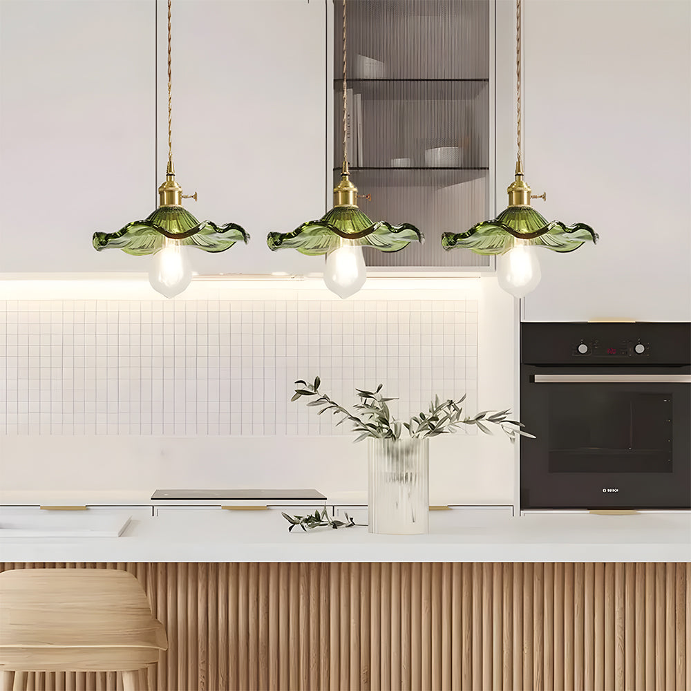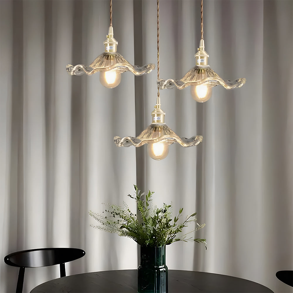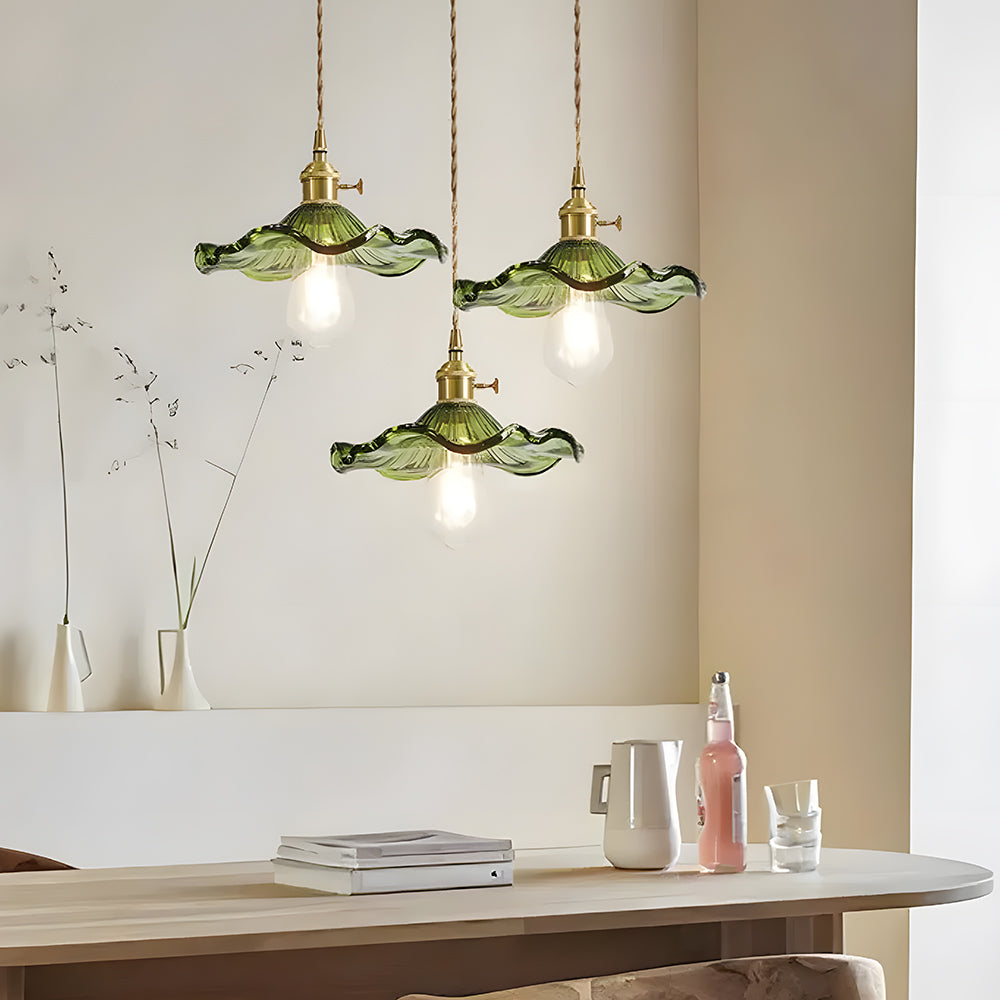 This small pendant light blends classic and modern style with its elegant flower-shaped brass design. The finely crafted details and vintage charm add a touch of retro elegance to any space.