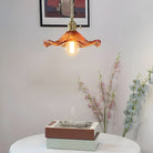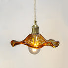 Vintage Glass and Brass Flower Shaped Small Pendant Light