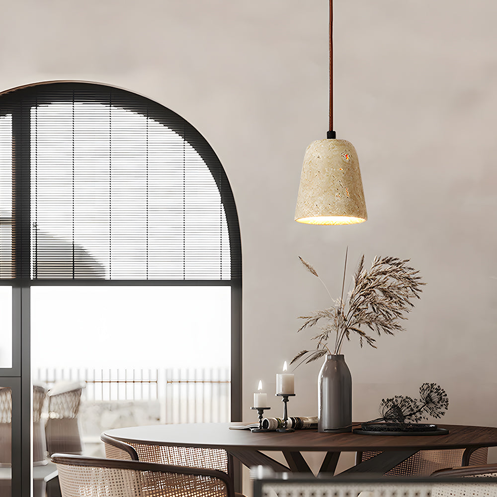 Vintage Yellow Travertine Wabi-sabi Style Creative Bedroom Pendant Lamp