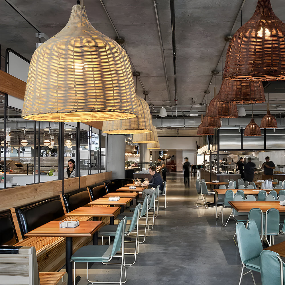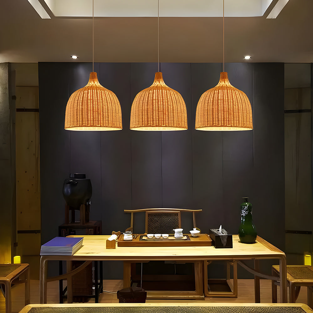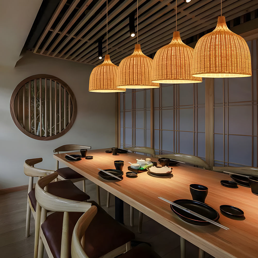 Hand Rattan Bamboo Basket Dining Room Pendant Light