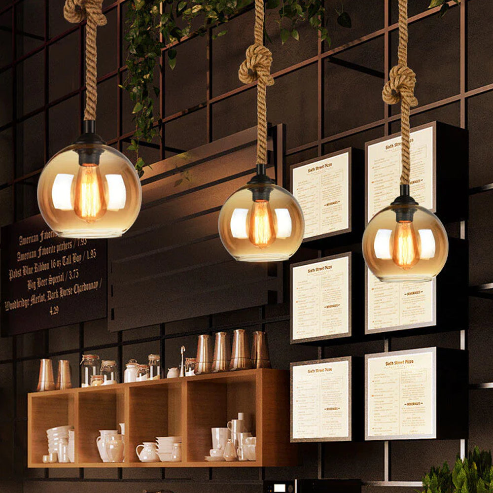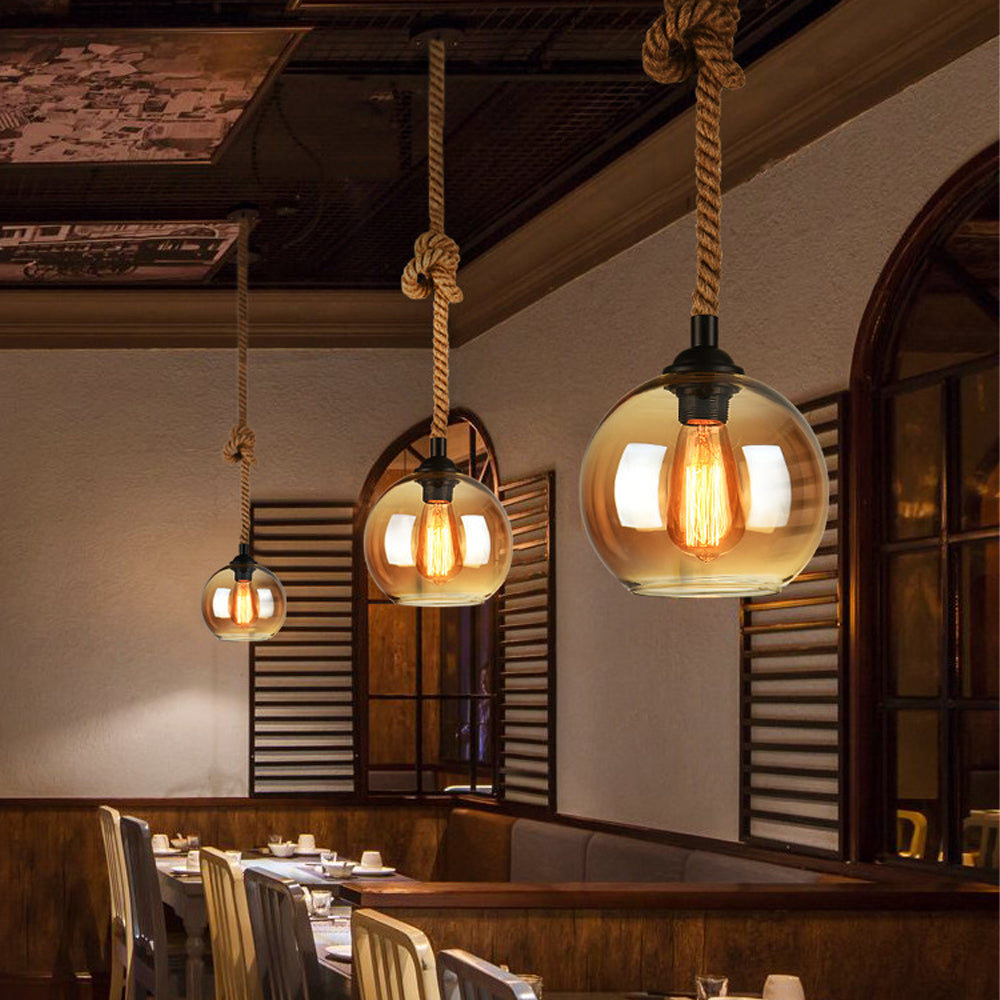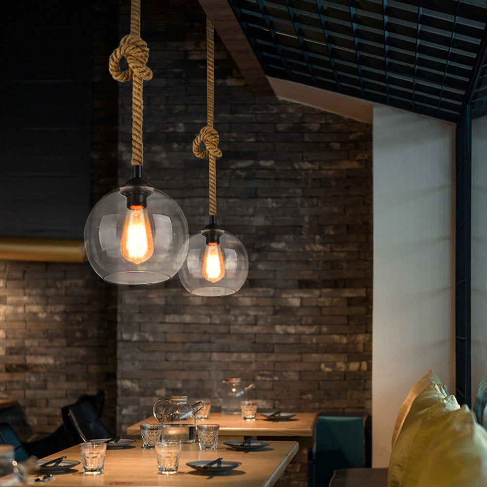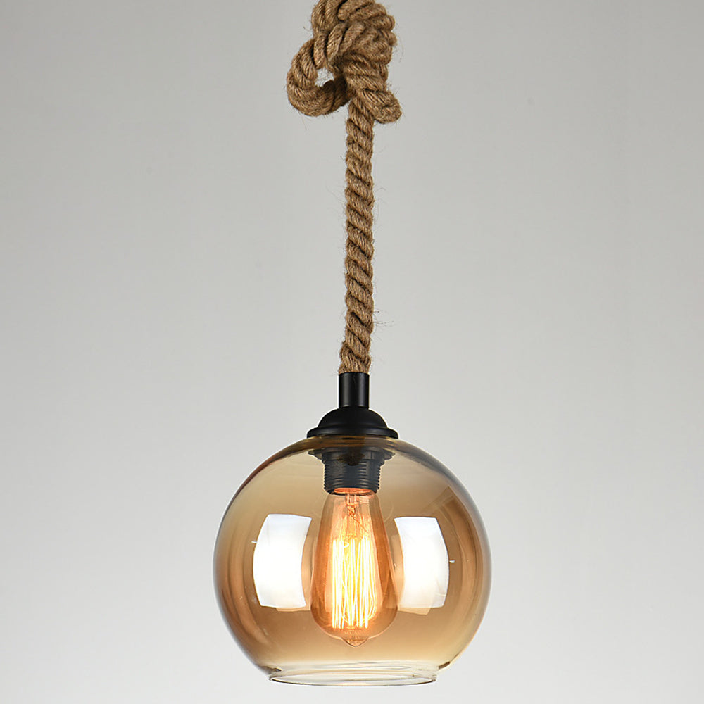 Retro Rope Hanging Glass Globe Metal Pendant Light