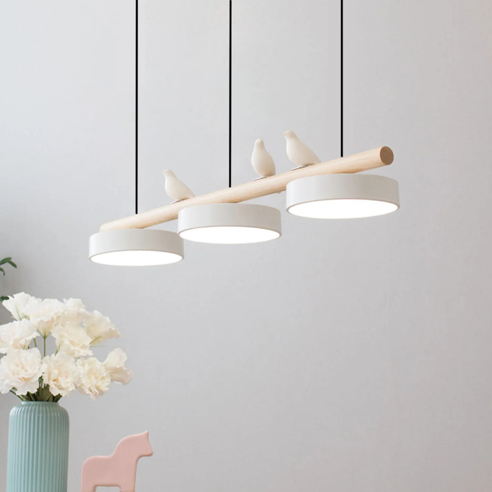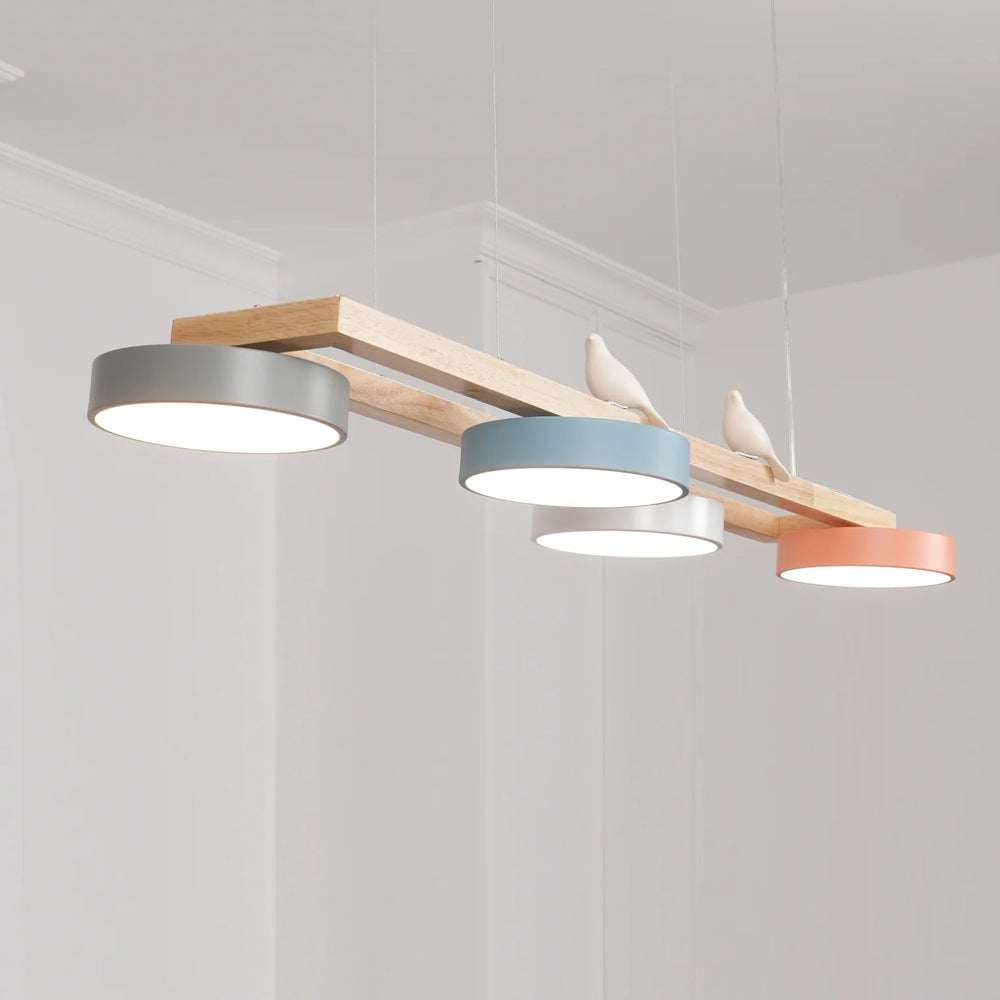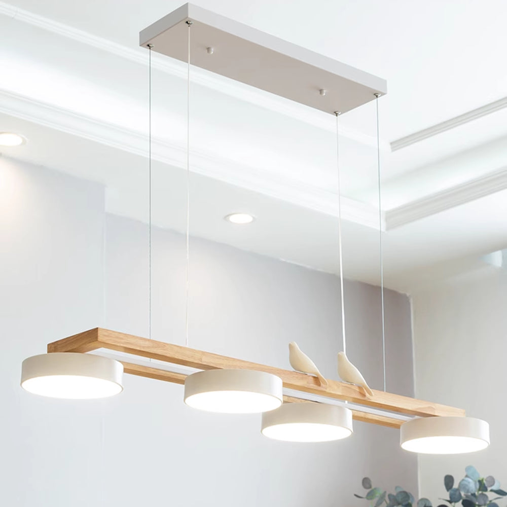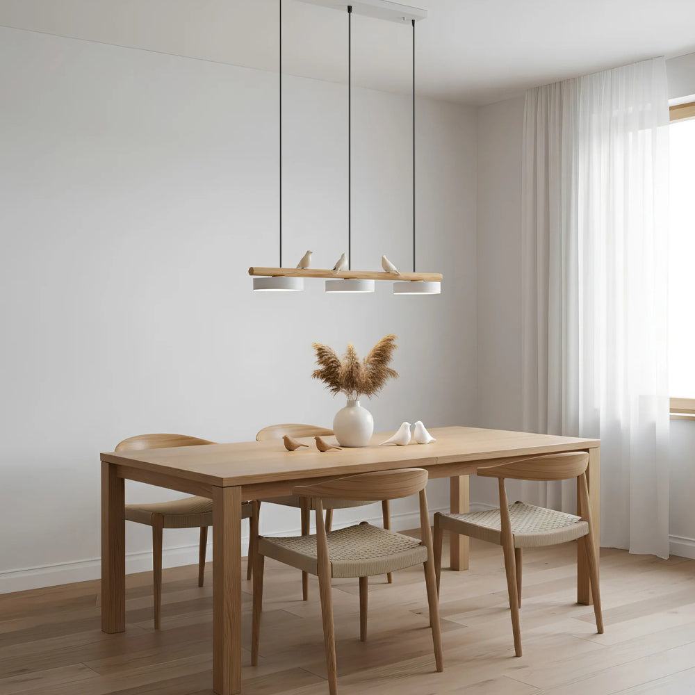 Modern Elegance Natural Wood Bird Long Chandelier