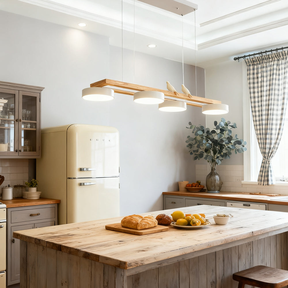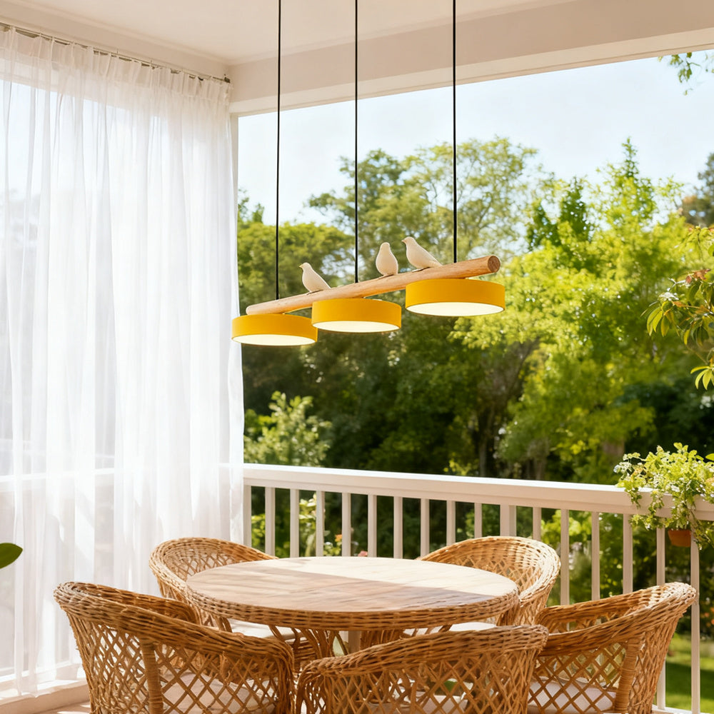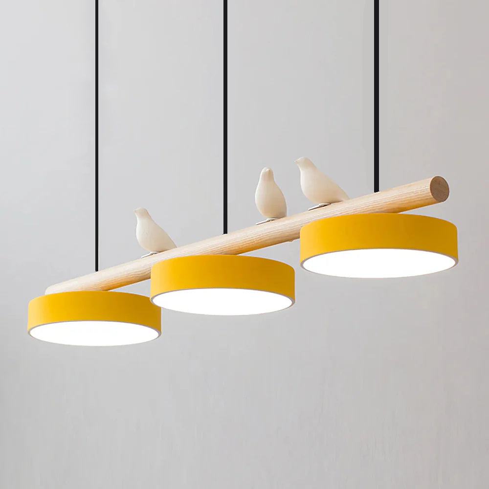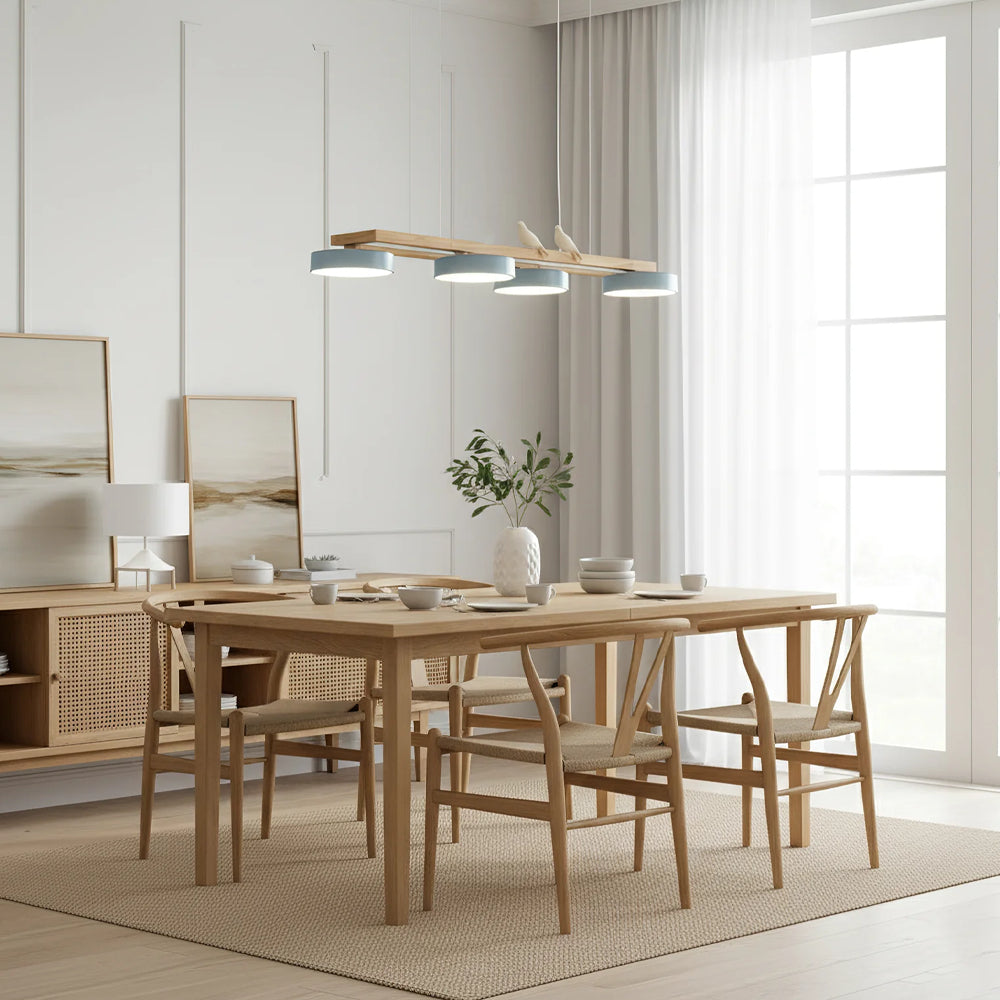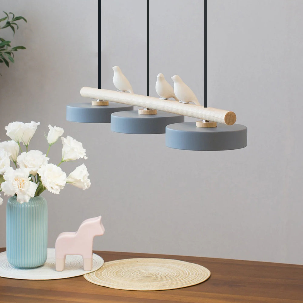 Modern Elegance Natural Wood Bird Long Chandelier