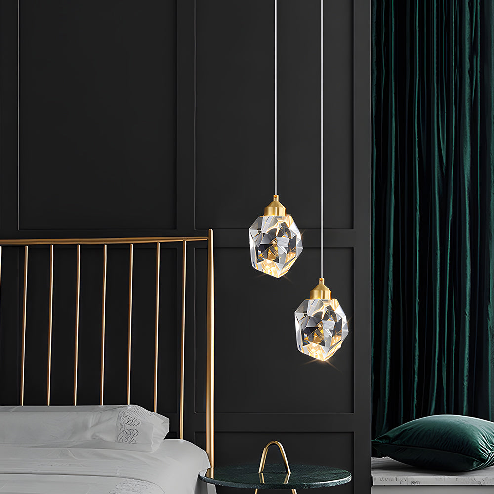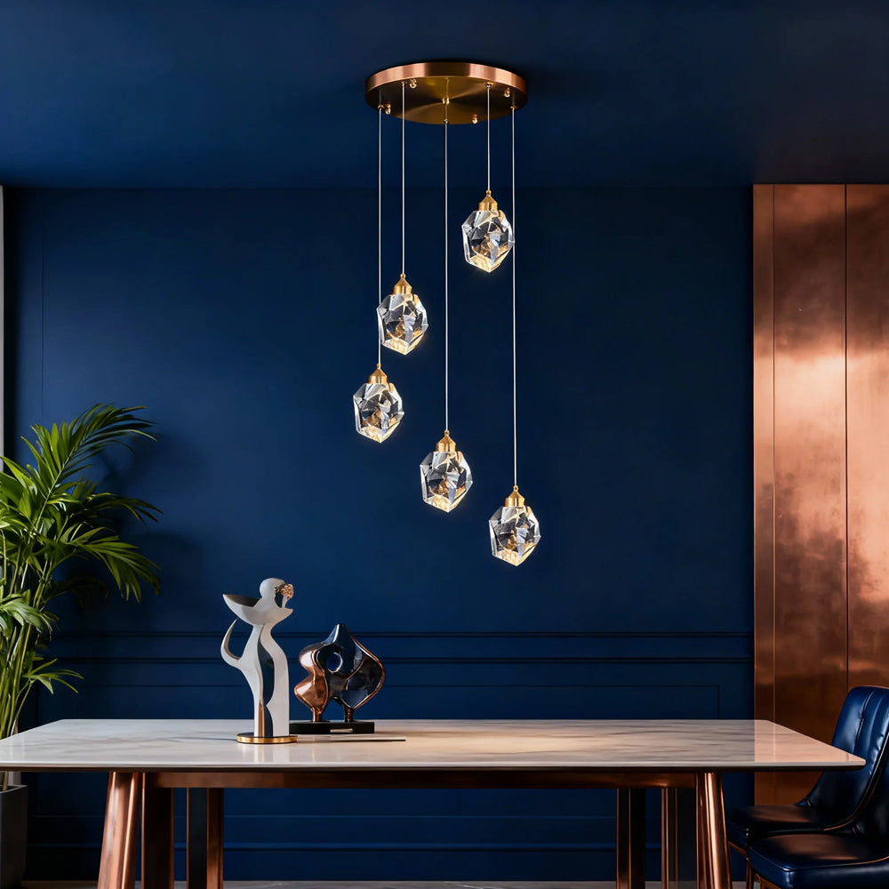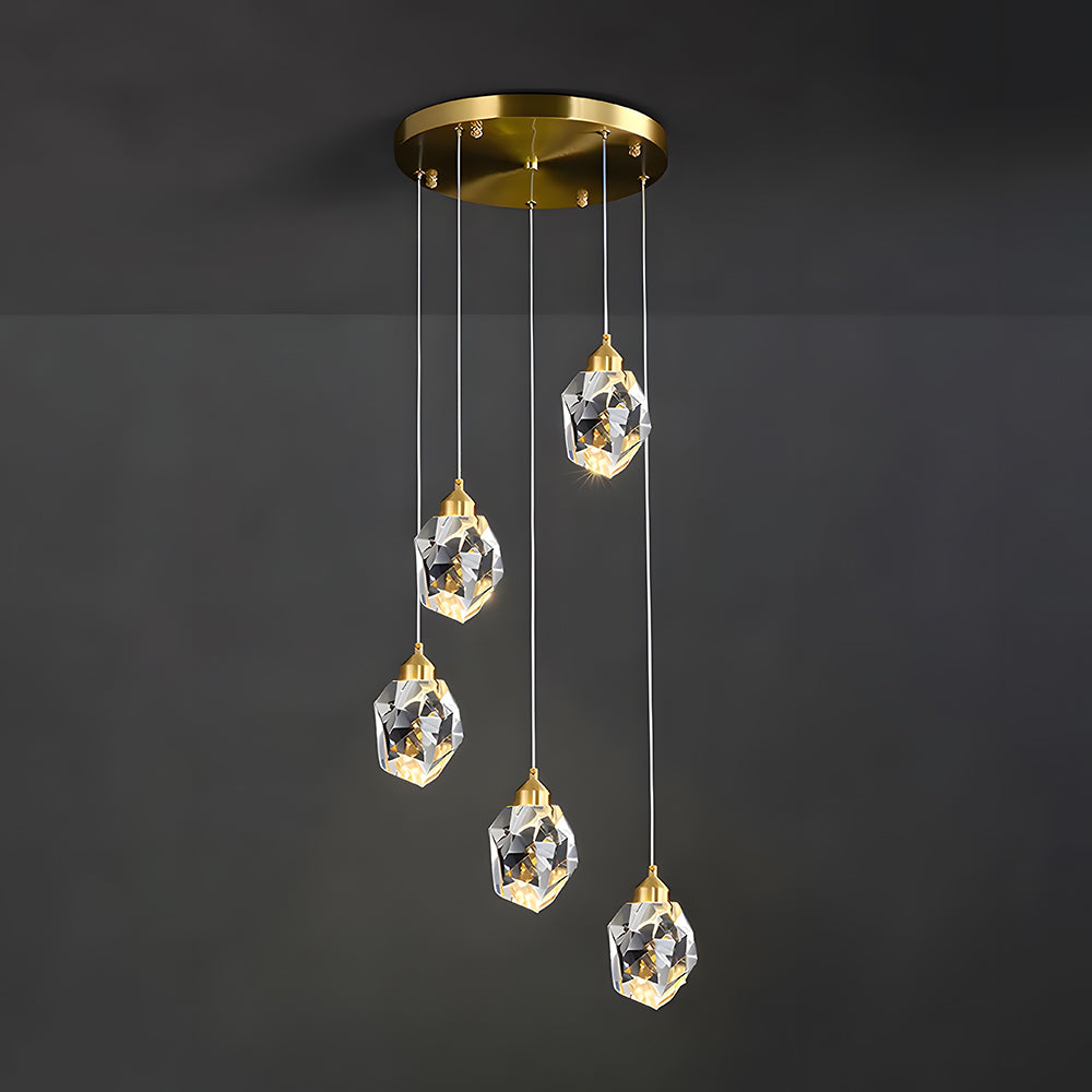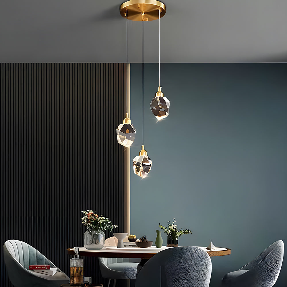 Minimalist Luxury Irregular Polygon Brass Crystal Pendant Light
