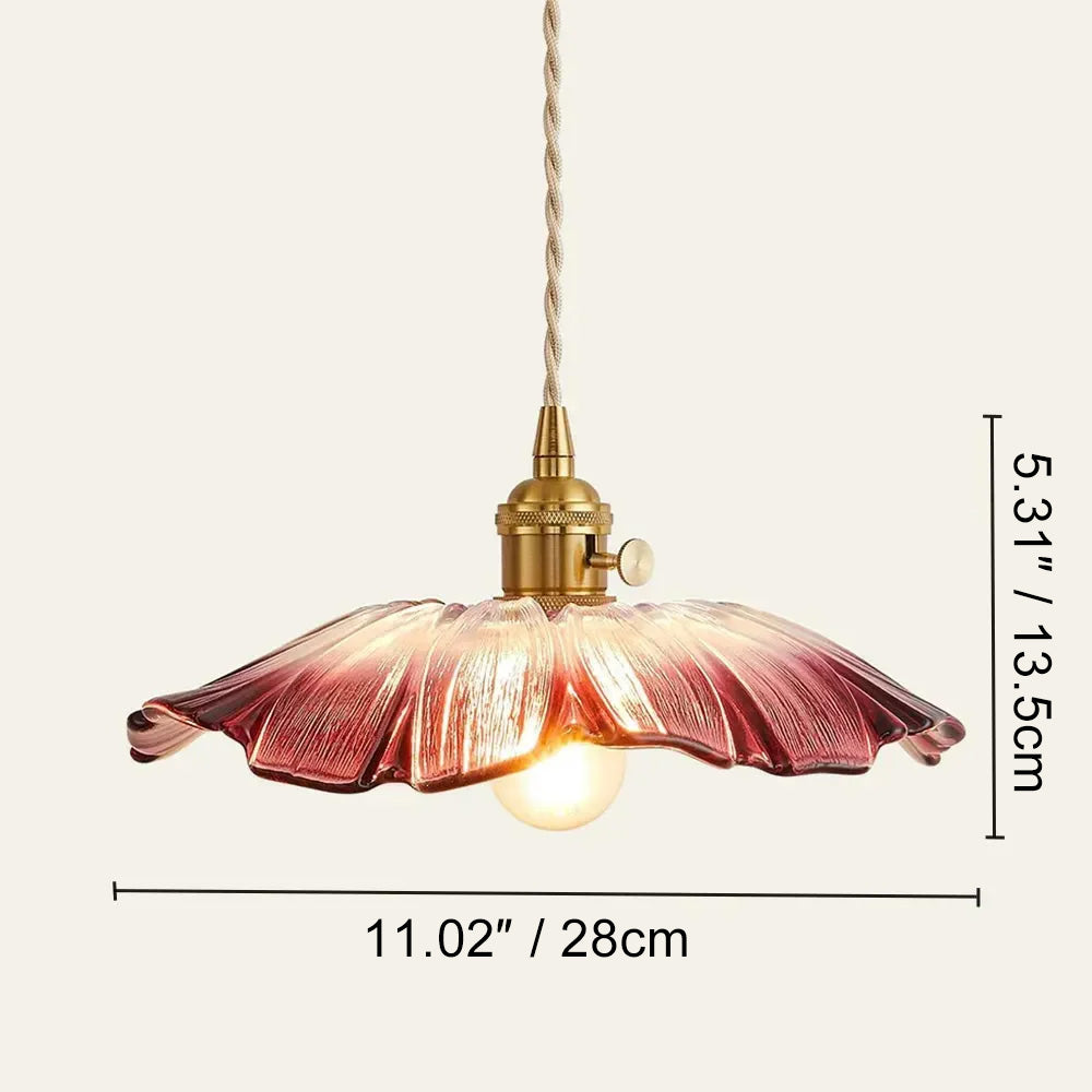 Vintage Glass and Brass Flower Shaped Small Pendant Light