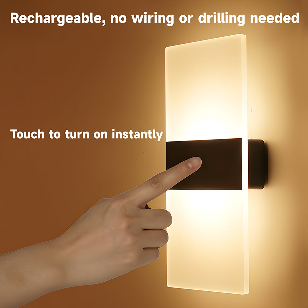 Minimalist Modern Touch Sensor Wireless Rechargeable Metal Wall Lamp