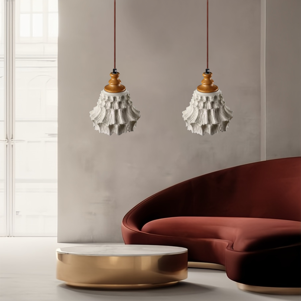 Craftsmanship: The plaster and solid wood are strictly selected and processed to make the structure of the pendant light strong and durable. During the processing, this pendant light is carved into a textured shell shape to achieve a better decorative effect.