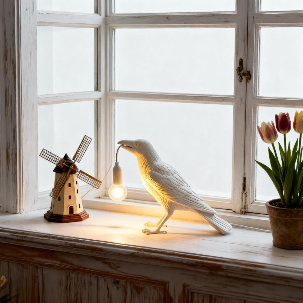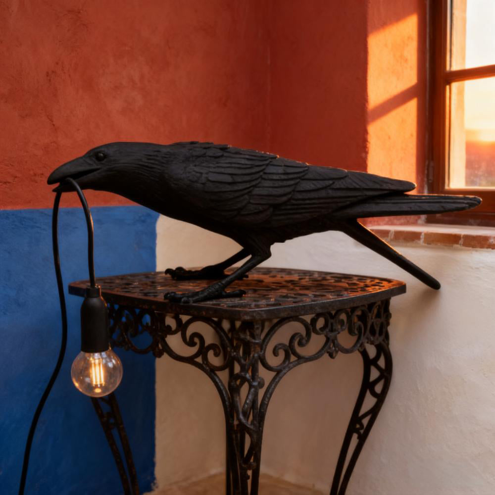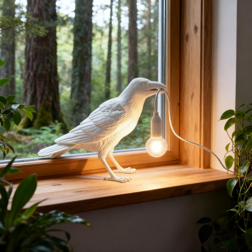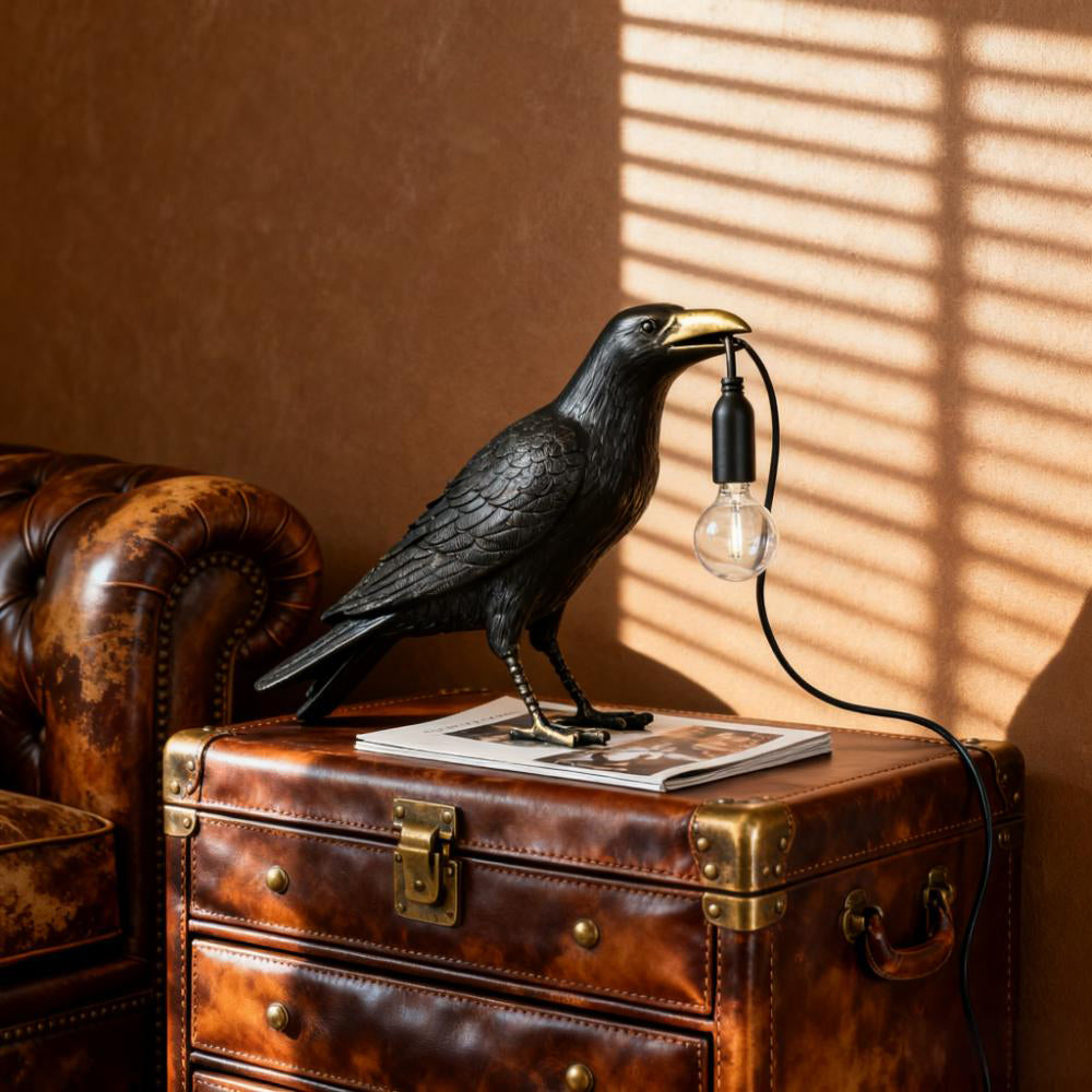 Infuse your home with unique style using the Creative Raven Resin Table Lamp. The resin raven sculpture—adorned with a modern finish—delicately holds an Edison bulb, blending sleek design with artistic charm to become an eye-catching focal point.