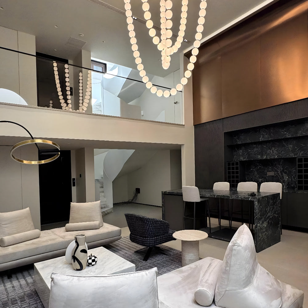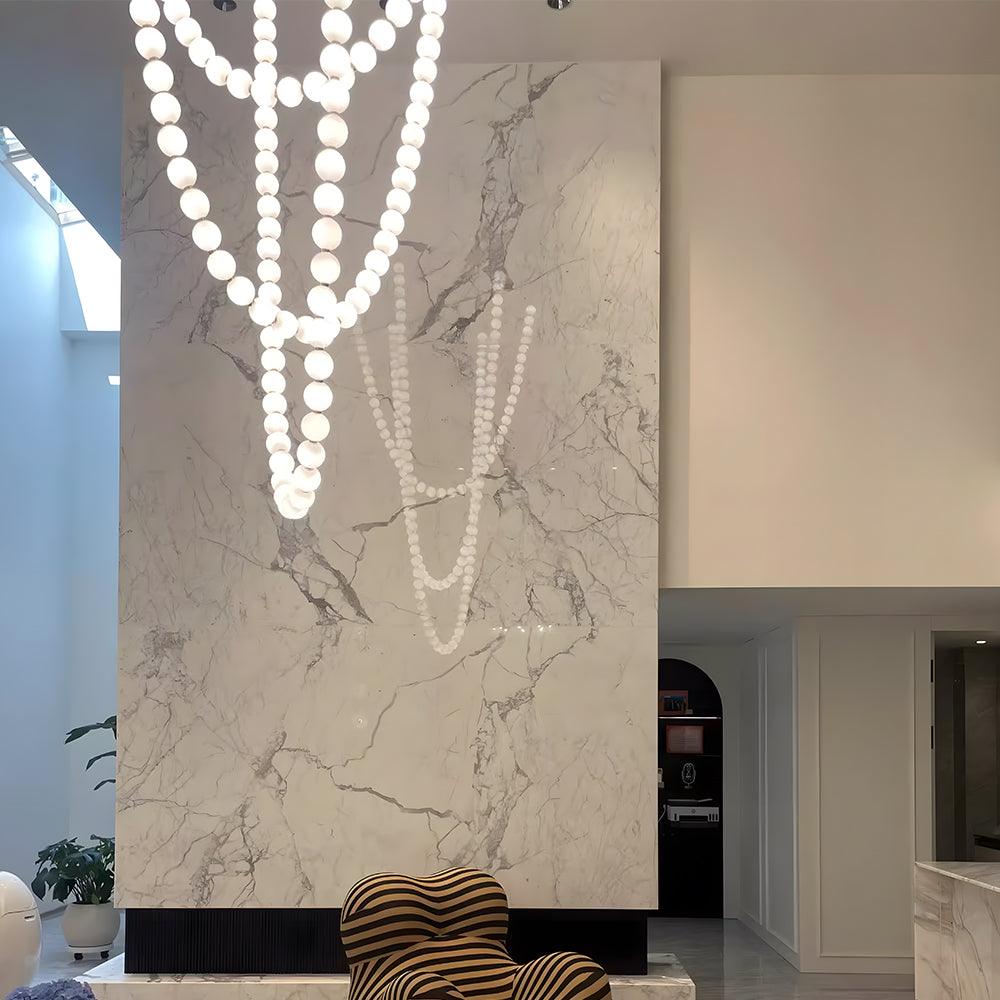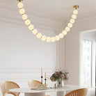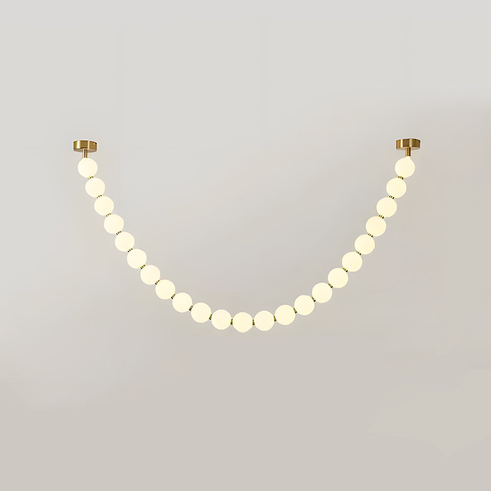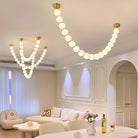A cascade of luminous pearls, artfully arranged in a graceful necklace design. This white chandelier brings refined elegance to any space, transforming your ceiling into a vision of timeless beauty.