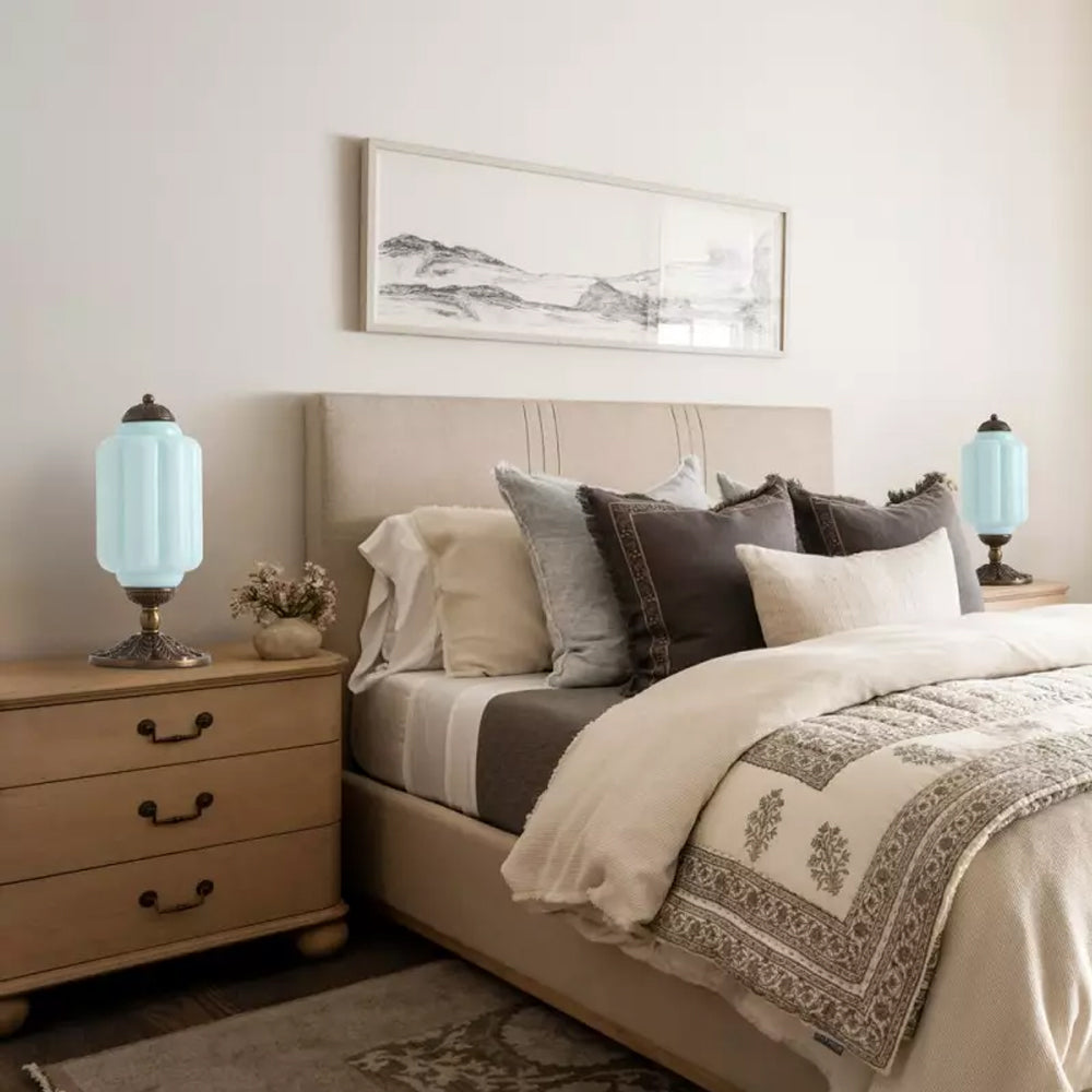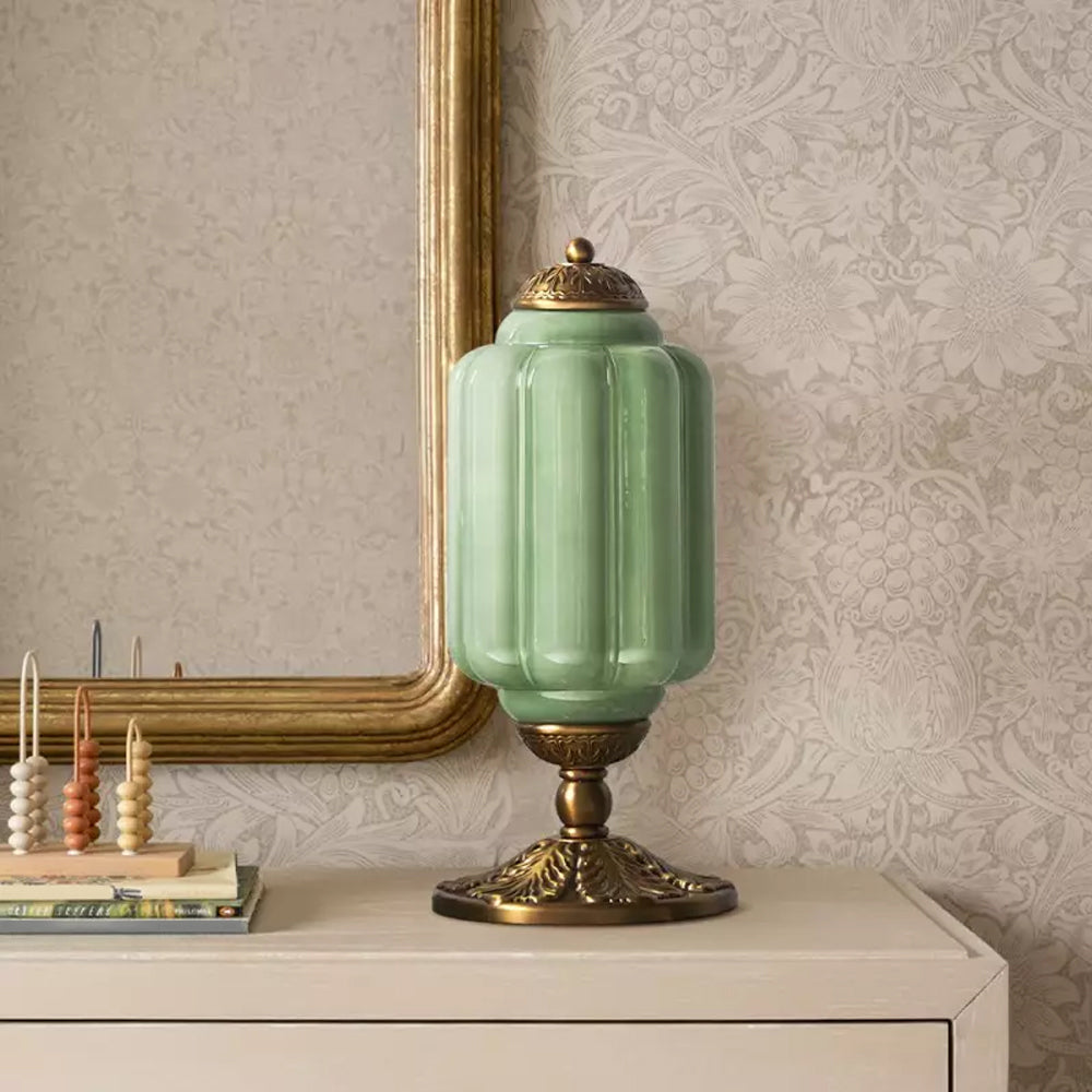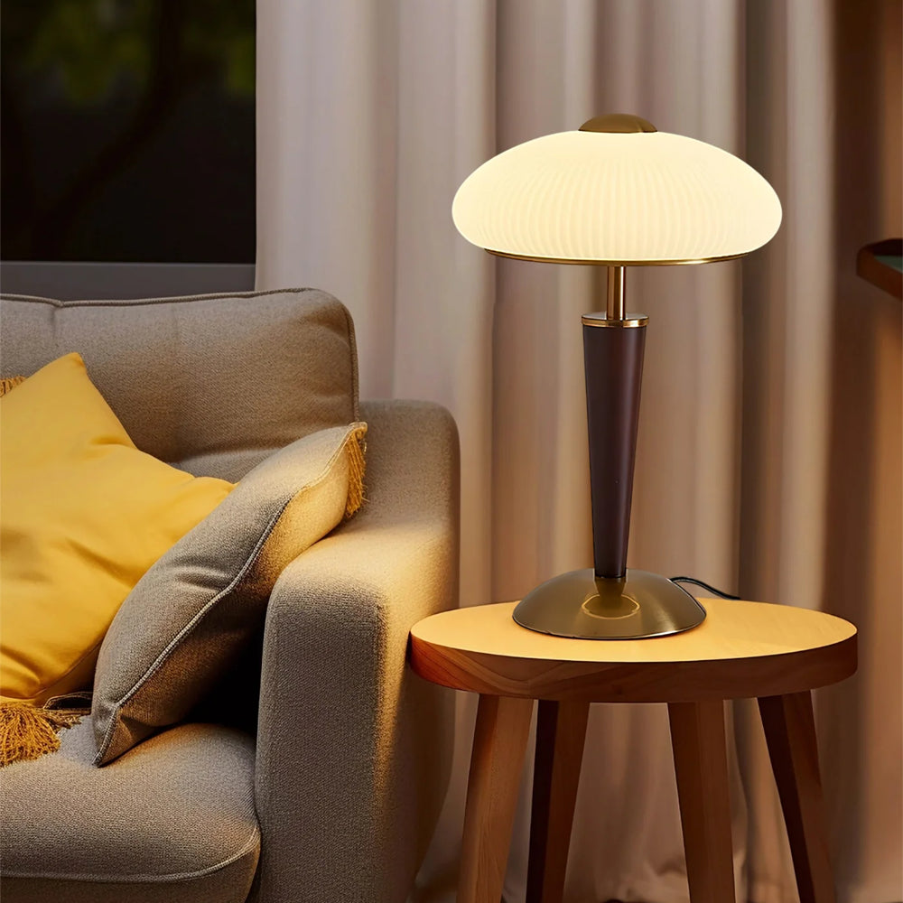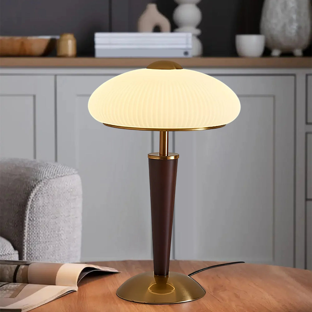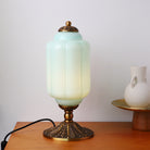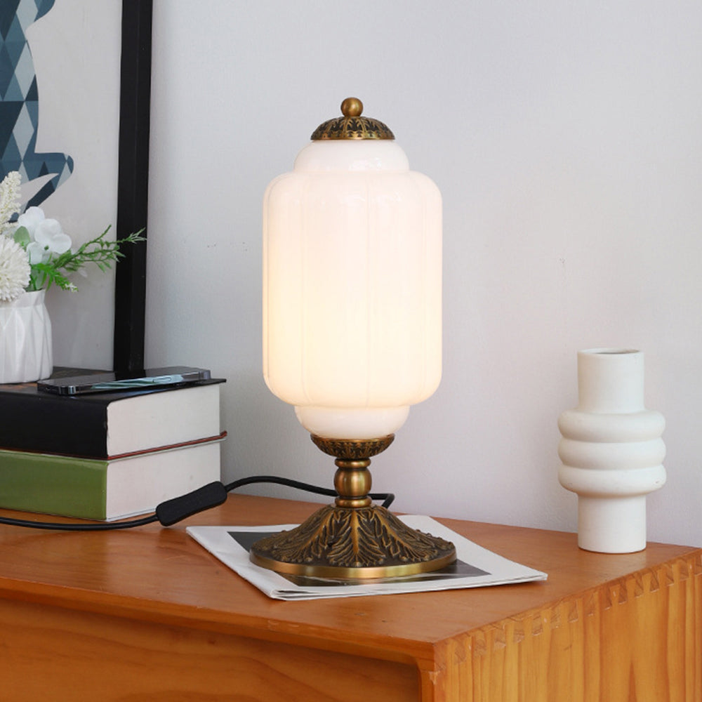 This retro-style table lamp brings French charm with elegance and nostalgia. Its textured cream glass emits warm diffused glow, perfect for cozy spaces. Sized for nightstands/coffee tables, durable brass for timeless refined appeal.