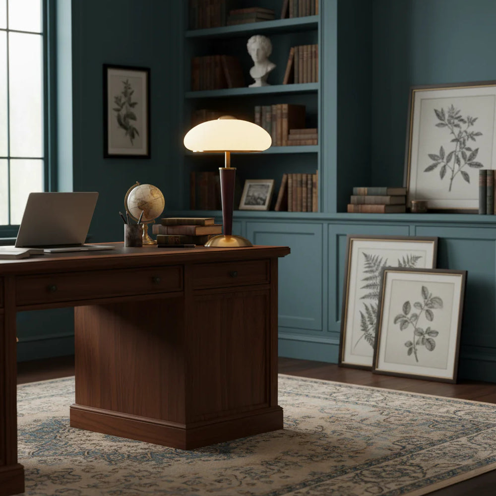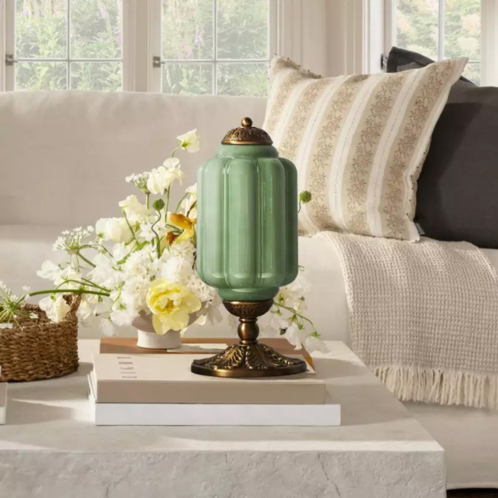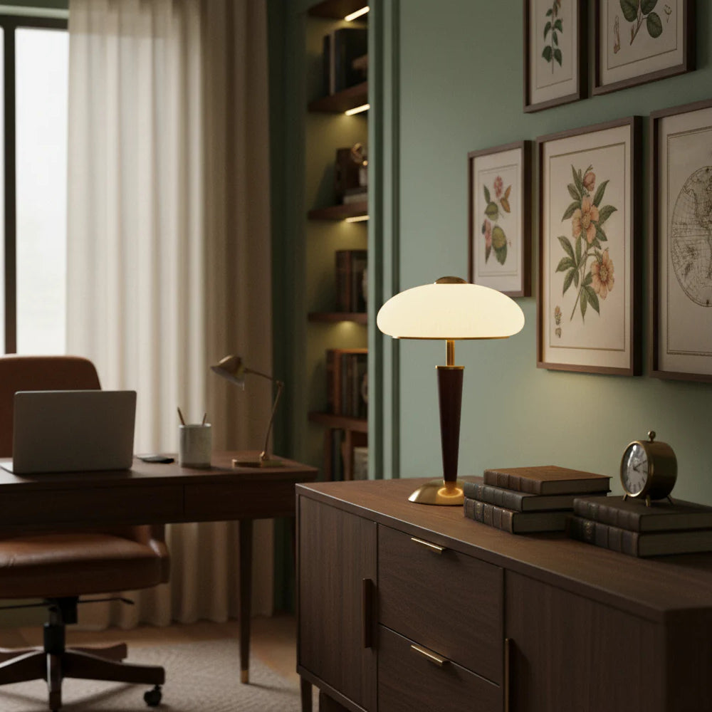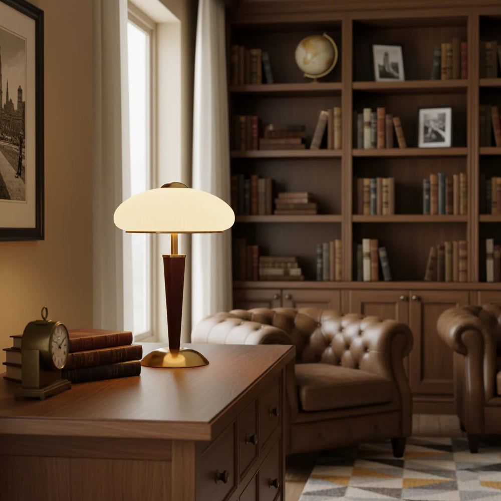 This retro-style table lamp brings French charm with elegance and nostalgia. Its textured cream glass emits warm diffused glow, perfect for cozy spaces. Sized for nightstands/coffee tables, durable brass for timeless refined appeal.