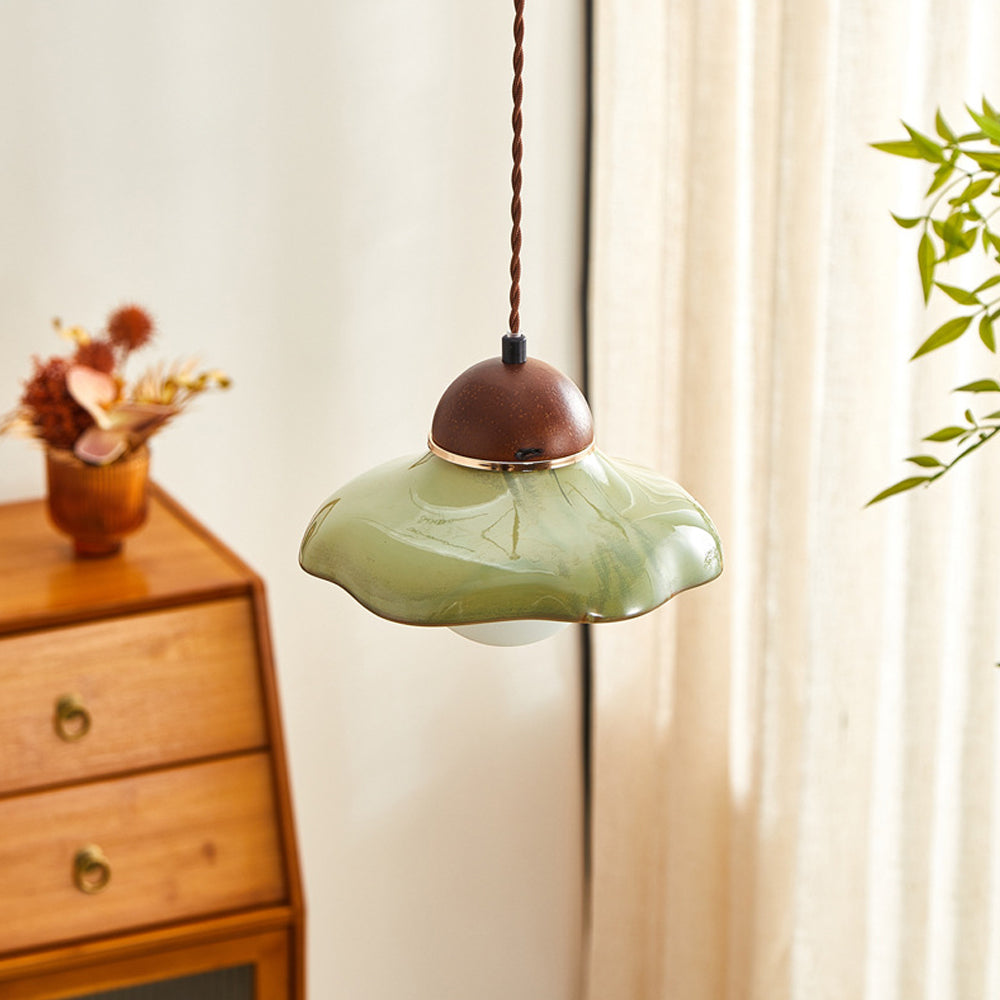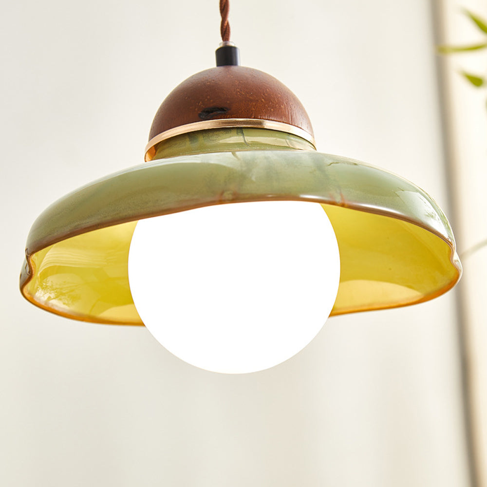 French Retro Green Ceramic Pendant Light