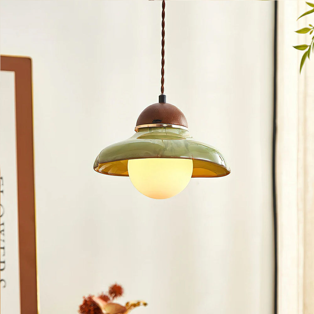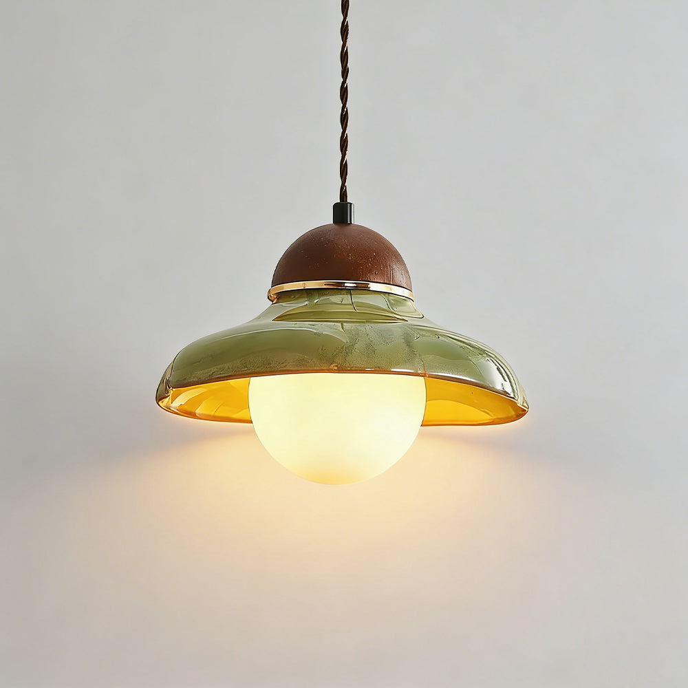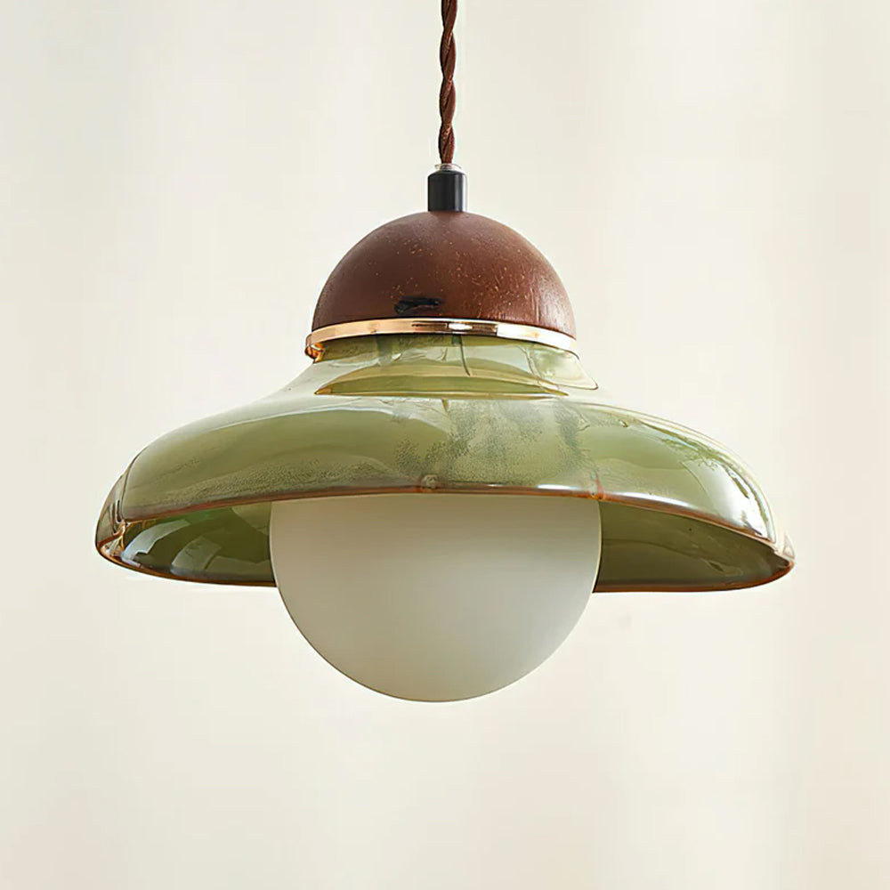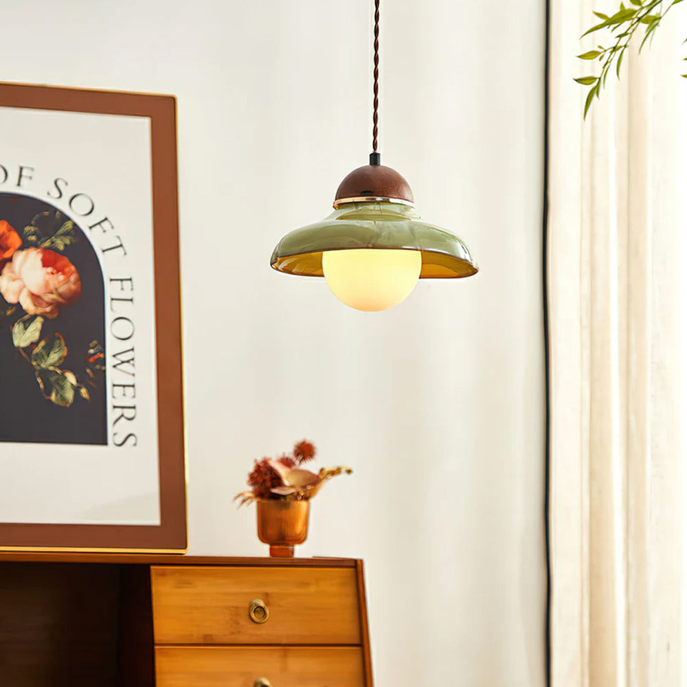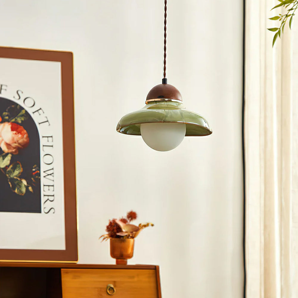 Channel countryside nostalgia with this charming fixture! A rich green ceramic shade paired with a wooden cover sets a cozy tone, and the soft globe bulb glow wraps your space in warmth. Hang it over a kitchen island or entryway for instant vintage character.