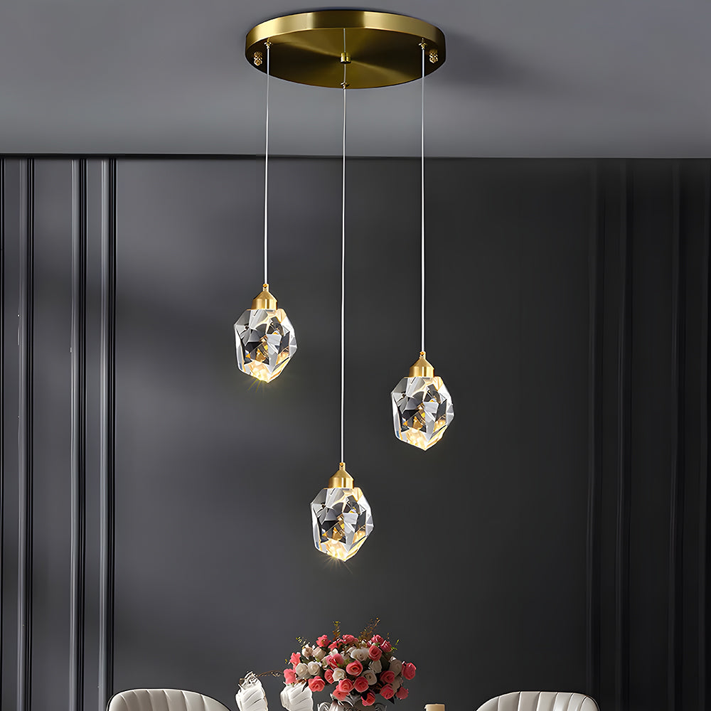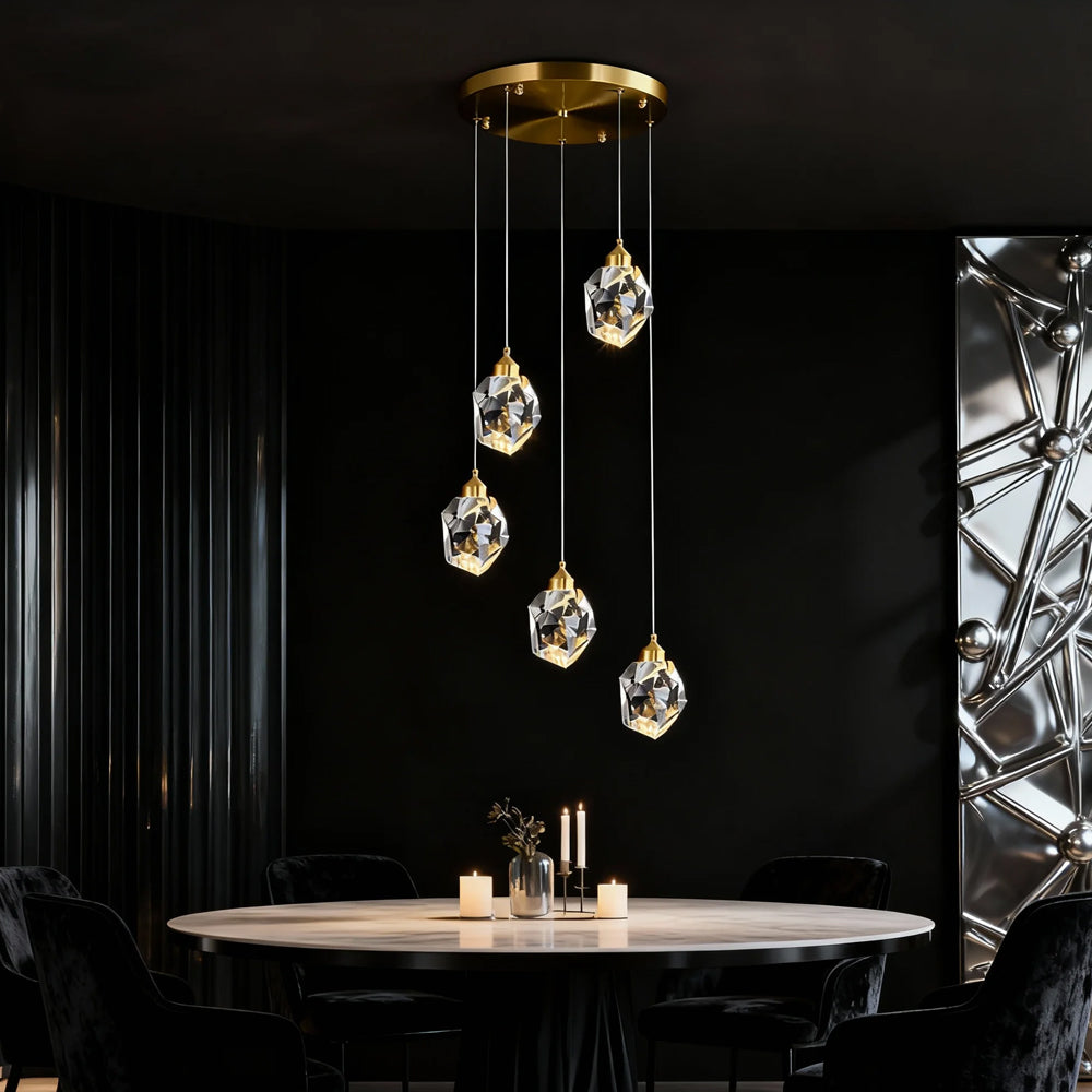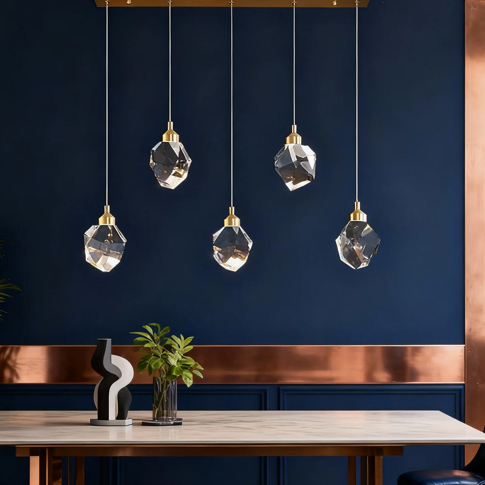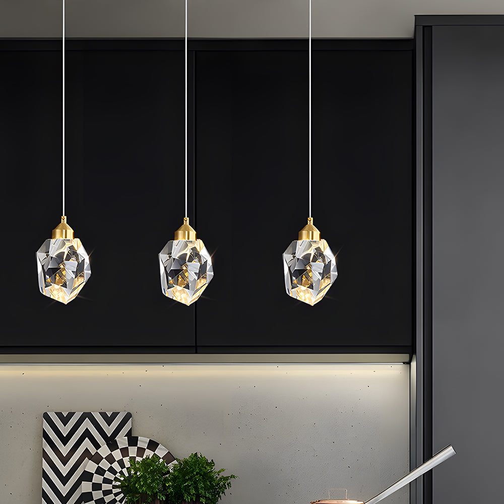 Minimalist Luxury Irregular Polygon Brass Crystal Pendant Light