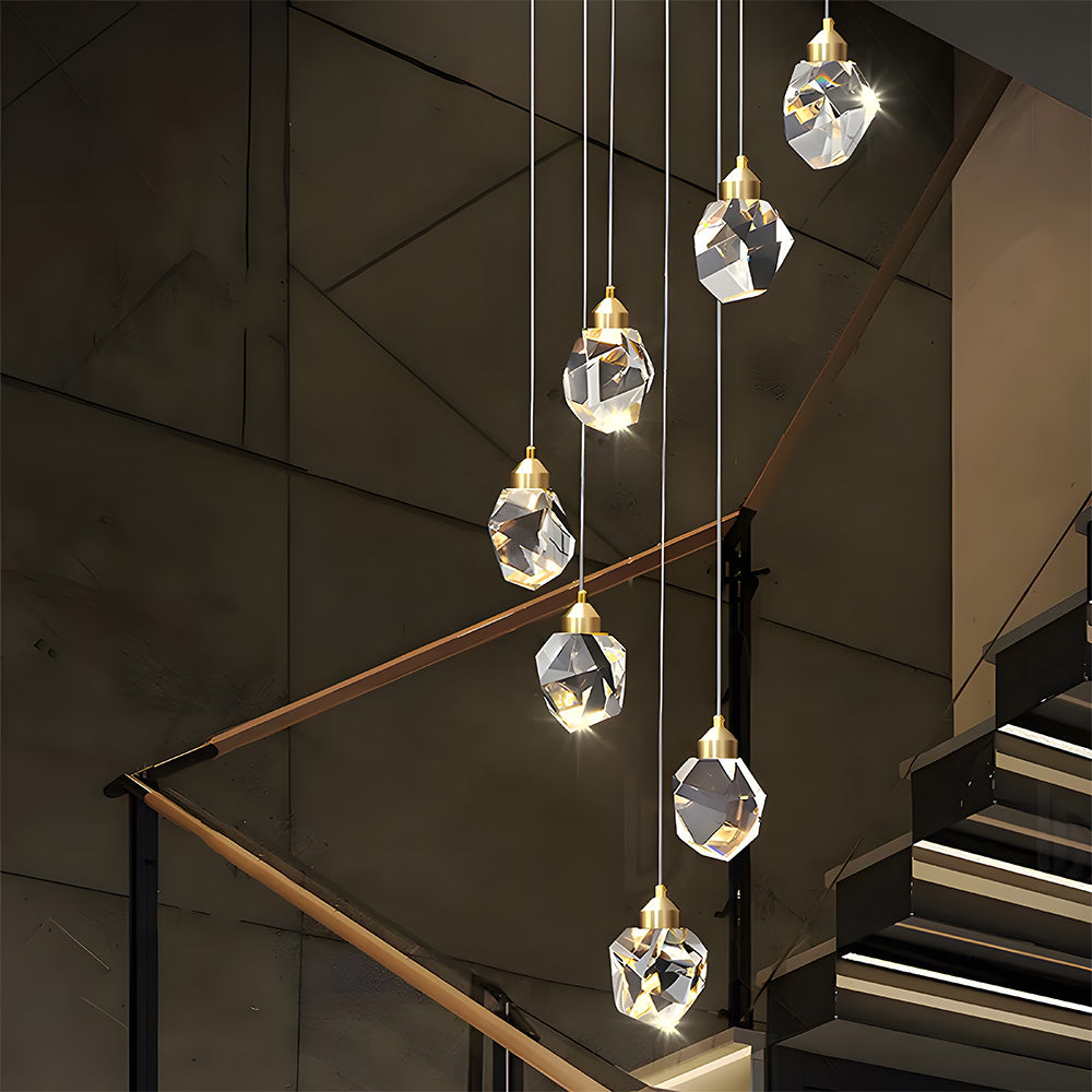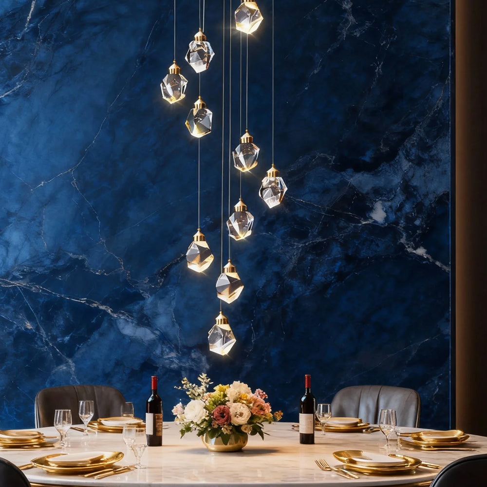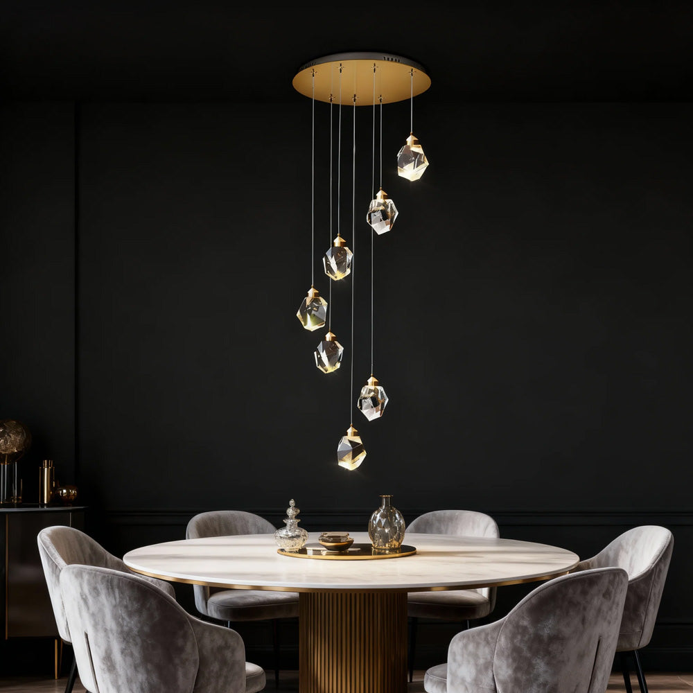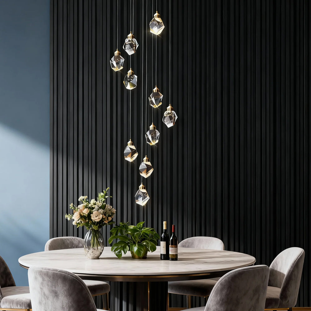 Minimalist Luxury Irregular Polygon Brass Crystal Pendant Light