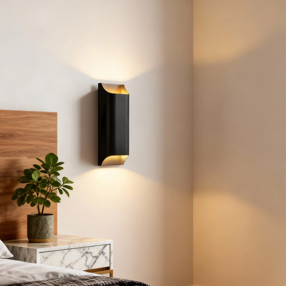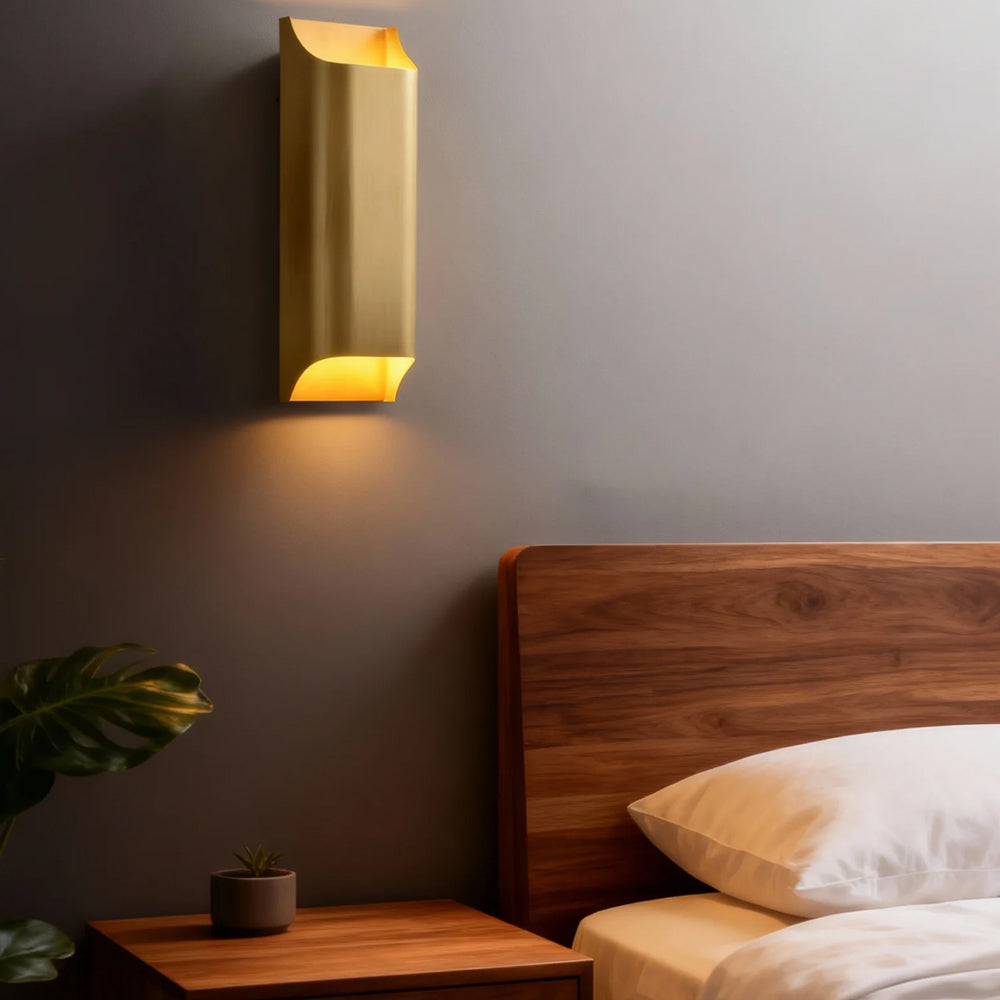A sophisticated balance of geometric contours and metallic texture. Expertly crafted with precision polishing and refined finishing, this wall light radiates a stunning luster. Its silky-smooth glow instills understated luxury into contemporary spaces.