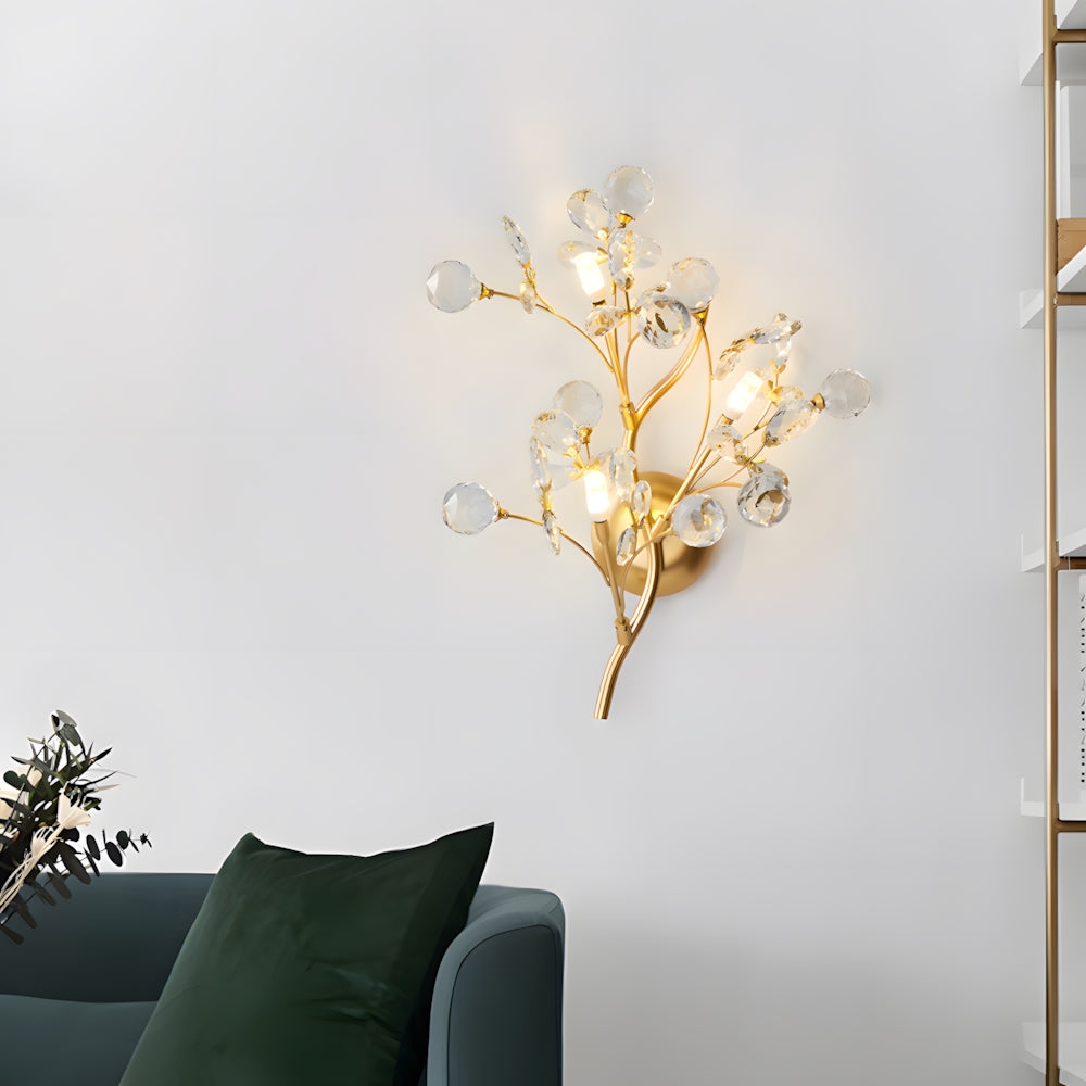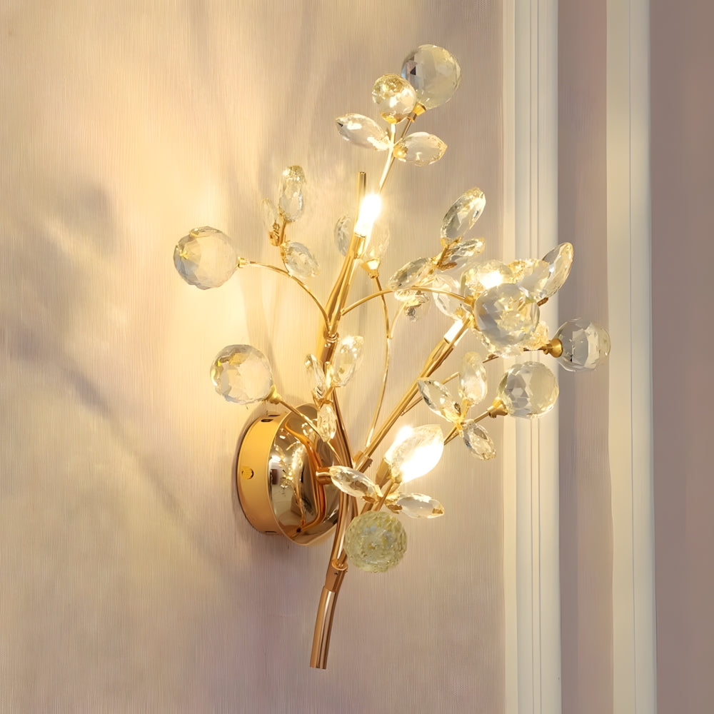 Modern Art Deco Luxury Crystal Floral Branch Iron Wall Light