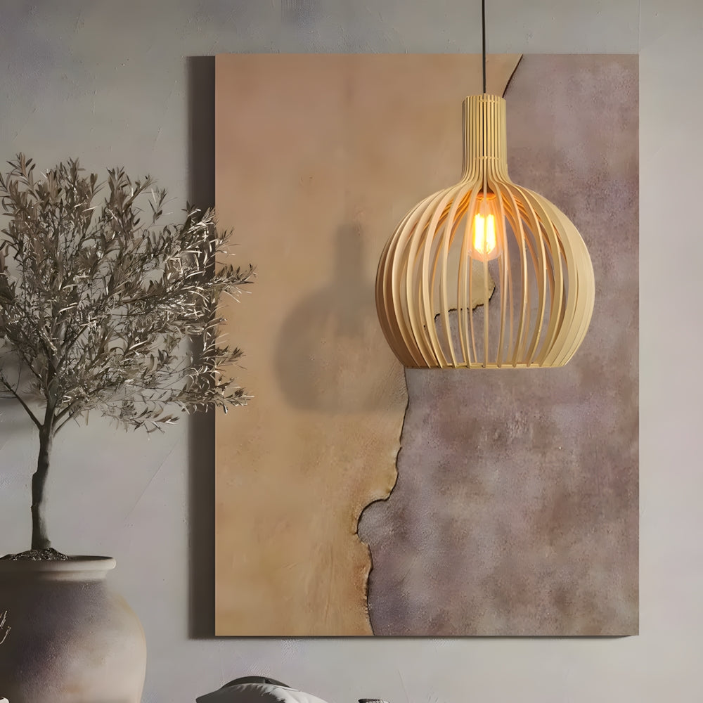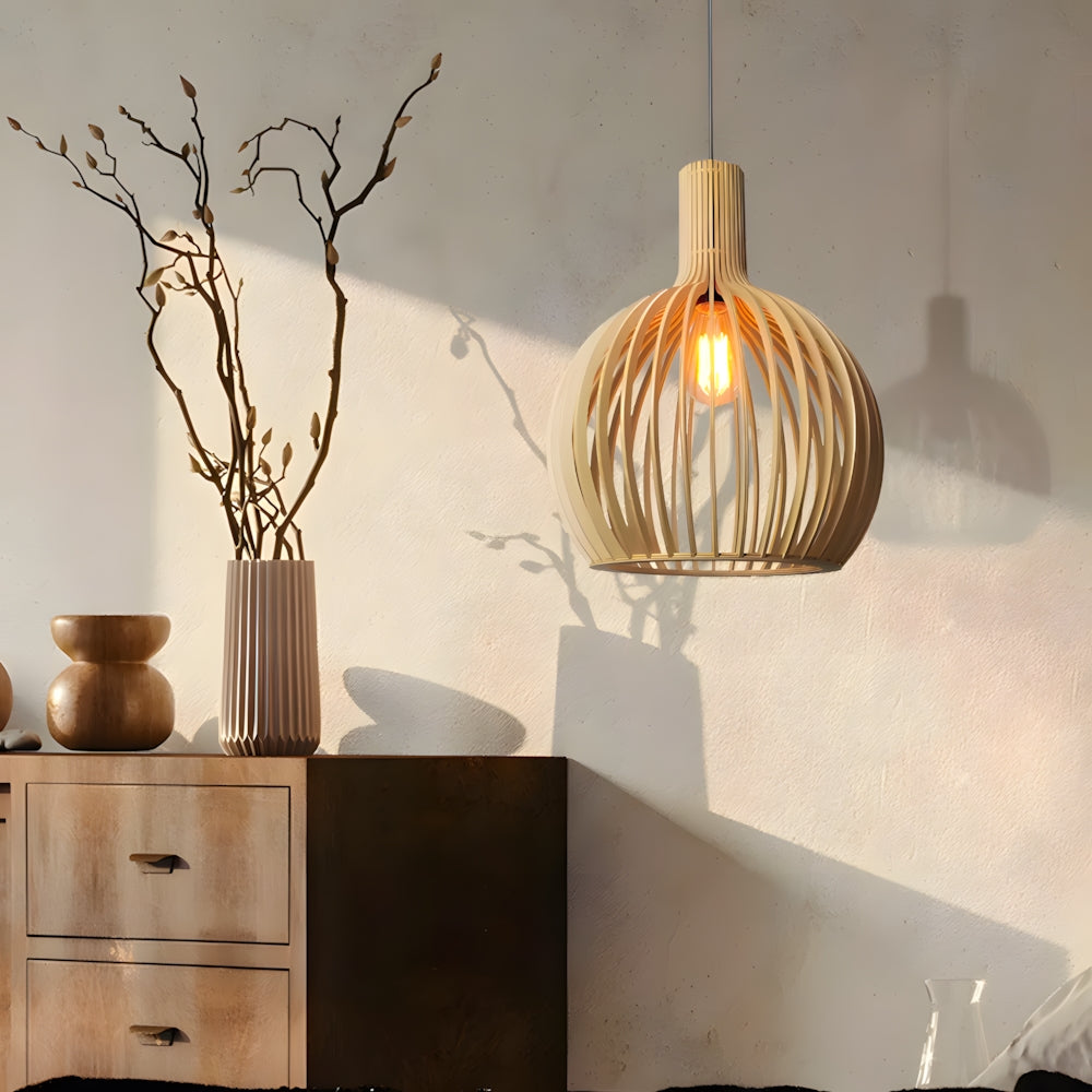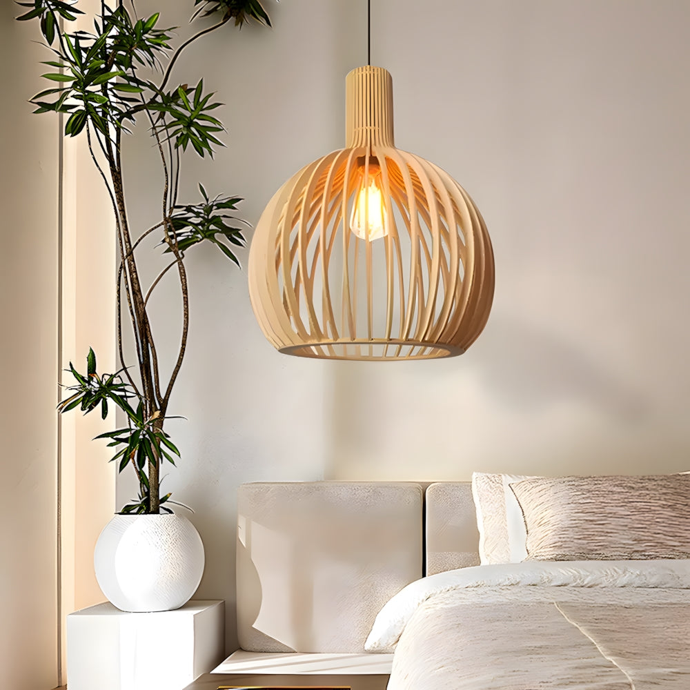 Nordic Modern Birdcage Wooden Pendant Light