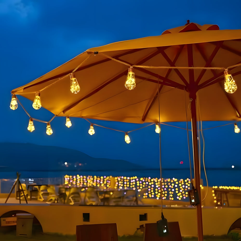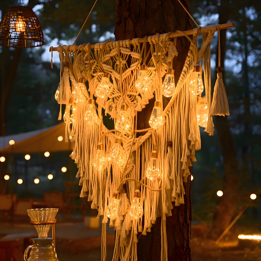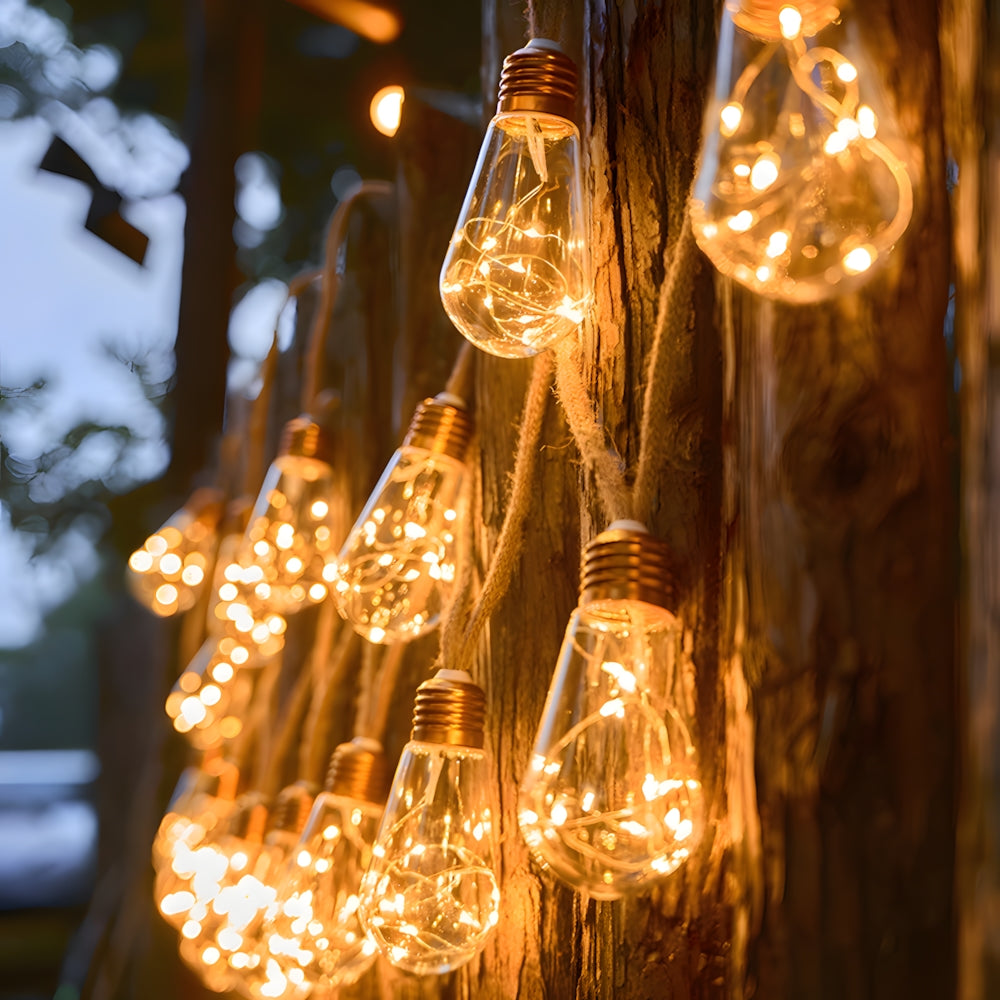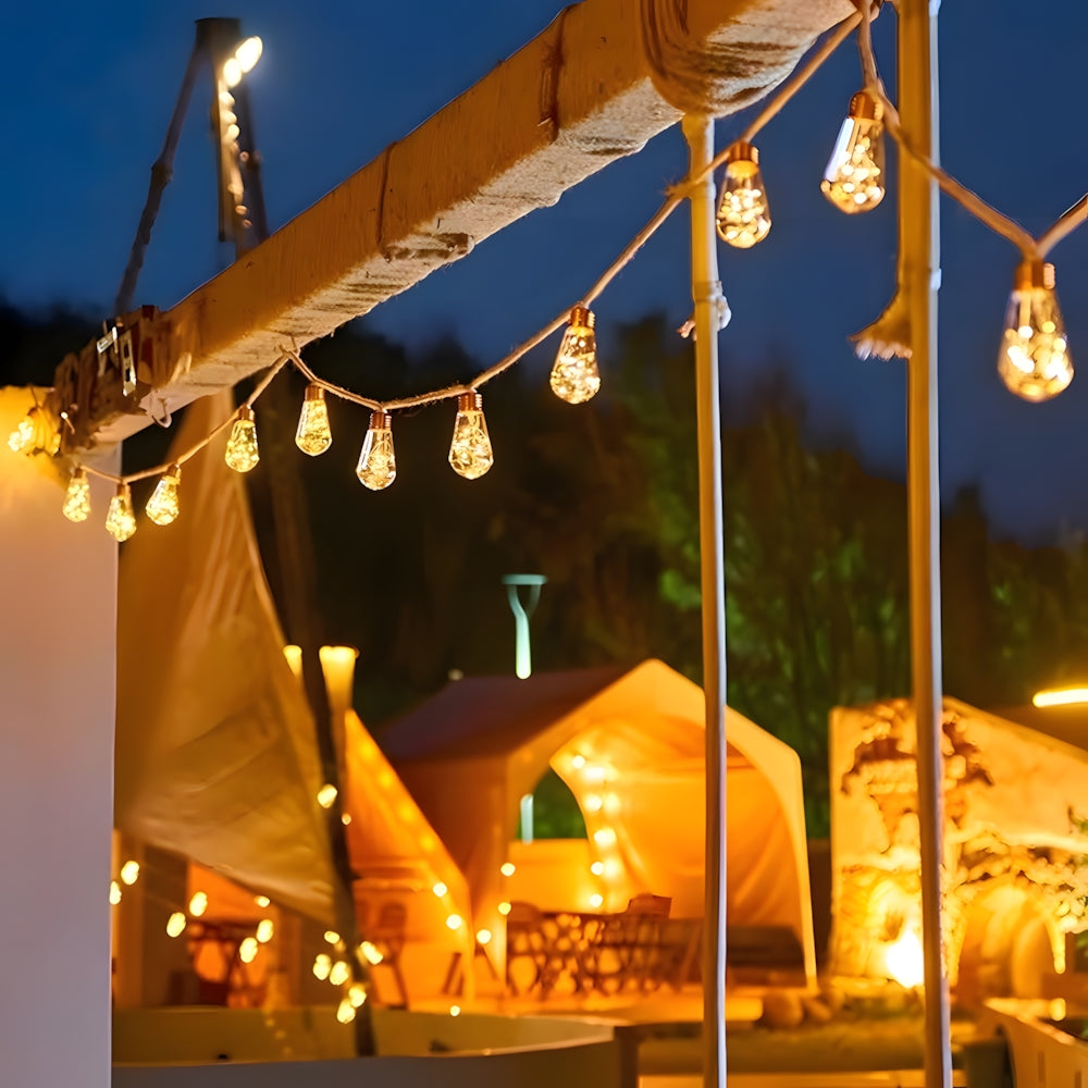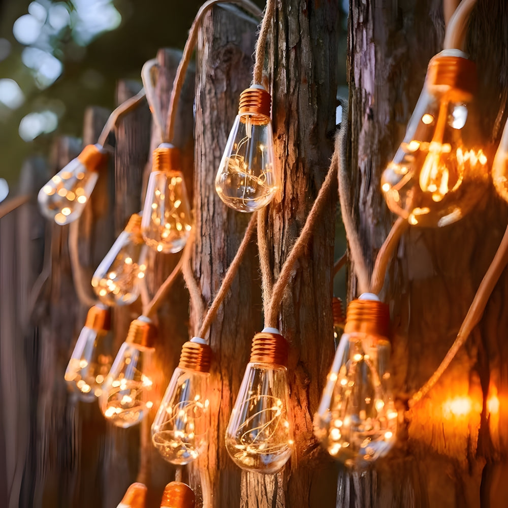 These Retro Hemp Rope LED String Lights combine vintage filament charm with waterproof durability. Eco-friendly and energy-efficient, they create a warm, magical atmosphere—perfect for illuminating garden parties or cozy outdoor dining areas.