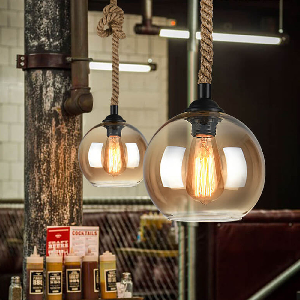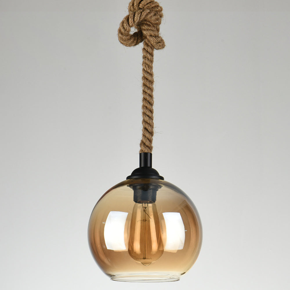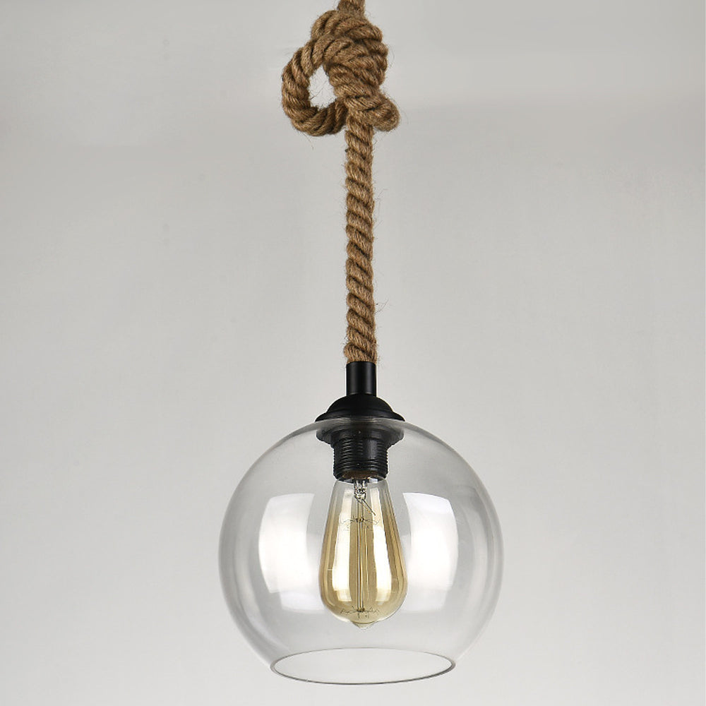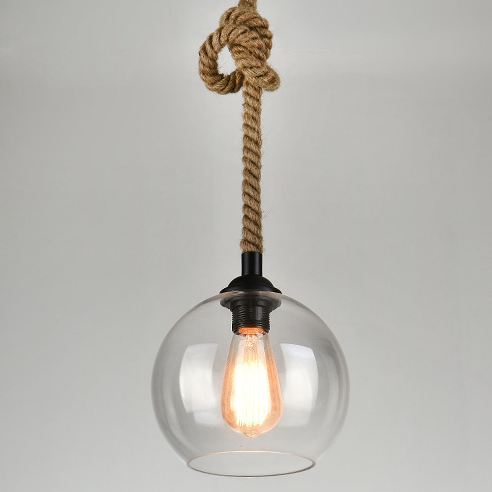 Retro Rope Hanging Glass Globe Metal Pendant Light