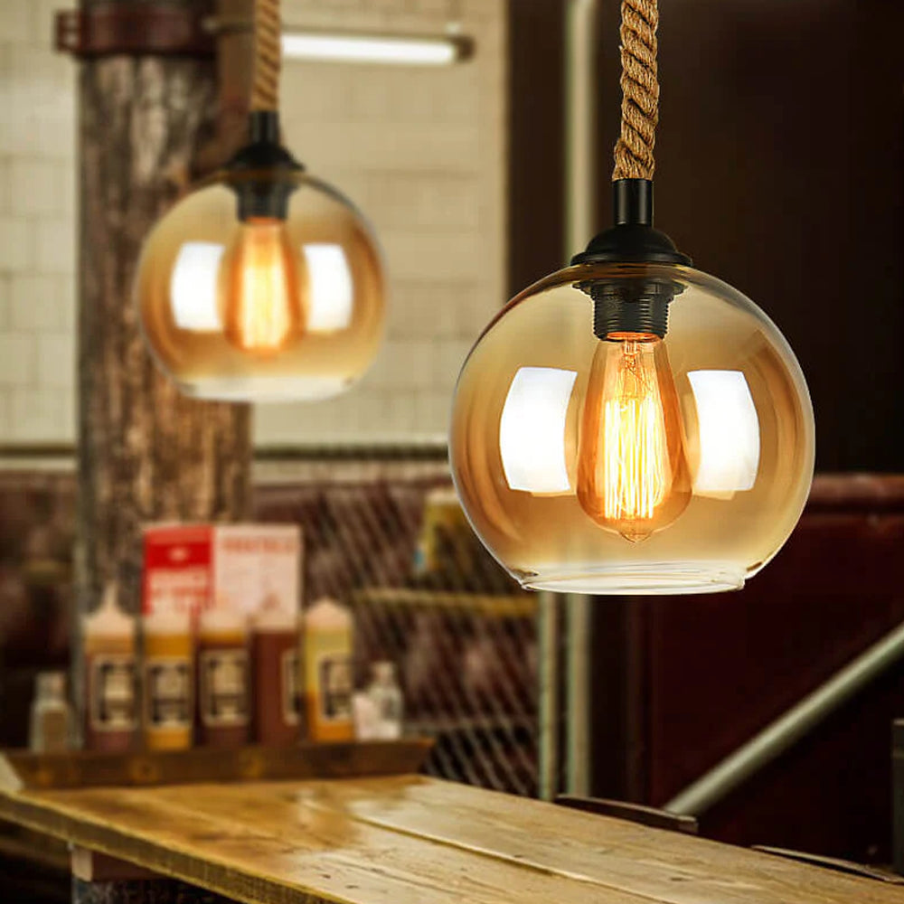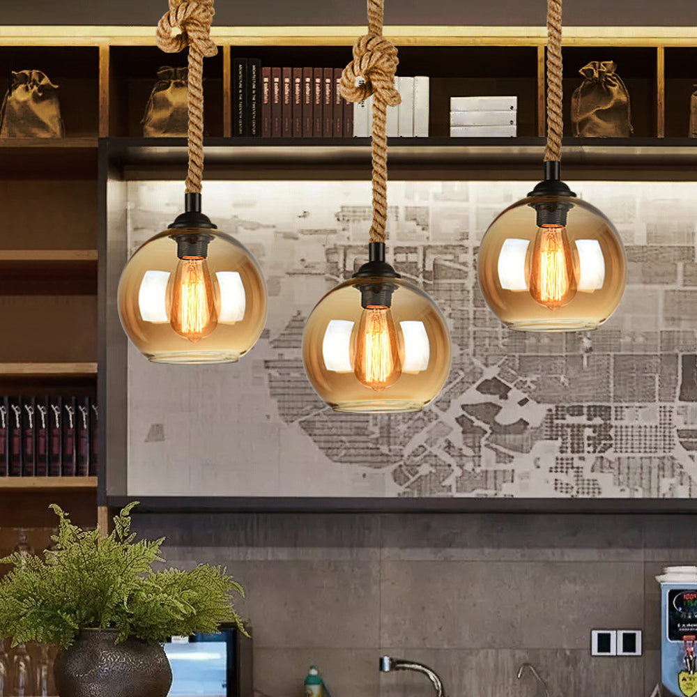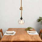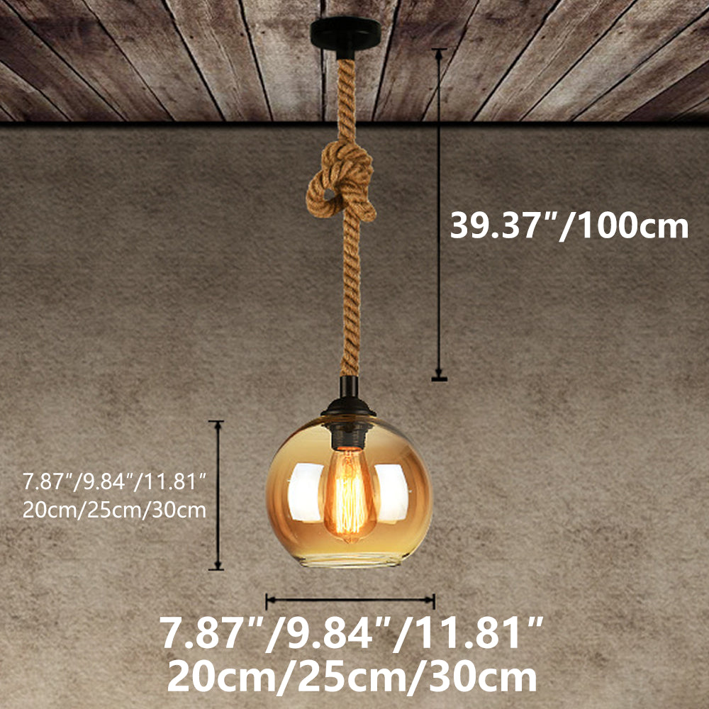Retro Rope Hanging Glass Globe Metal Pendant Light