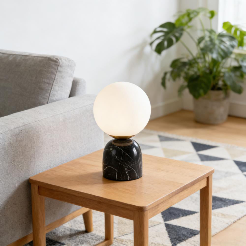 A sleek fusion of timeless marble and contemporary design! Smooth marble base pairs with glowing glass orb, casting soft ambient light—adding sophistication to modern or classic interiors.