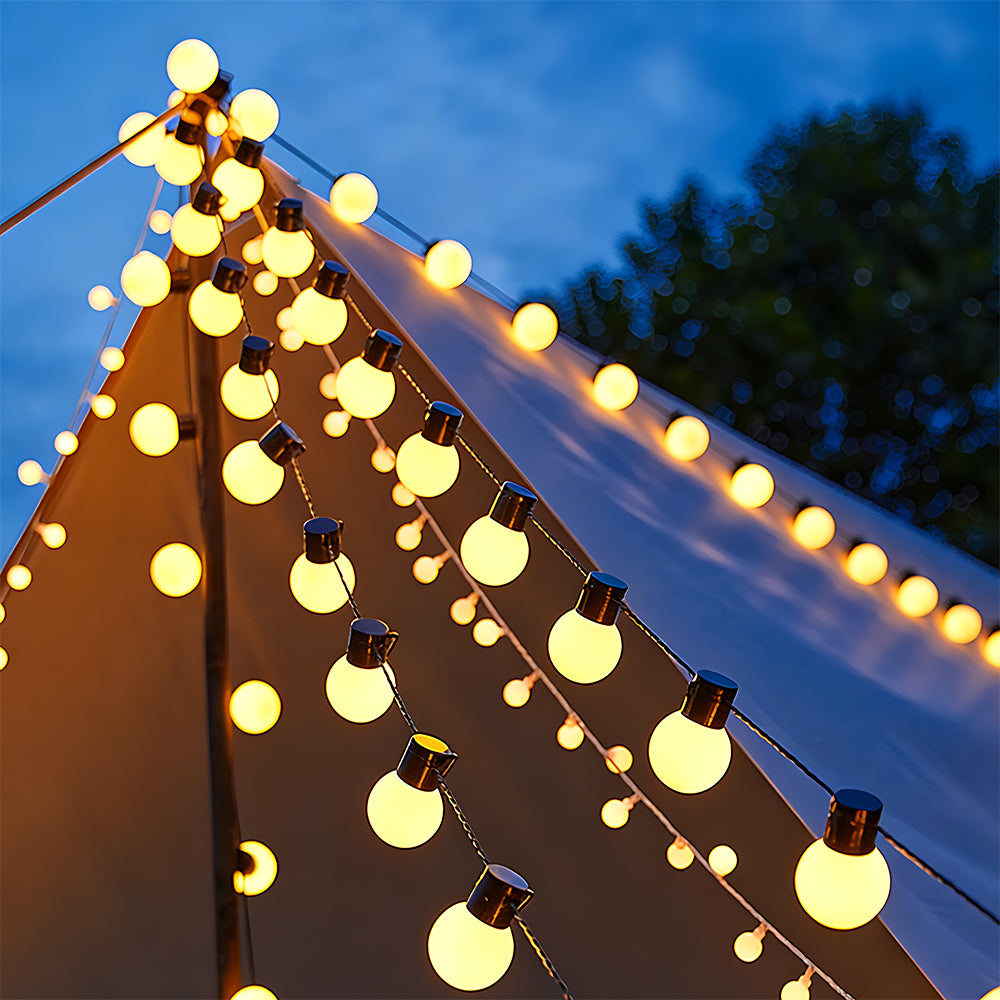 Transparent bubble-shaped units with a smooth, glossy finish and built-in waterproof LEDs. Light diffuses evenly inside each sphere, creating a crystal-clear bubble-like glow. Can be flexibly hung on trees, fences, or canopies—creating a vibrant, romantic nighttime ambiance.