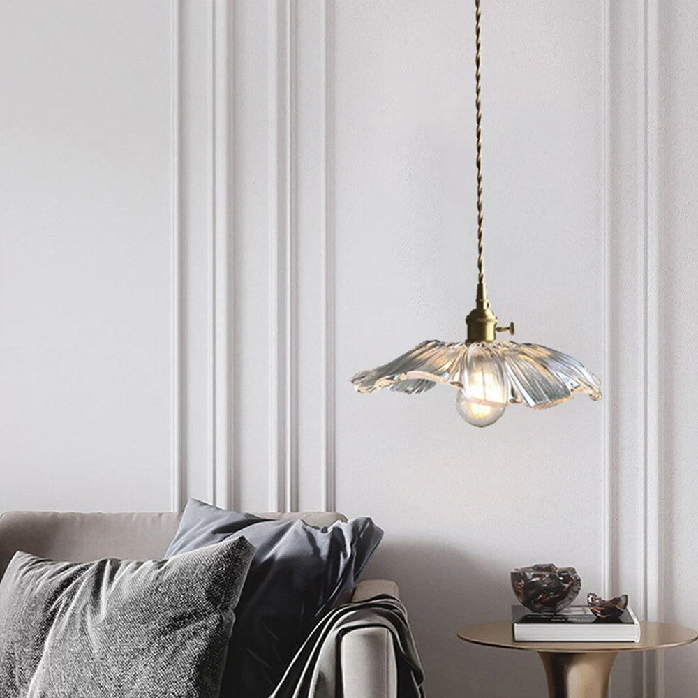 Transform your dining space with this stunning glass pendant. Its delicate flower design casts a soft, beautiful glow, creating a warm and inviting atmosphere for every meal.