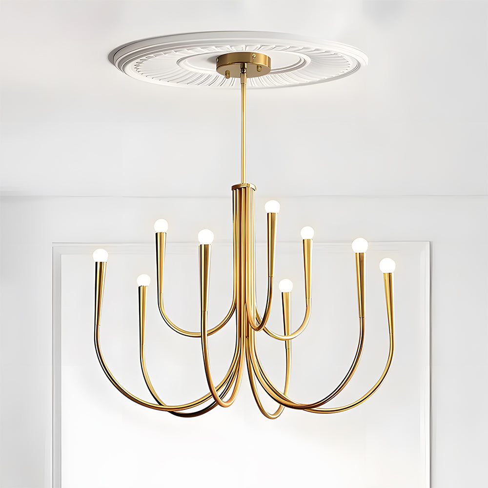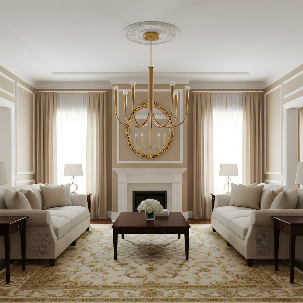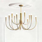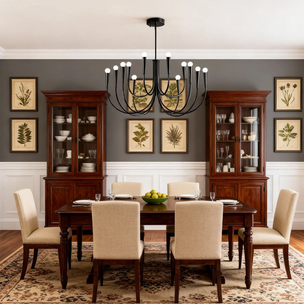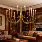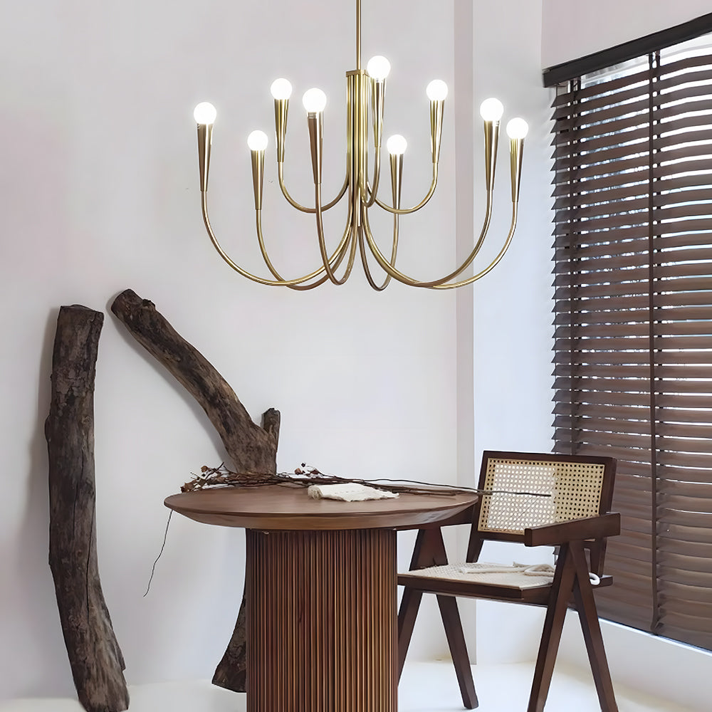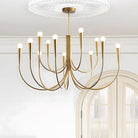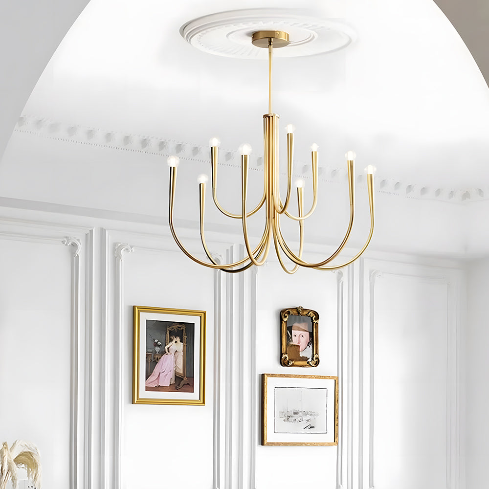 Elegant metal arms hold candle-style lights, casting a warm, ambient glow. With its vintage-inspired design and luxurious finish, this chandelier adds a touch of timeless sophistication to any formal space.