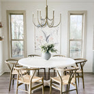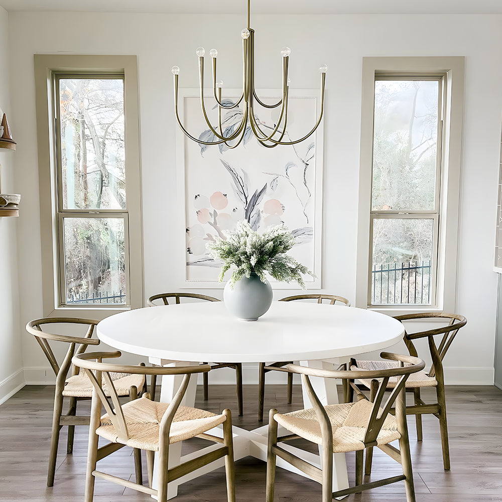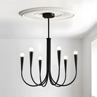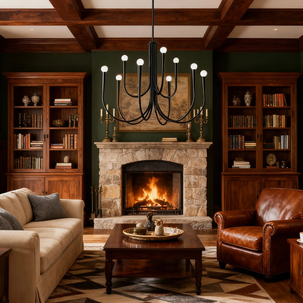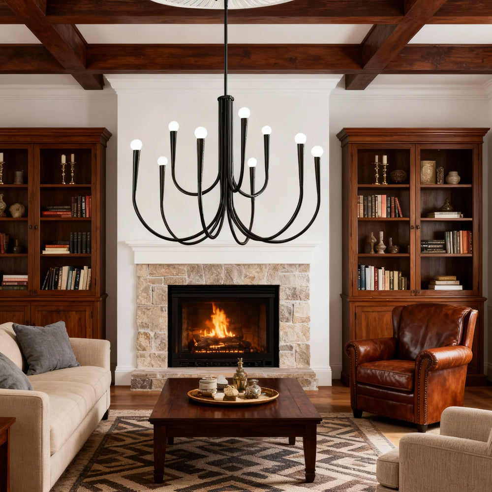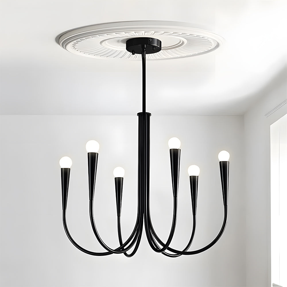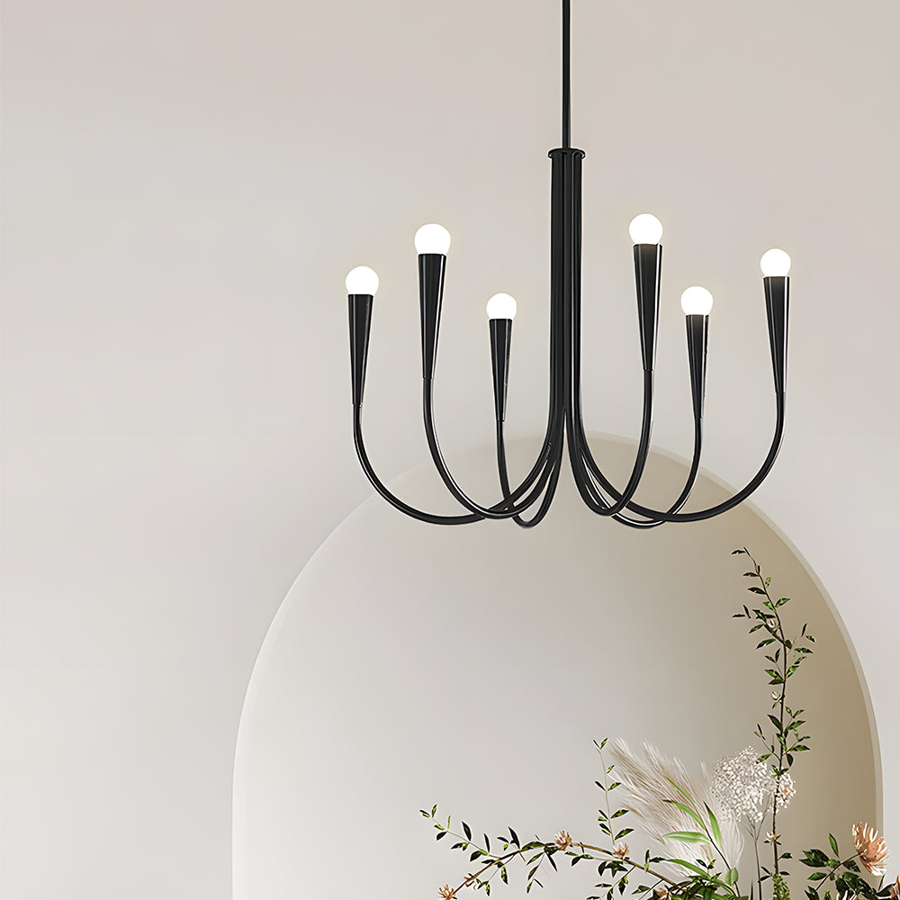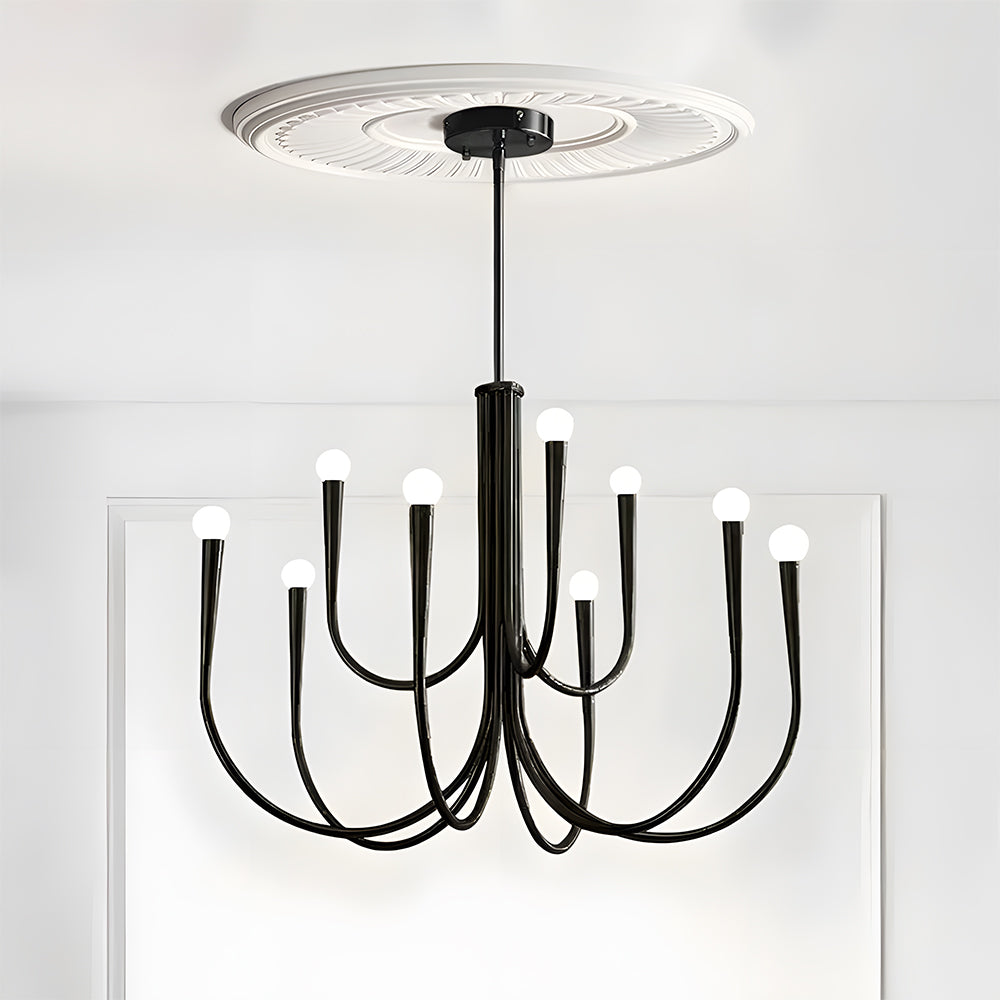Elegant metal arms hold candle-style lights, casting a warm, ambient glow. With its vintage-inspired design and luxurious finish, this chandelier adds a touch of timeless sophistication to any formal space.