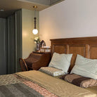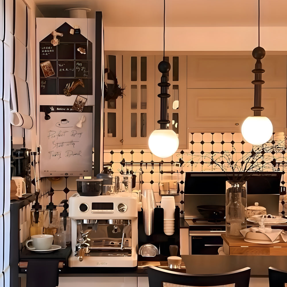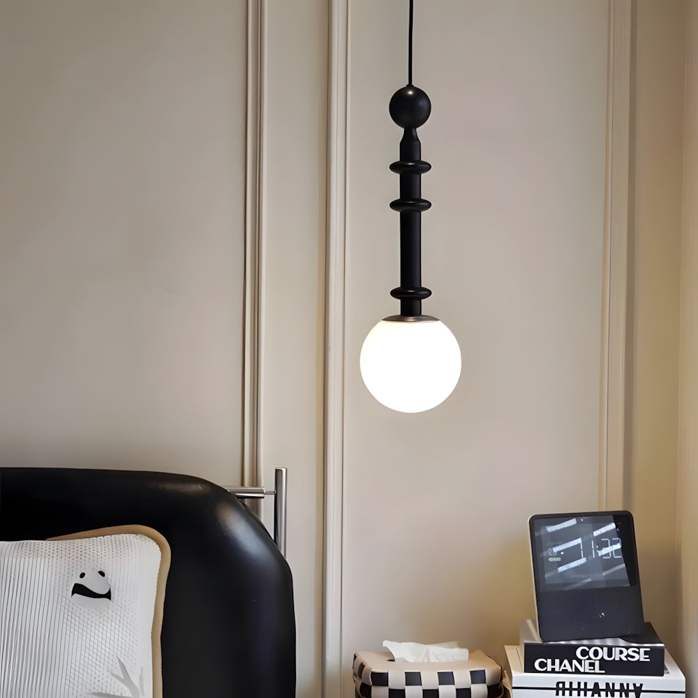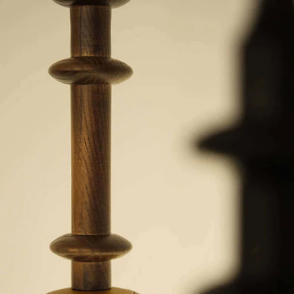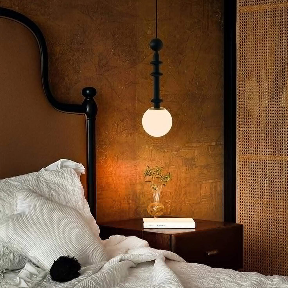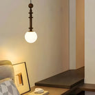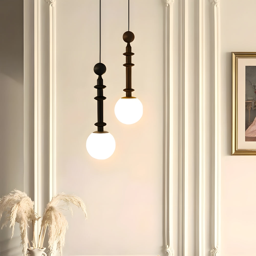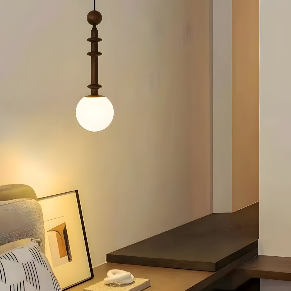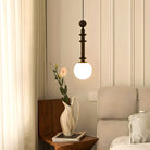 This Vintage Roman Column Wood Pendant Light (white walnut, metal, blown glass) brings timeless charm and warmth. Soft glow creates a cozy vibe, ideal for dining areas/corners with French country elegance.