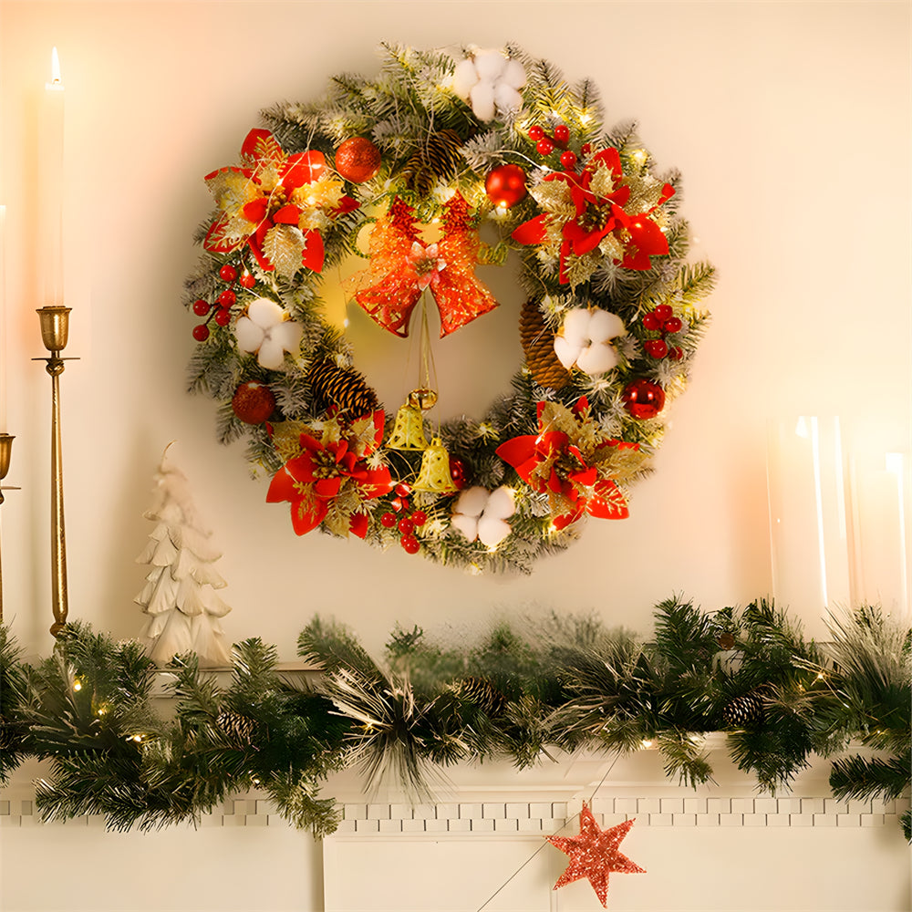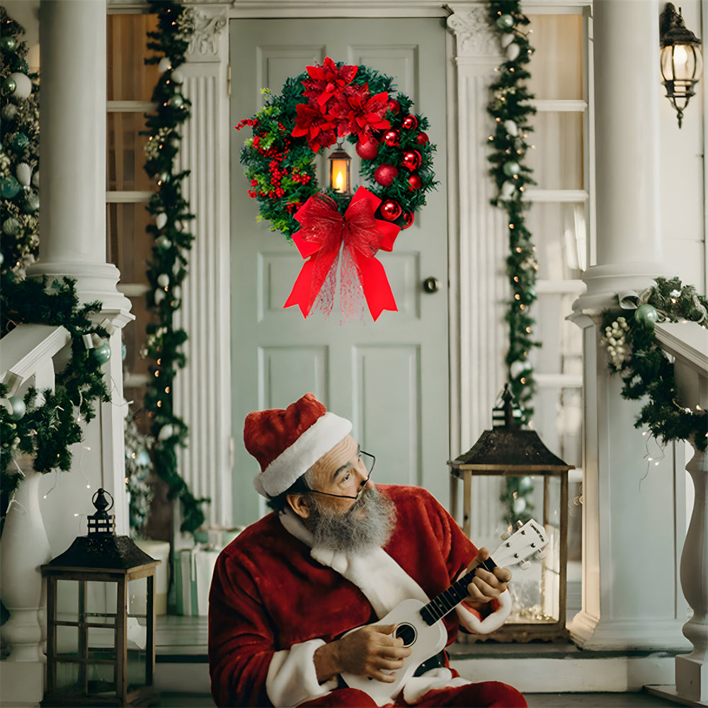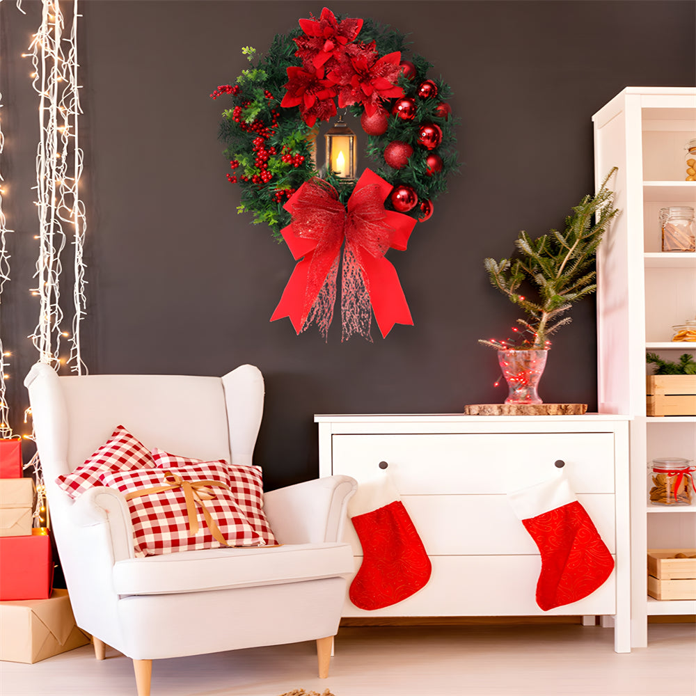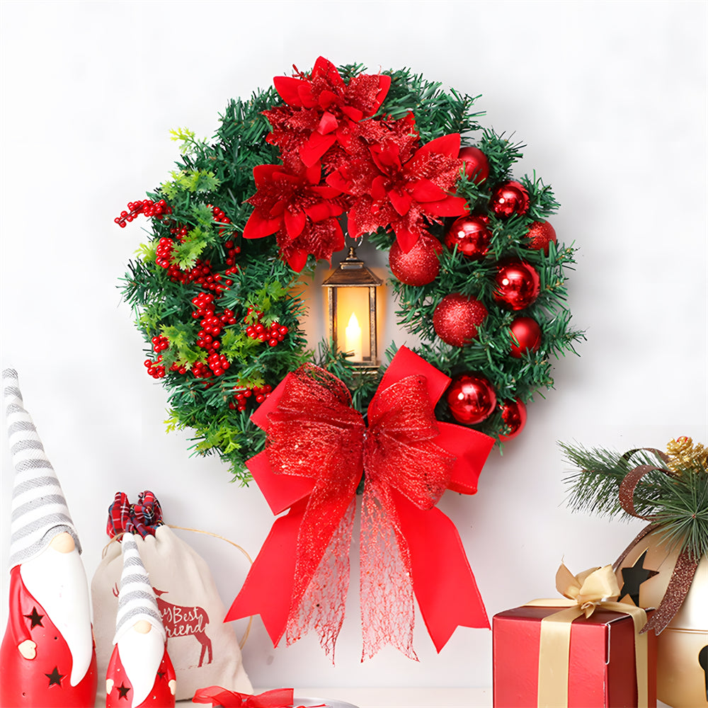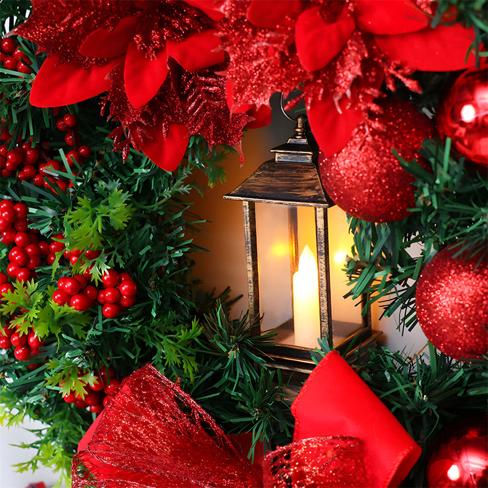 Elegant Glowing Christmas Red Wreath With Integrated LED Lights