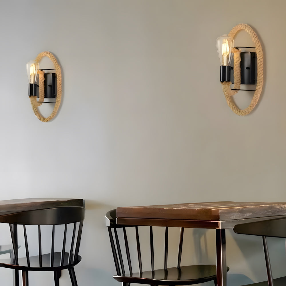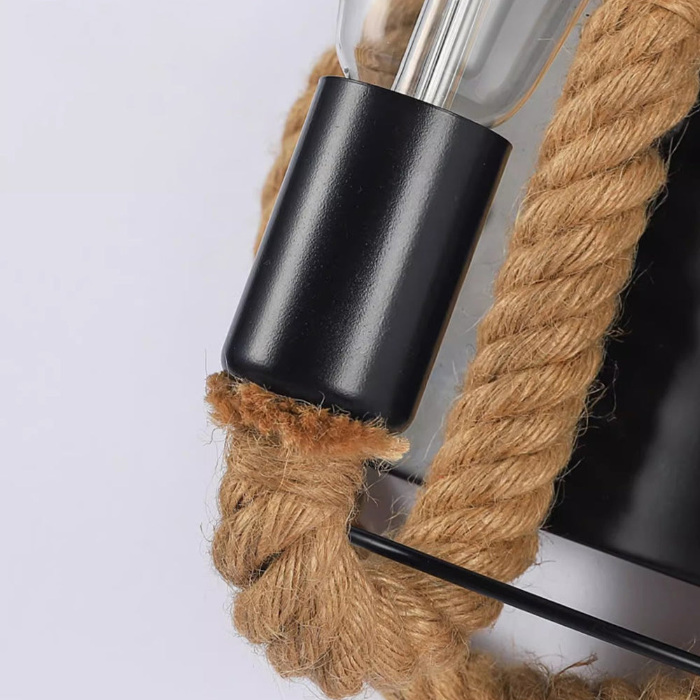 Vintage Industrial Round Hemp Rope Wall Light