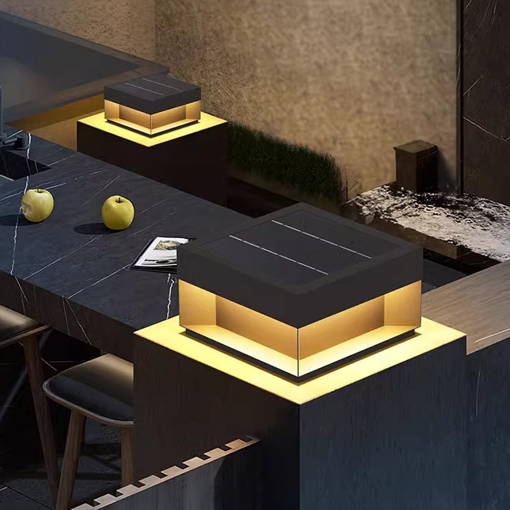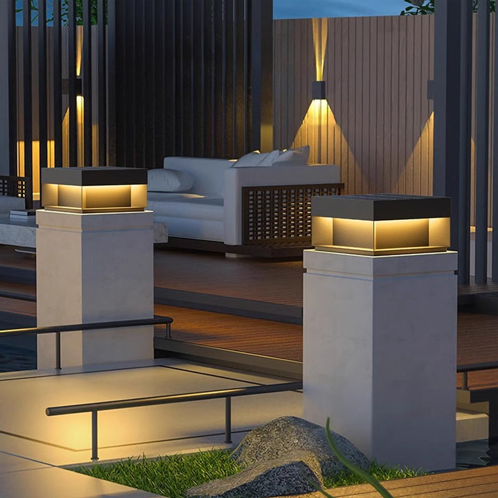 Modern All-Black Stainless Steel Waterproof Outdoor Solar Pole Light