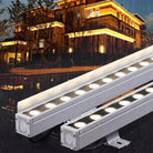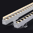 This sleek, elongated LED wall washer illuminates your exterior with precision. Its durable aluminum body, tempered glass lens, and integrated baffle provide glare-free illumination. Featuring an adjustable tilt and integrated brackets for easy installation and a modern finish.