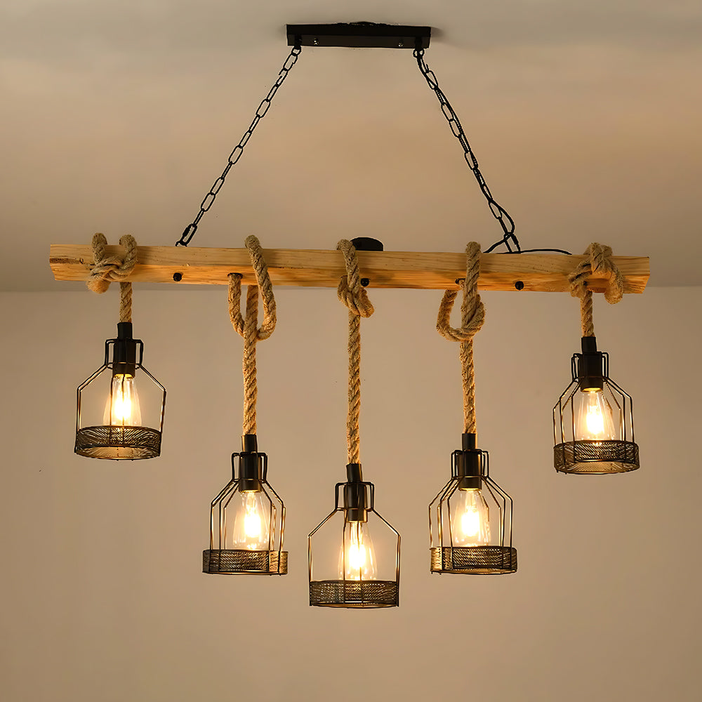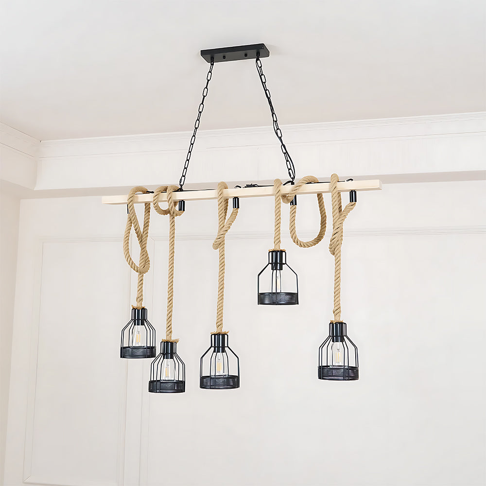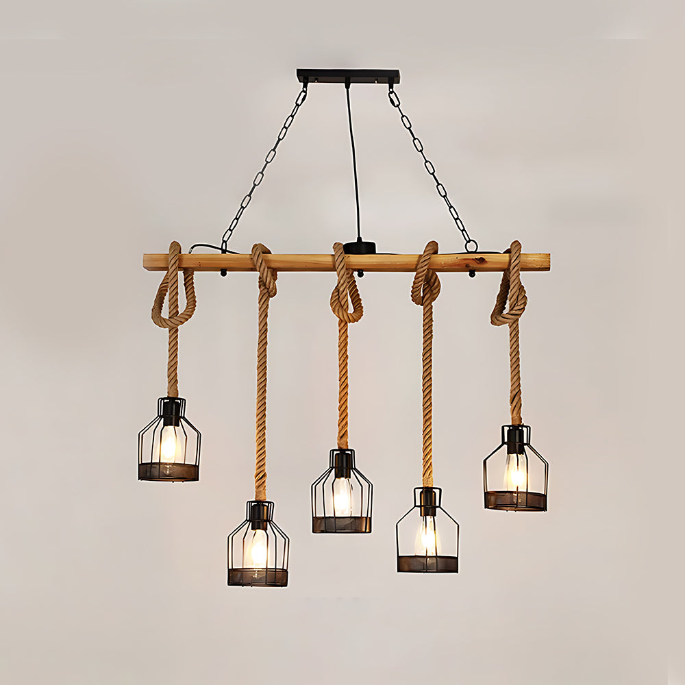 American Vintage Industrial Style Rope Cage Pendant Light