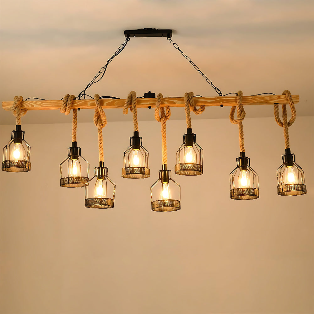 Built on an industrial cage form, this lamp combines a metal frame with natural rope. Light filters through the cage to cast dappled shadows. Ideal for dining rooms, bars, lofts, and vintage industrial spaces—it interprets American industrial aesthetics through rugged materials and nostalgic form.