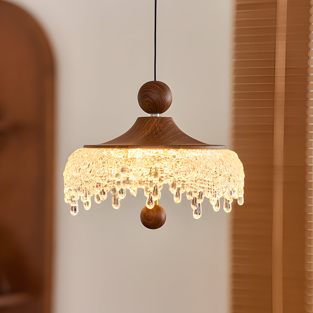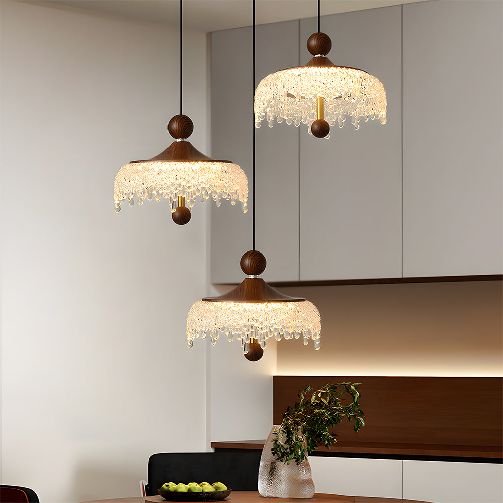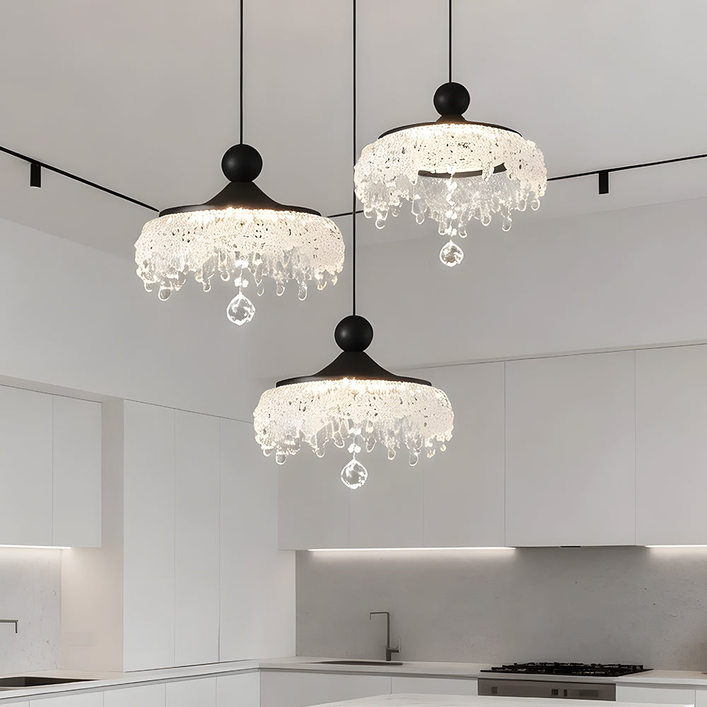 French Mid Century Round Acrylic Waterdrop Pendant Light