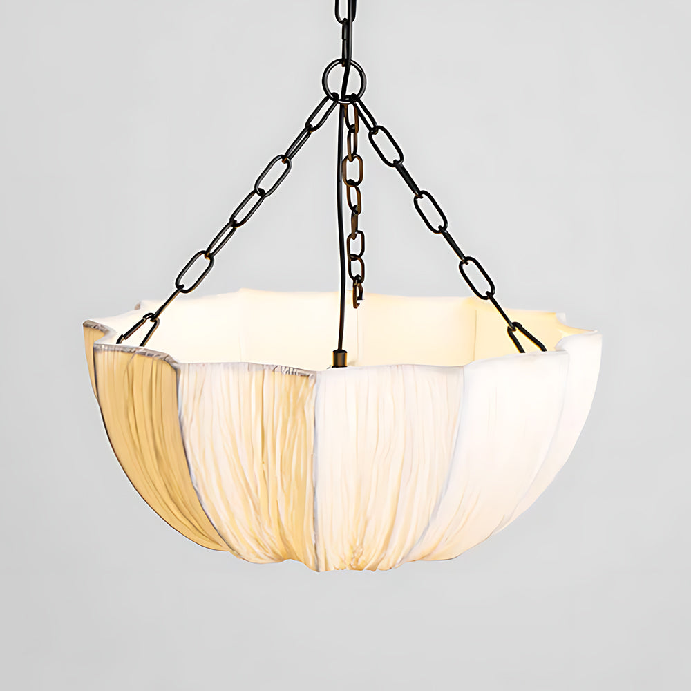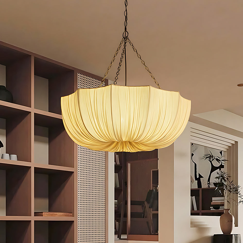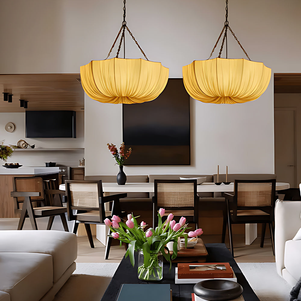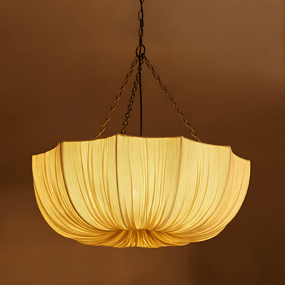 French Vintage Pumpkin Off-White Fabric Pendant Light