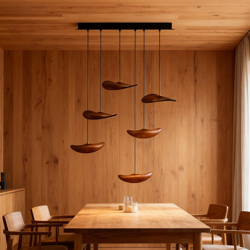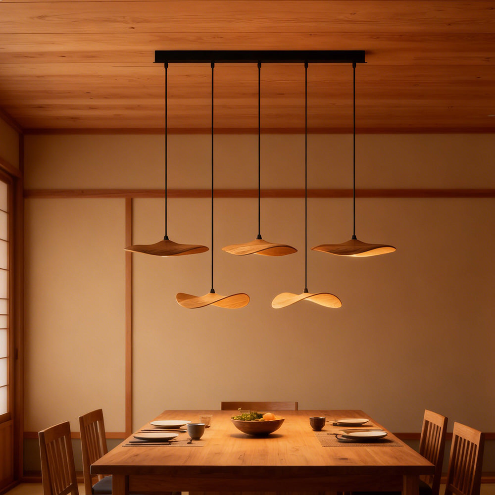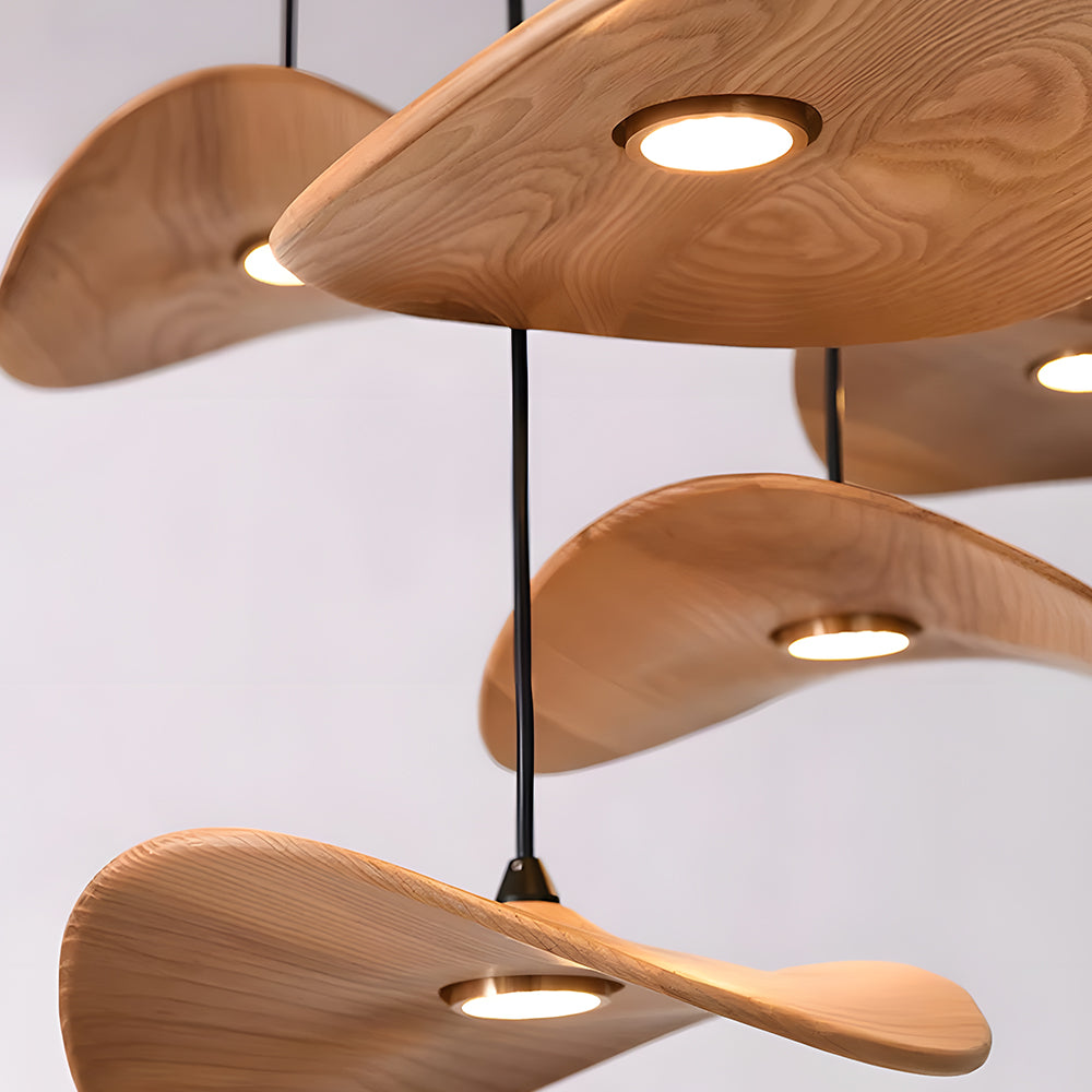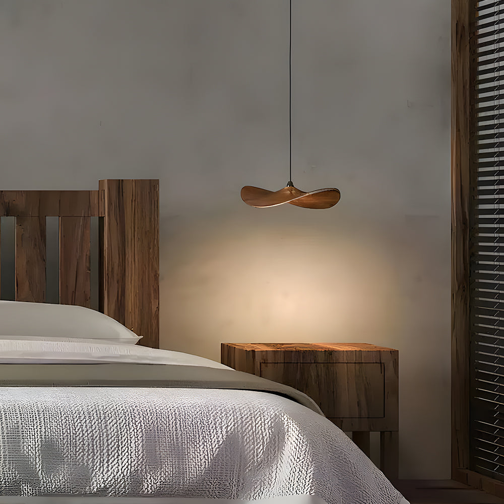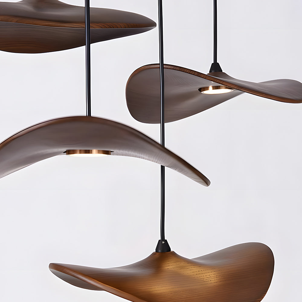 Japanese Wabi Sabi Wooden Leaf Shaped Pendant Light