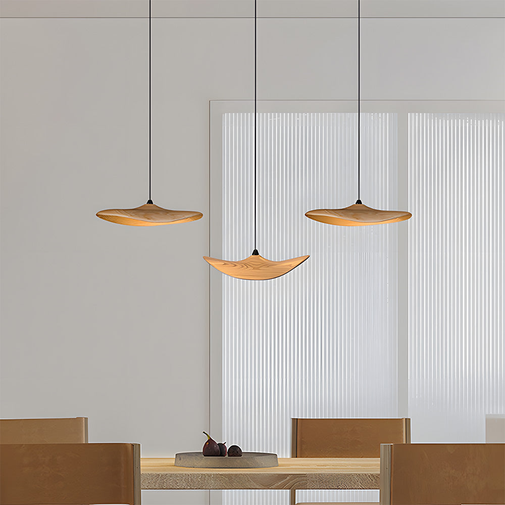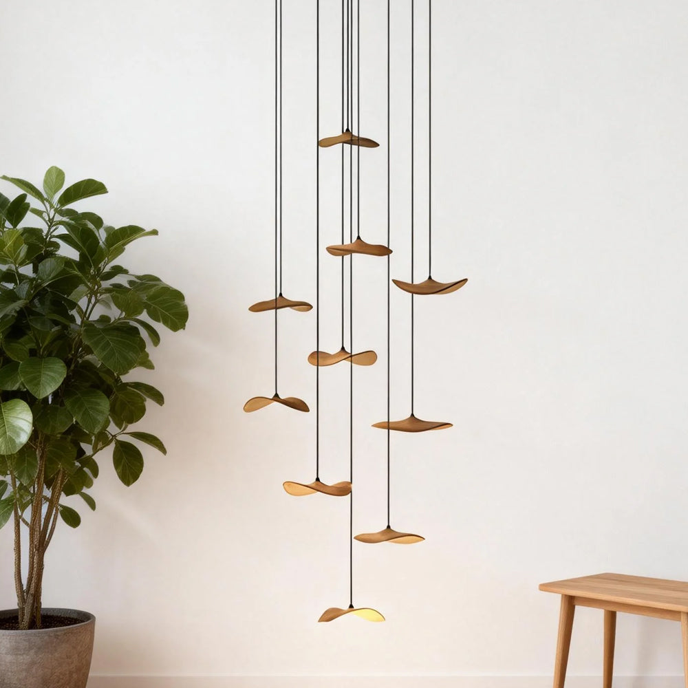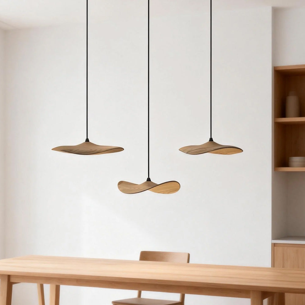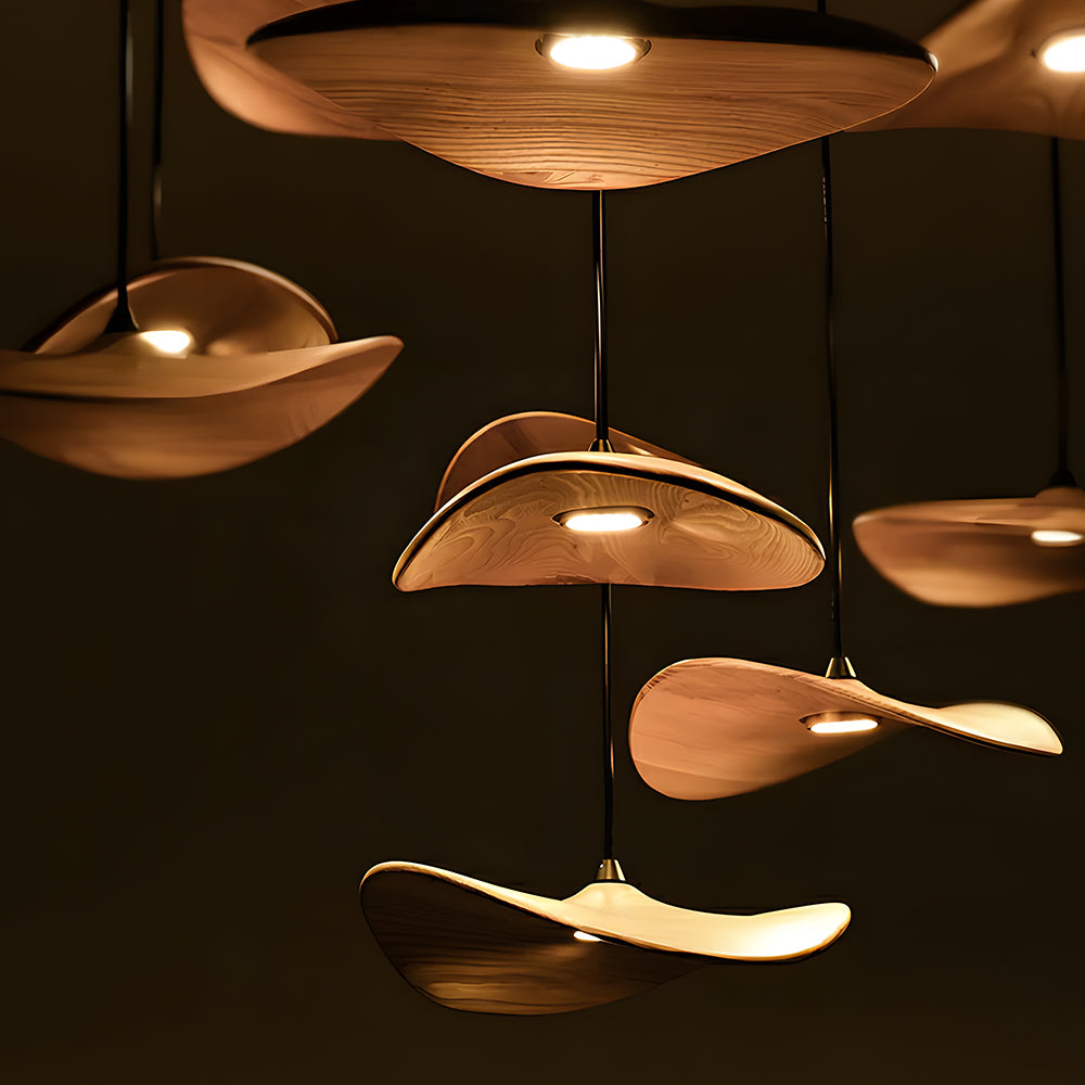 Japanese Wabi Sabi Wooden Leaf Shaped Pendant Light