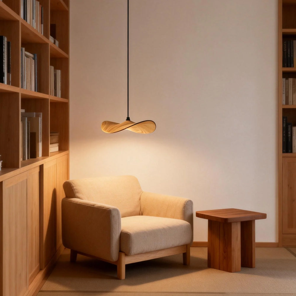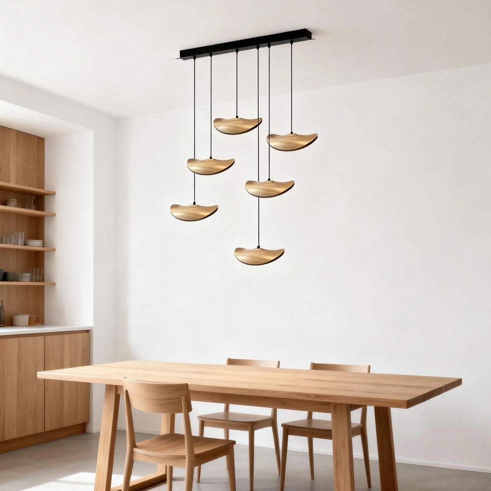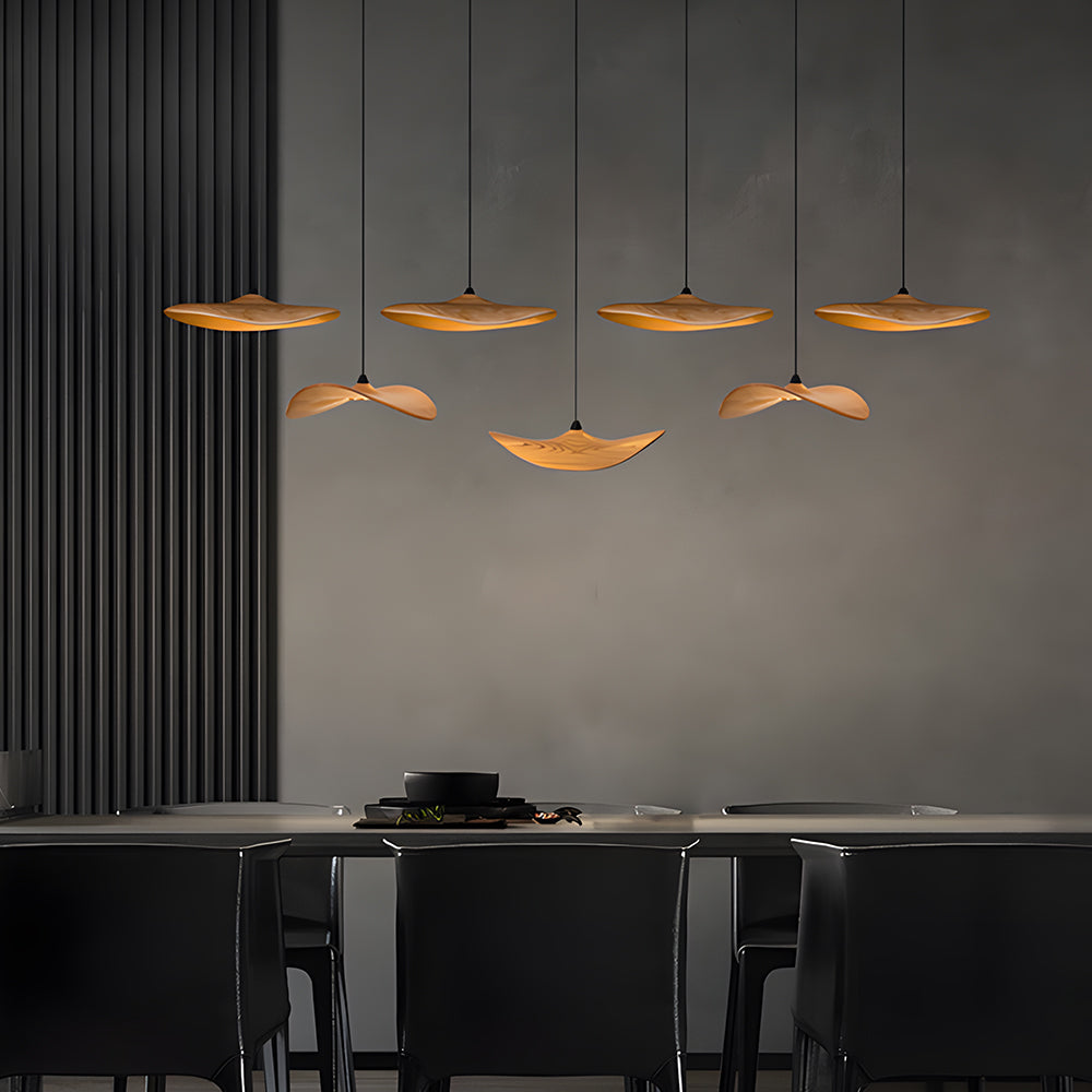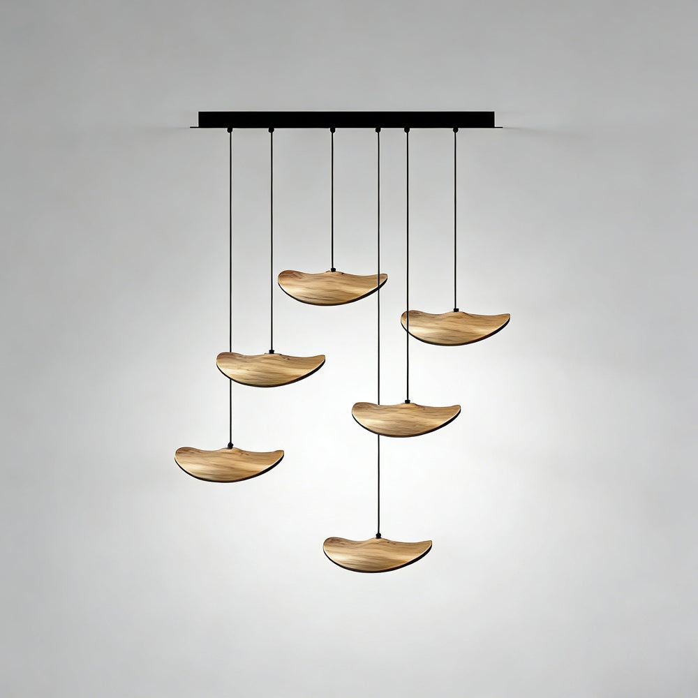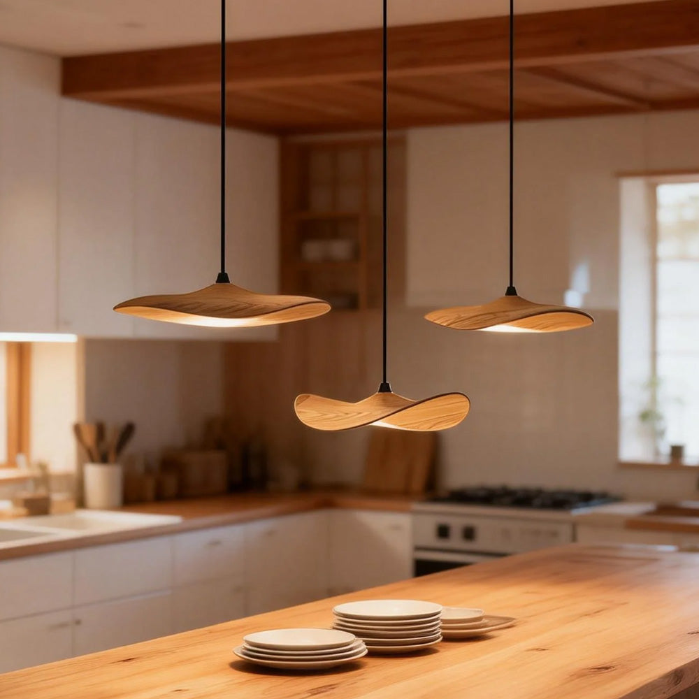 Japanese Wabi Sabi Wooden Leaf Shaped Pendant Light