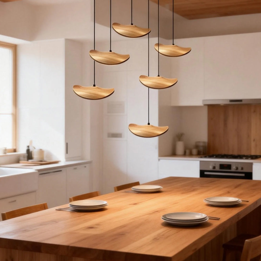This pendant light draws inspiration from gently falling leaves, capturing the poetic essence of "the eternal in the fleeting moment" in Wabi-Sabi aesthetics. It is suitable for bedrooms, dining rooms, and kitchens.