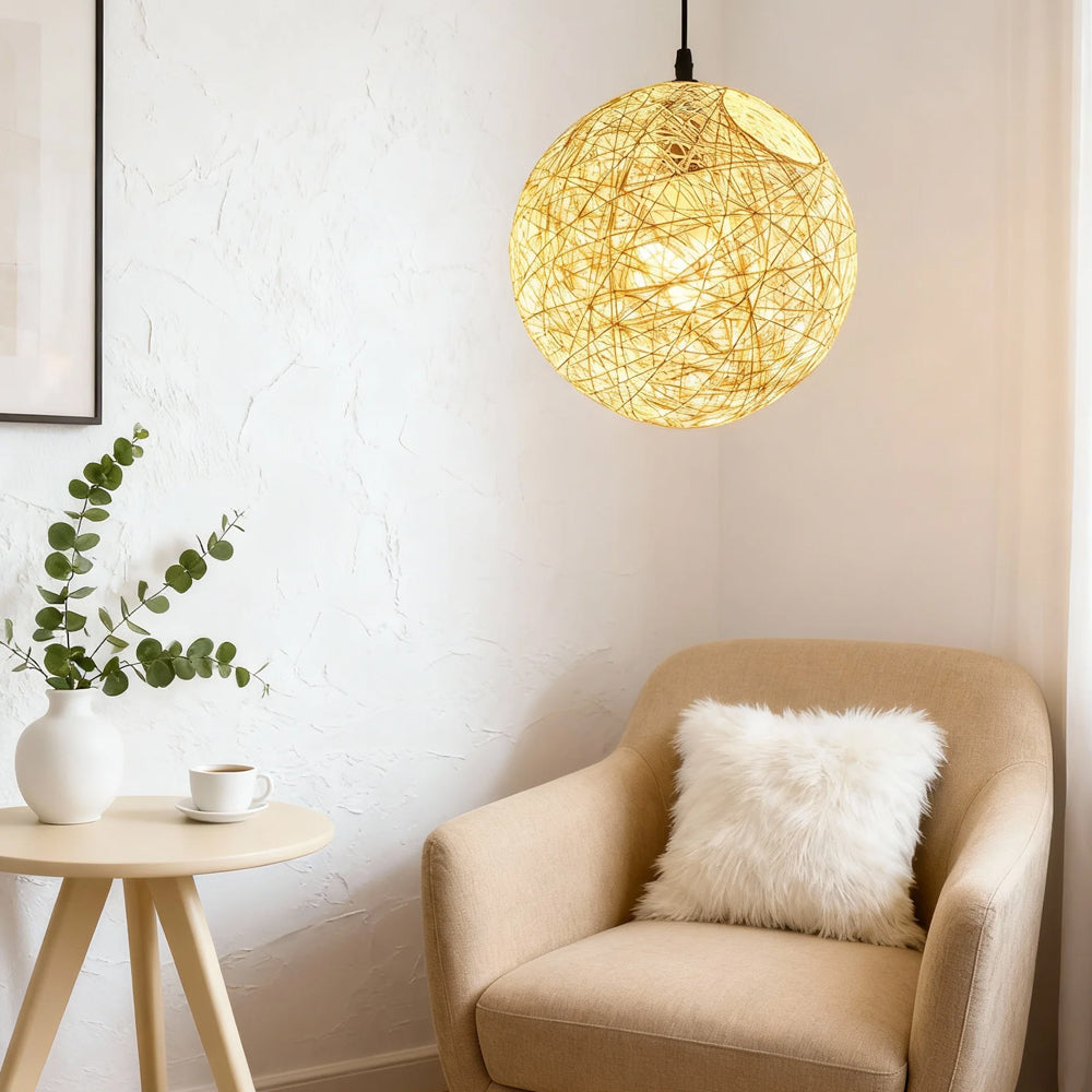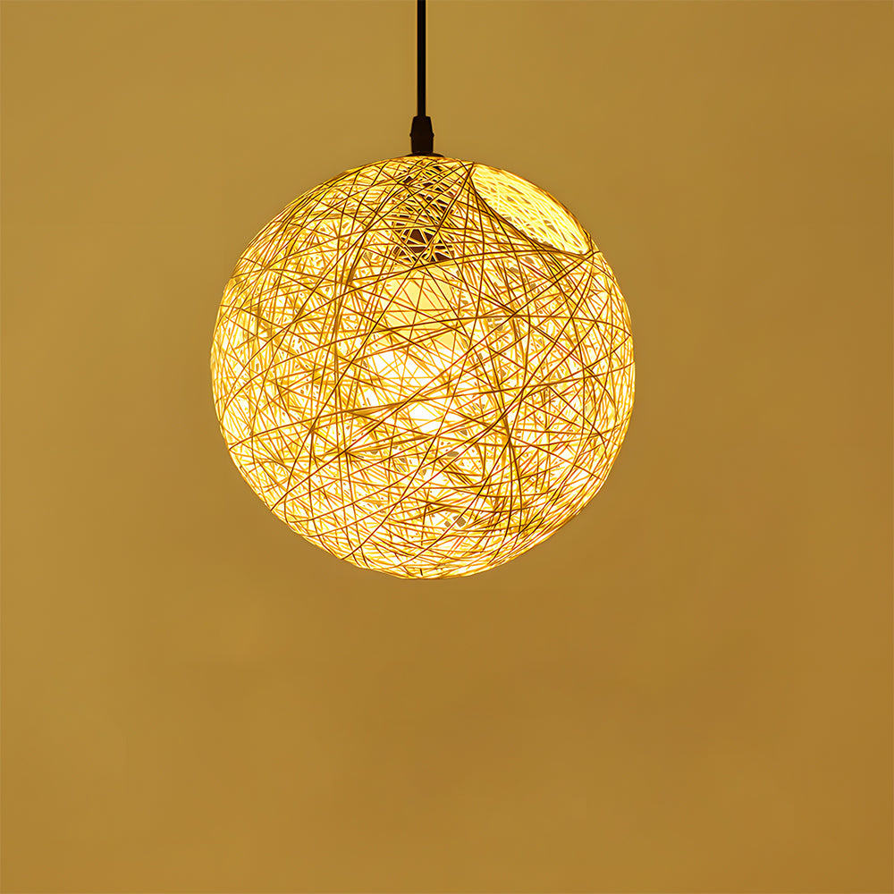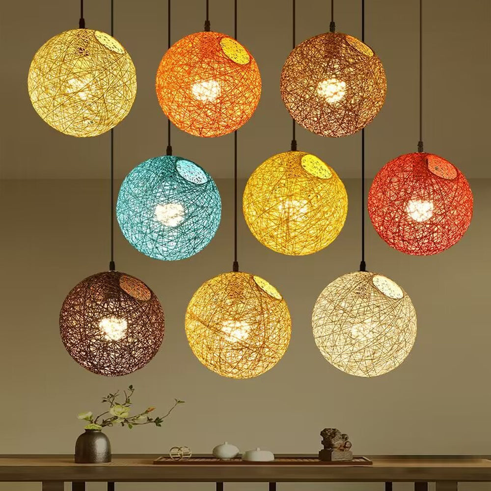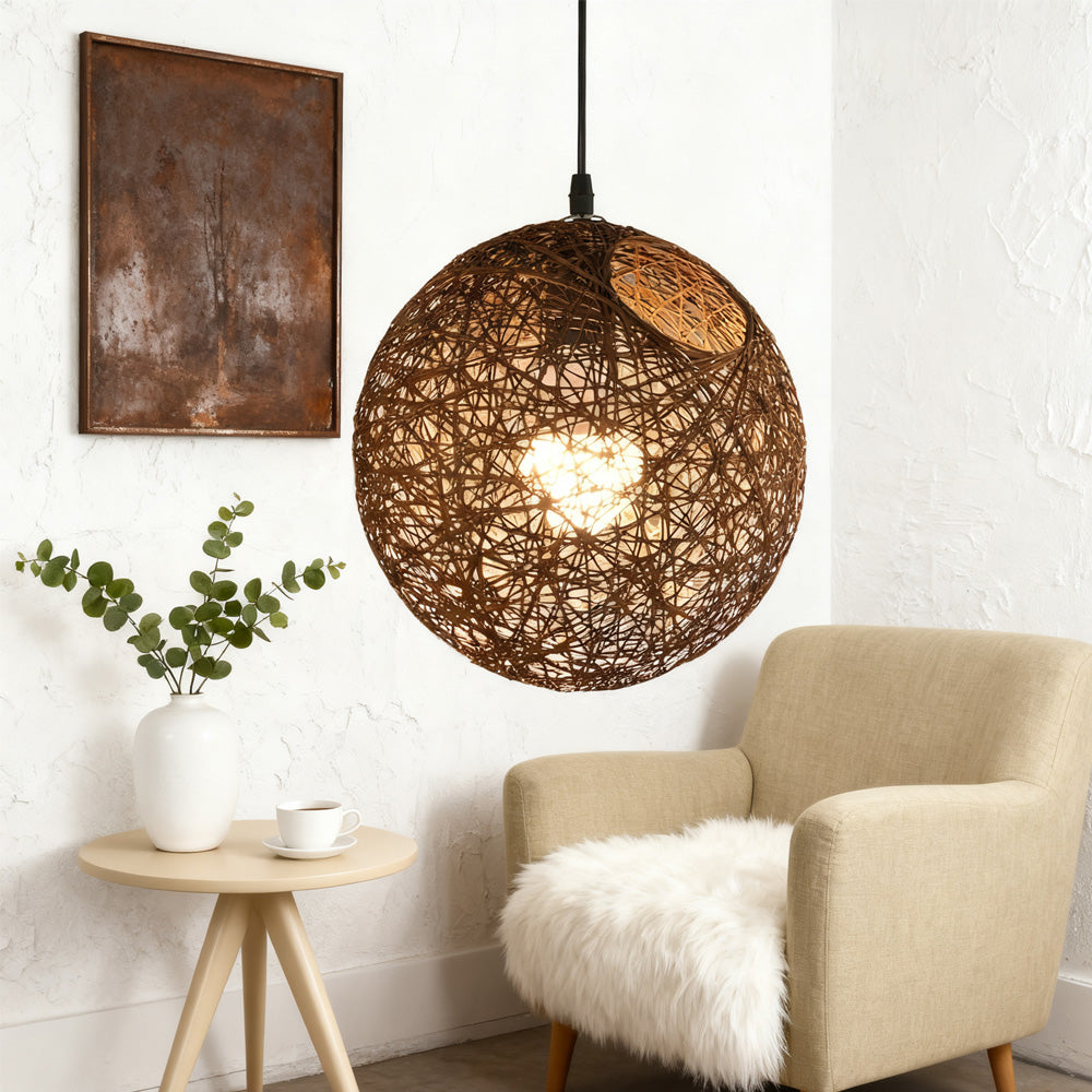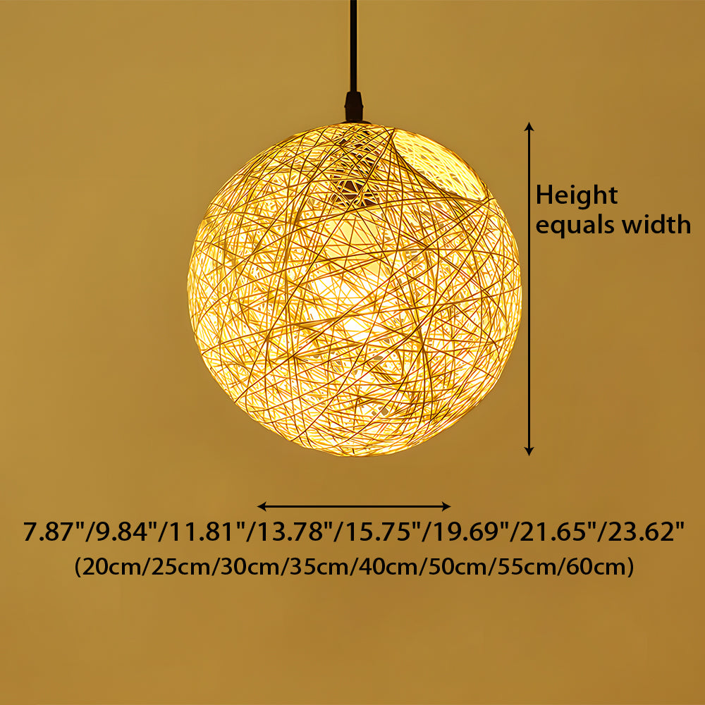 Minimalist Rustic Sphere Paper Rattan Pendant Light