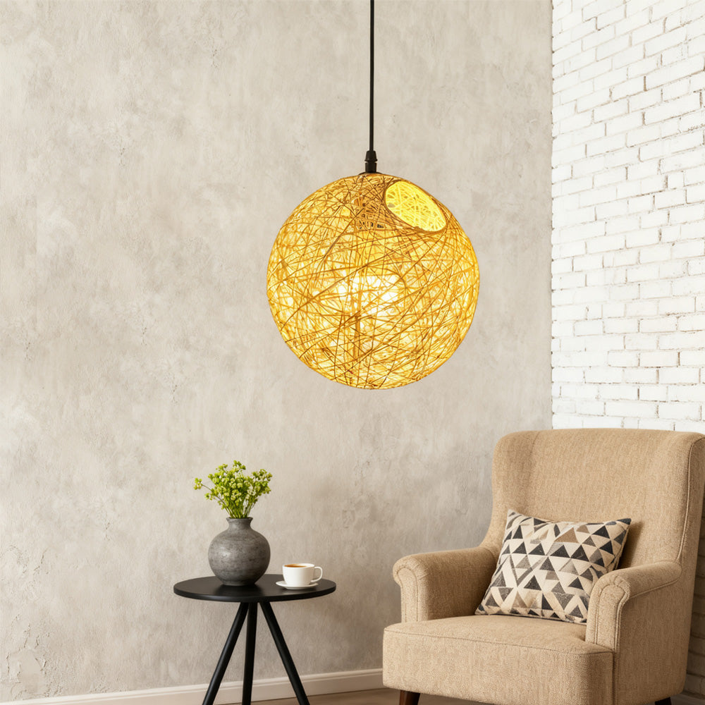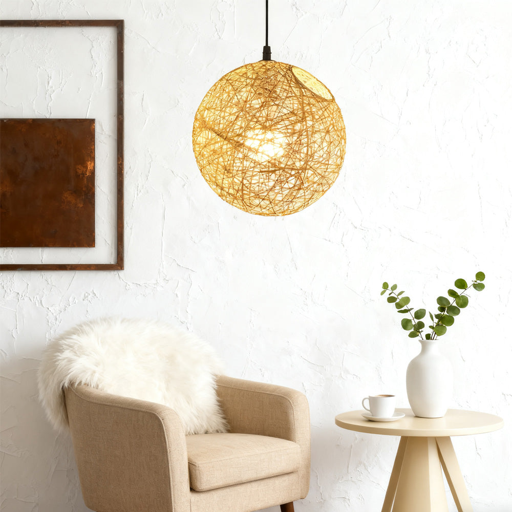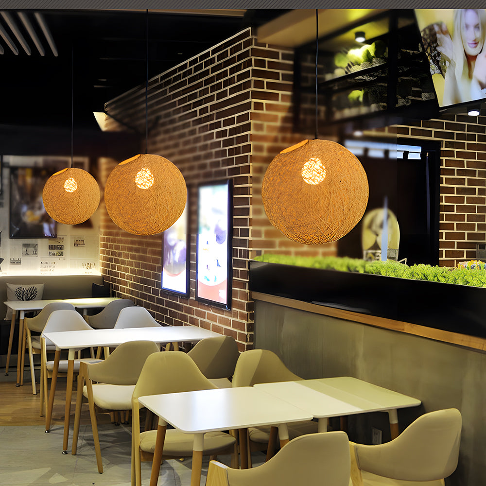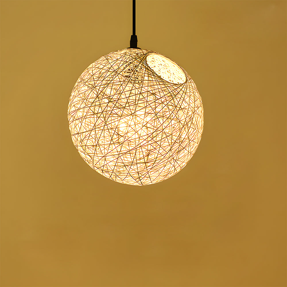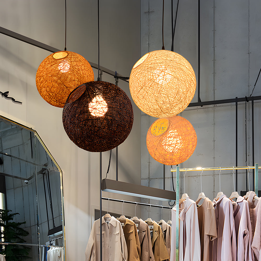 Minimalist Rustic Sphere Paper Rattan Pendant Light
