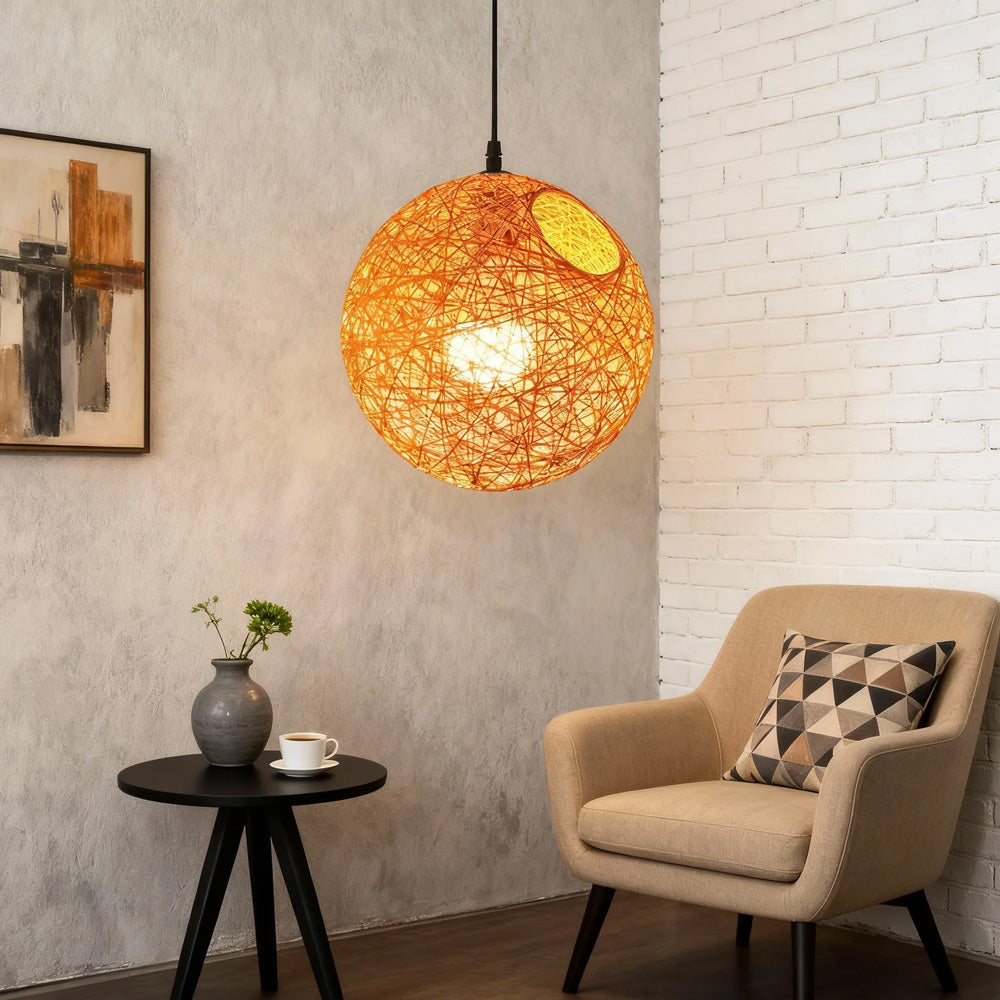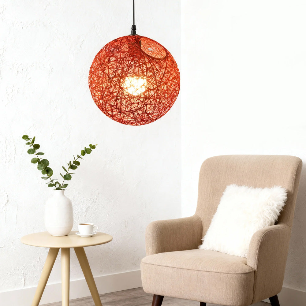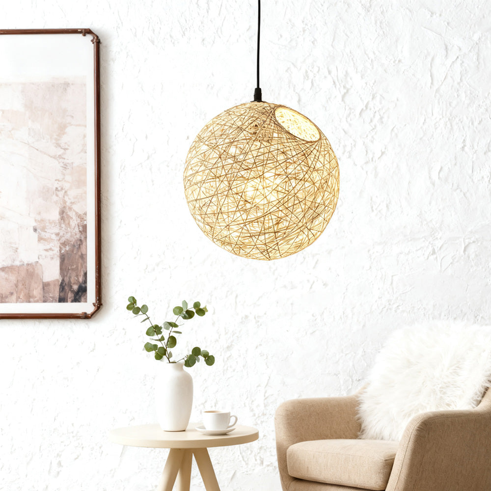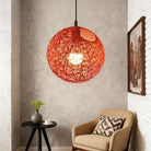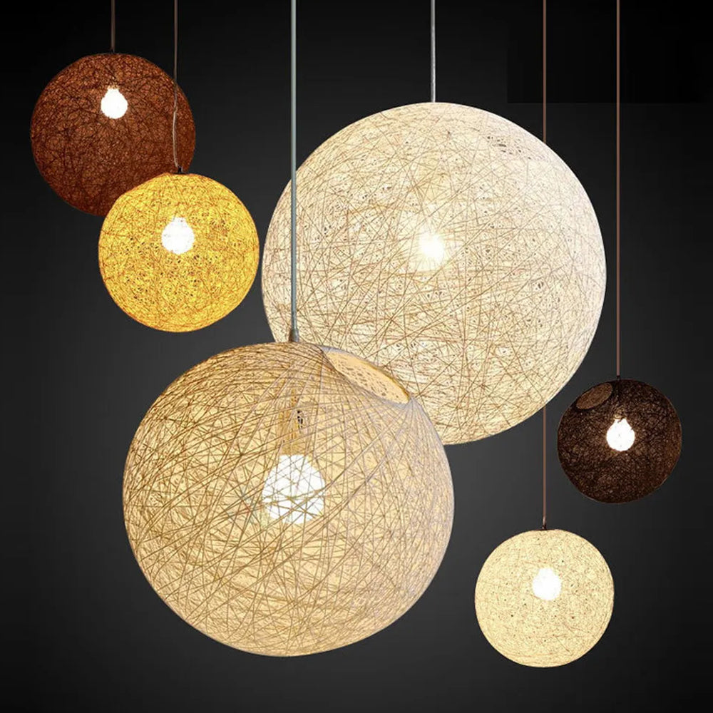 Minimalist Rustic Sphere Paper Rattan Pendant Light