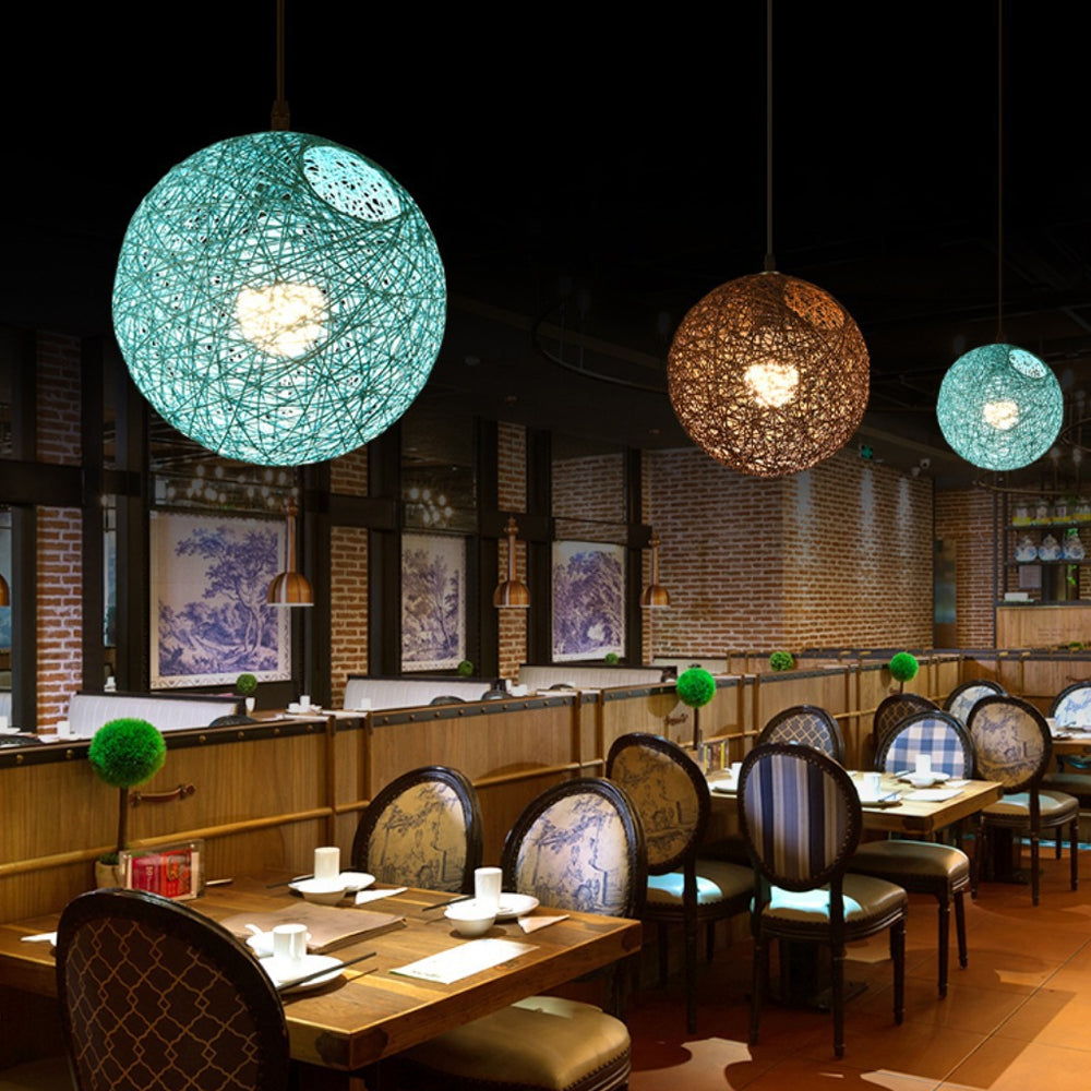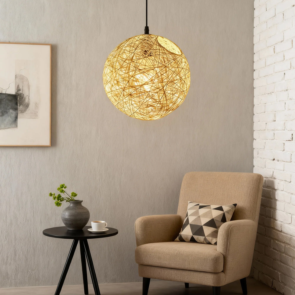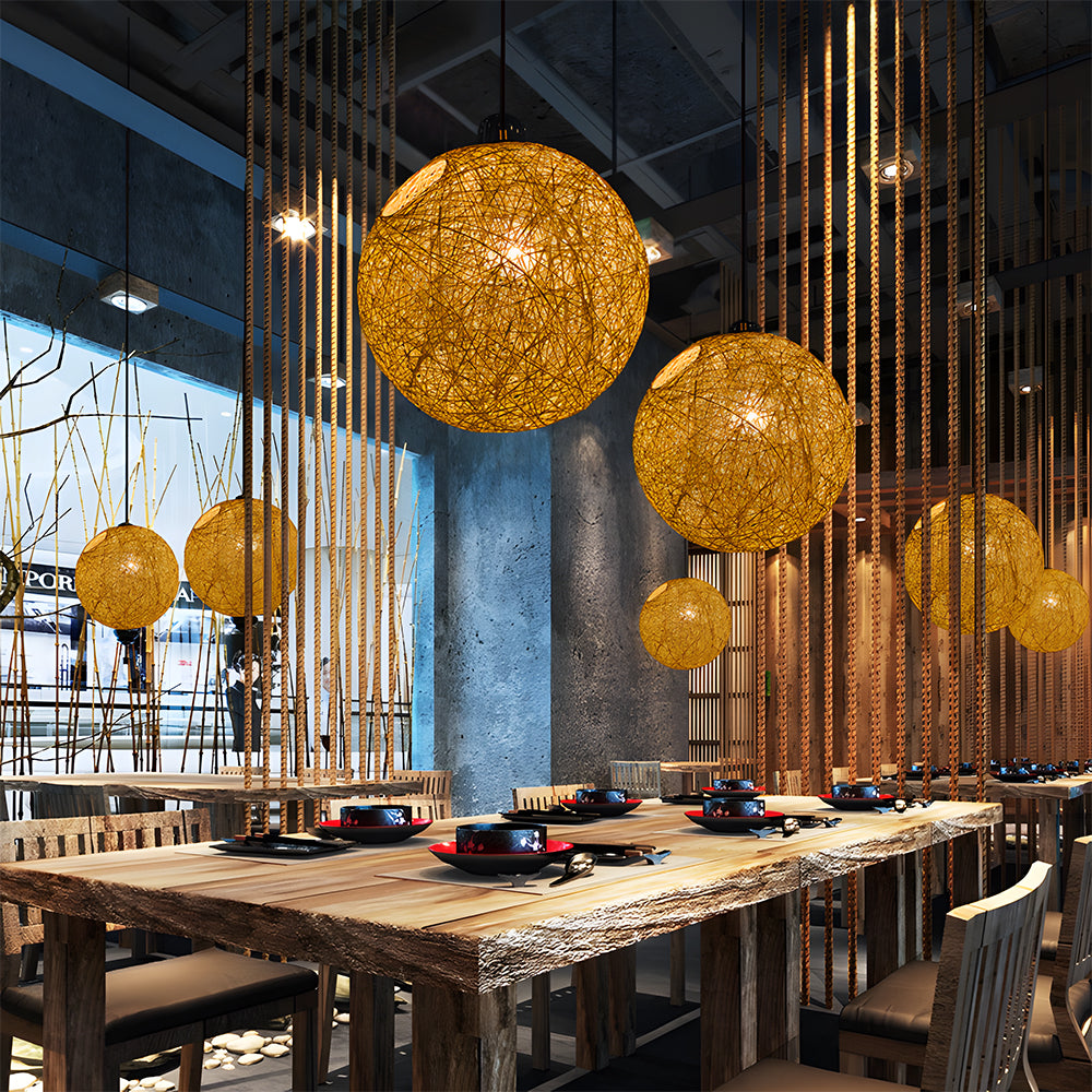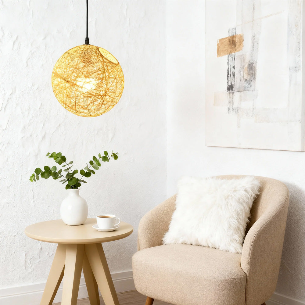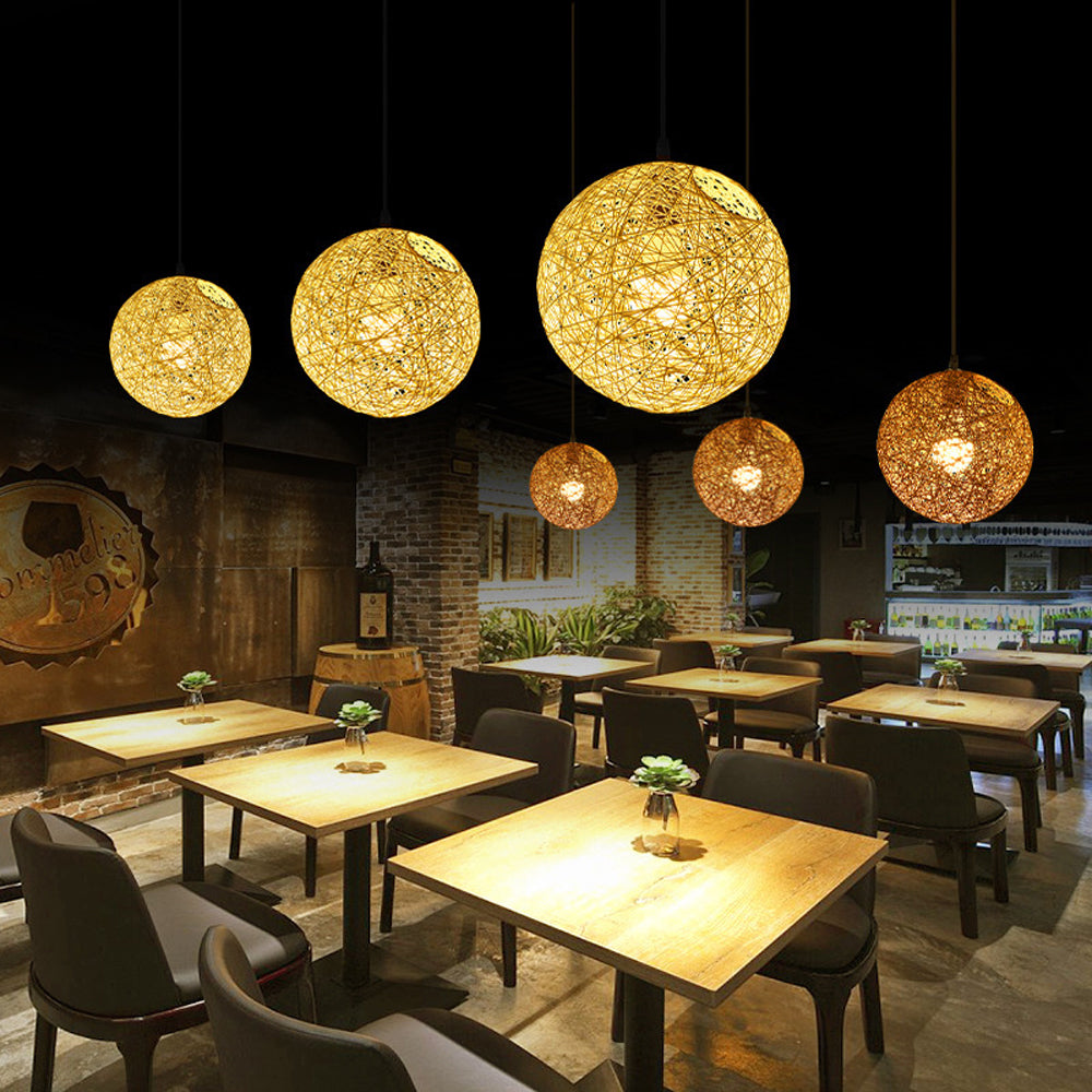 Minimalist Rustic Sphere Paper Rattan Pendant Light